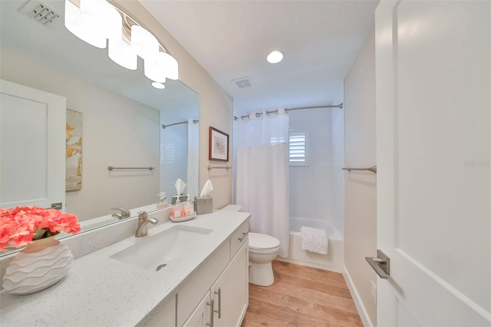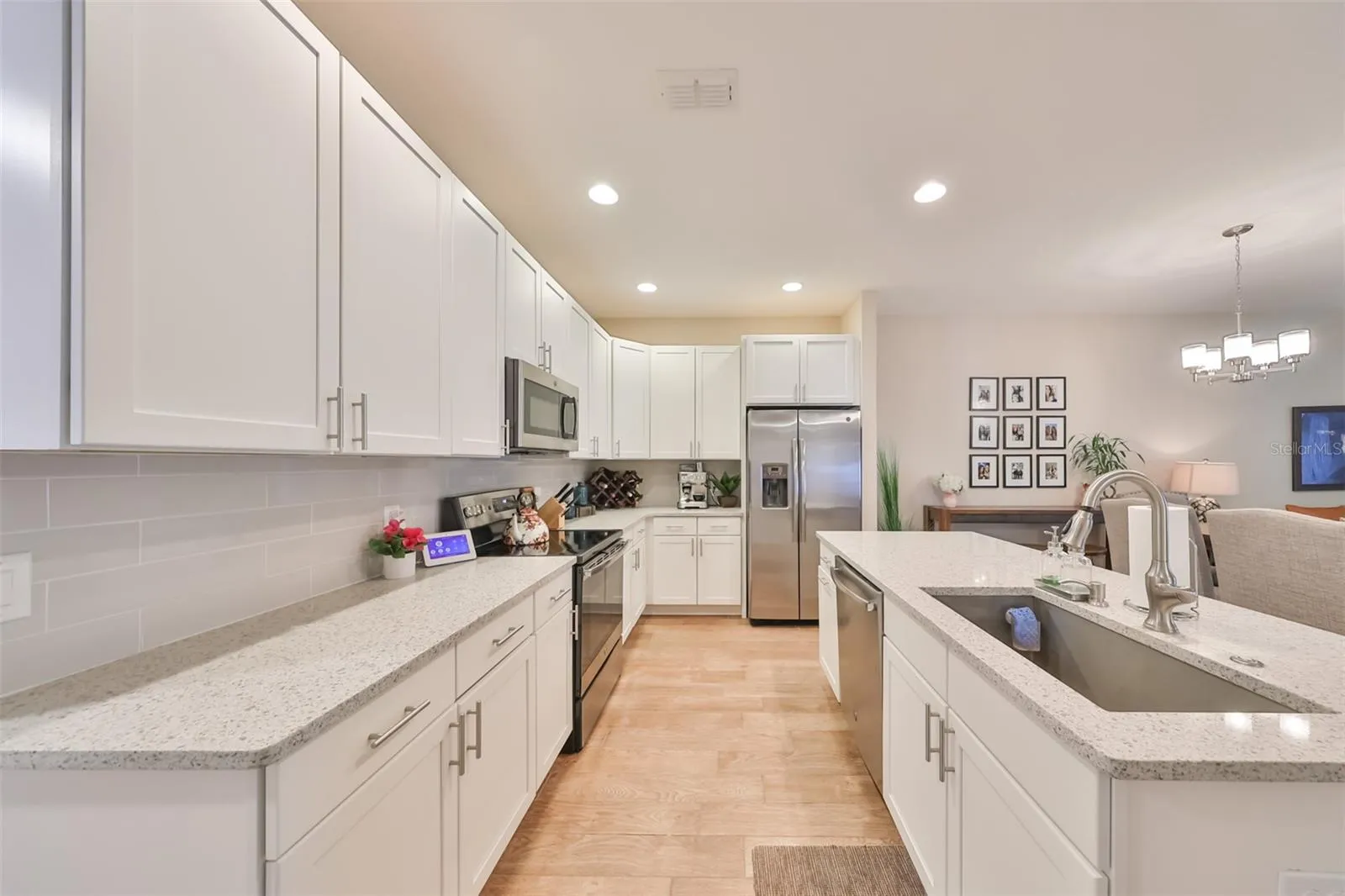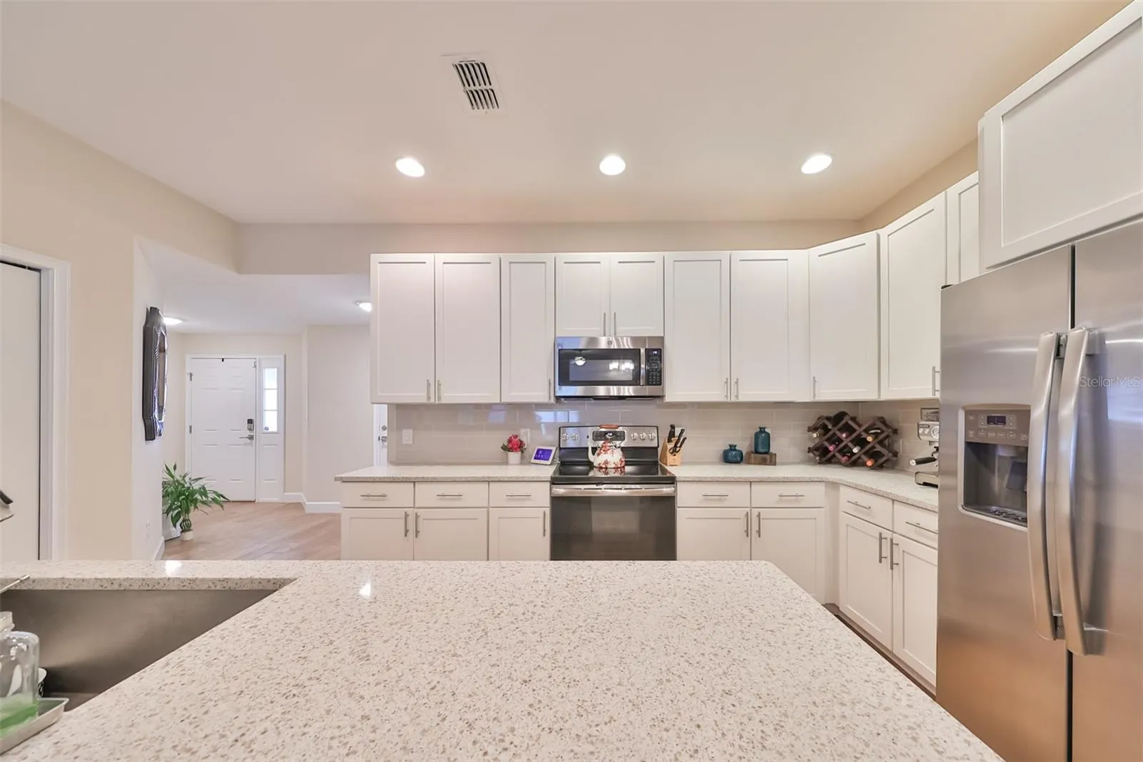 This exquisite Model Villa is situated in the charming Whitney Oaks Town Homes and Villas, nestled in a wooded area of Largo just off US 19. The one-story Villas floor plan is ideal for those seeking convenient living in a fantastic location. With an open layout, spacious rooms, and high ceilings, this Villa features a 2-car garage, a welcoming front covered porch, and a spacious 16′ x 9′ back porch. The Master Bedroom boasts 2 walk-in closets, and the large kitchen/dining area comes equipped with GE Appliances, a counter island, and ample space for a sizable dining table. The beautiful quartz countertops extend throughout the Villa, complementing the shaker-style cabinets and wood-look ceramic tile flooring. Additional features include a large pantry, a laundry room off the kitchen, and upgraded bathrooms with the latest in flooring and wall tile. Enhancements like a finished garage floor, screened back porch, plantation shutters, and vertical blinds on sliders add to the unit’s appeal. This well-designed home also includes a tile kitchen backsplash, washer/dryer, and is wired for a security system, ready for a RING Doorbell installation. The community, comprising only 23 Townhomes and Villas, offers a small, friendly atmosphere. Conveniently located near local airports, businesses, excellent shopping, and just a short drive to the beaches.
