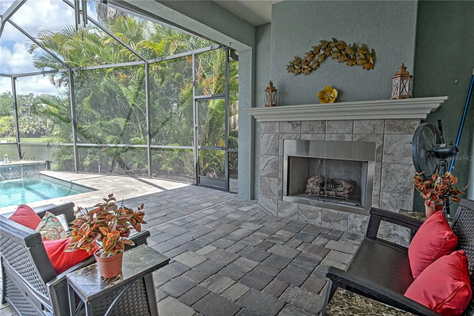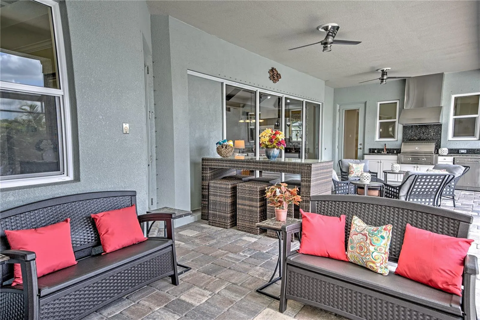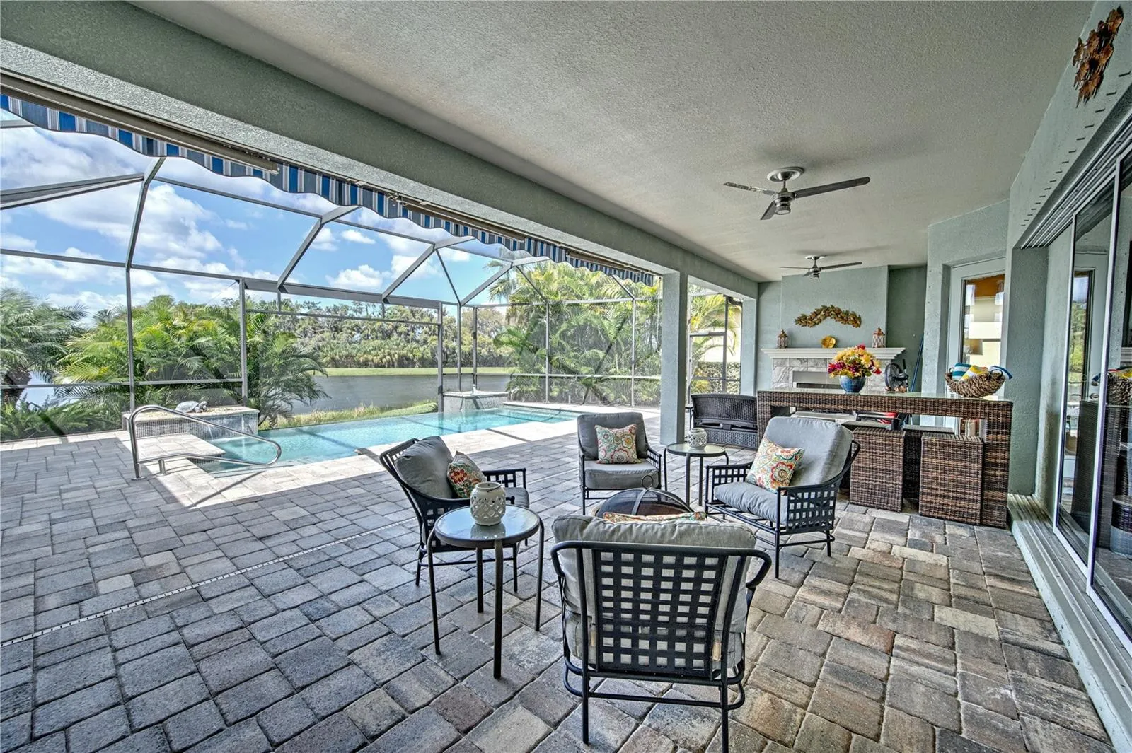 Revel in the spacious elegance of this 3300+ square foot under air, 4500+ under roof masterpiece. An entertainer’s dream, whether hosting lavish parties or intimate gatherings, the open floor plan seamlessly blends indoor elegance, with outdoor allure. The great room’s sliding glass doors pocket, opening the entire wall, leading to the (40’x13′) lanai complete with a summer kitchen and a gas fireplace. Also enclosed in the caged lanai is a stunning infinity edge pool that mirrors the endless Florida skies, complemented by waterfalls and serene lake views.(New Pump Motor 2023)