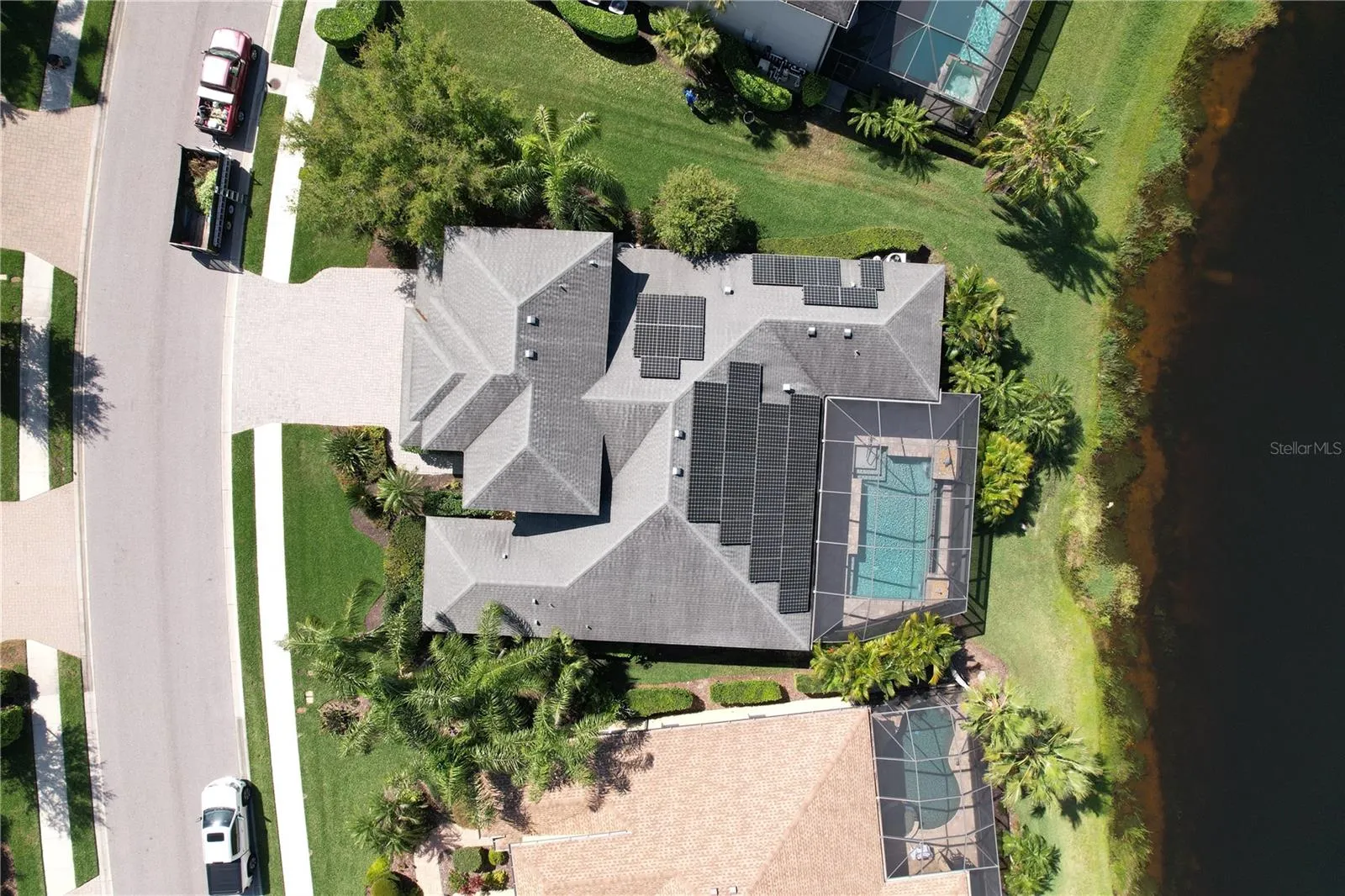 Embrace eco-luxury and sustainability without compromising on comfort! The existing (46 Photo-Coltaic Solar panels paid in full/2019) solar panels significantly reduce energy costs while championing green living, making this home as kind to the planet as it is to your wallet.This exquisite, luxurious, former Sam Rogers “Royal Palm” model home promises an unparalleled living experience with marvelous lake views and woods beyond the pool. Lifestyle is what it’s all about in the picturesque gated community of Greyhawk Landing in Bradenton, Florida. This elegant home has 4 generously sized bedrooms, 3 full & 1 half baths, and was crafted with attention to detail, an eye for luxury, with modern comforts, and eco-friendly enhancements.