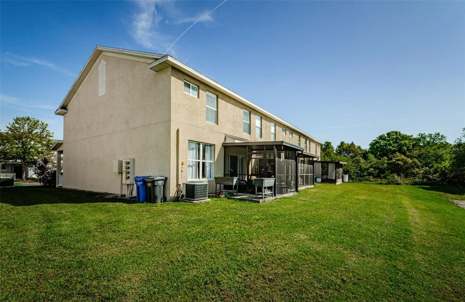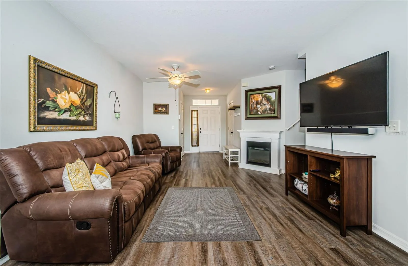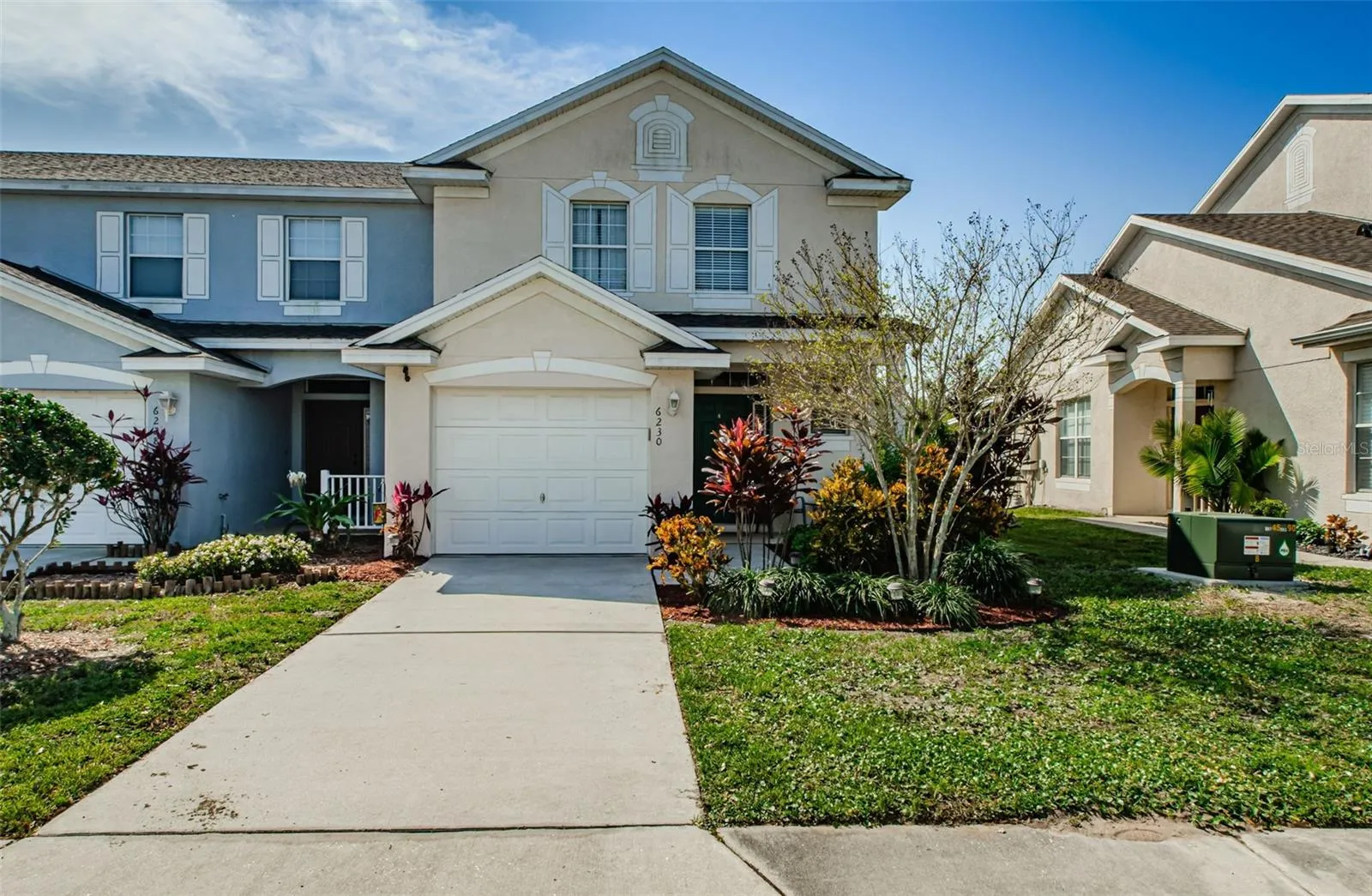SELLER IS OFFERING $5000 TOWARDS THE BUYERS CLOSING COSTS WITH AN ACCEPTABLE OFFER. This charming, recently updated corner unit overlooks a pond with conservation and has no rear neighbors. Boasting an inviting open layout, it radiates warmth and brightness. The expansive, modern kitchen flows into the dining and living area, featuring an inviting fireplace. The ground level showcases luxury vinyl plank flooring. All bedrooms are equipped with ceiling fans. Upstairs hosts two spacious secondary bedrooms that are bathed in natural light from abundant windows. Just down the hall there is a full bathroom and conveniently located laundry area. The primary suite is a retreat with a vast walk-in closet and an ensuite boasting a soaking tub/shower combo and dual sinks. You’ll enjoy evening sun sets or watching the wildlife from your back screened lanai. HOA covers exterior upkeep, complete lawn maintenance, water, trash, and sewage. Community amenities include a pool, clubhouse, and gym. Located amidst shopping and new eateries, this 3 bed 2 bath townhome is ideally situated. It’s within walking distance to Xscape Movie Theater and proximal to I4, I75, crosstown expressway—just 15 mins from downtown Tampa. Home furnishings are negotiable in the sale. Included are essential appliances: Washer, Dryer, Fridge, Dishwasher, Disposal, Stove, Microwave, plus an Alarm system with cameras and Water Filtration system