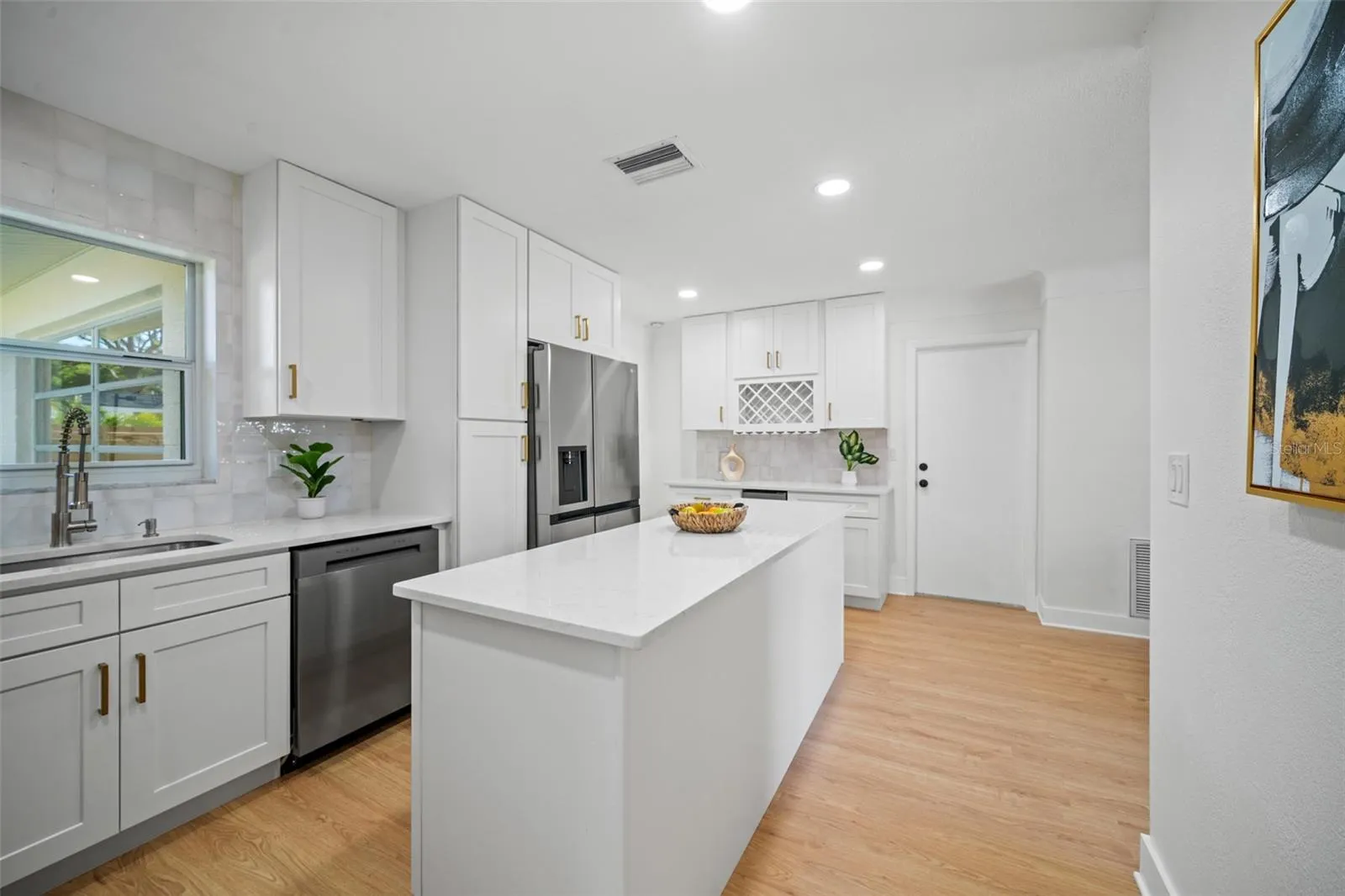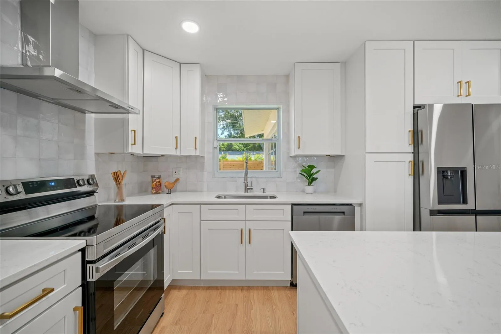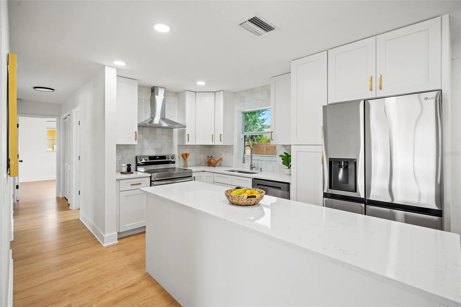 Home has already had an appraisal done, and valued above listing price! Welcome to this move in ready and impeccably renovated home located in the highly desirable area of Pinellas Point! This home boasts 3 bedrooms 2 bathrooms, bonus room, and a 2 car garage that has recently been epoxied. Step inside, and you will be welcomed into your spacious living room that is highlighted by a captivating custom accent wall, and where you will entertain family and friends for many years to come. Make your way into your luxurious kitchen that has been perfectly curated to meet all your needs. With stainless steel appliances, a large kitchen island, white shaker cabinets, quartz counter tops, custom back splash, and a dry bar, you are sure to enjoy the heart of the home. You will find newly installed light oak laminate flooring throughout, which along with so much natural light, serves to further enhance all features of the home. The master suite showcases an all new sleek freshly tiled ensuite bath with walk-in shower, and two closet spaces. Lastly, kick back and relax with your morning coffee from the privacy of your newly fenced and freshly sodded backyard. Additional upgrades include New roof December 2023, AC 2022, Water heater 2024, Interior and exterior paint. No HOA, and the home is situated in flood zone X for peace of mind. Non-flood zone! Discover the convenience of living in Pinellas Point with access to numerous bike trails, parks, public boat ramps, tennis courts, and the pink streets just a small distance away. Just a short drive to award winning gulf beaches, major highways, Ft. Desoto and the livelihood and excitement of downtown St Pete. Location, Location! Don’t miss out on your own little slice of paradise!