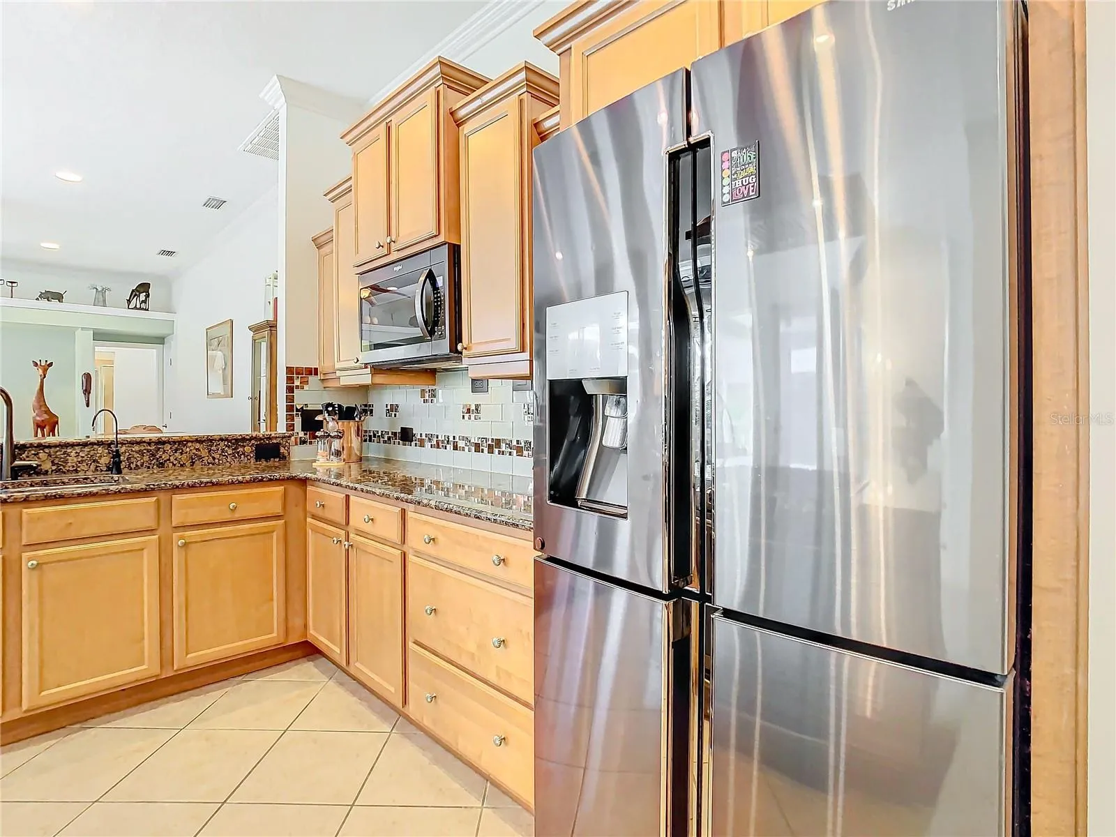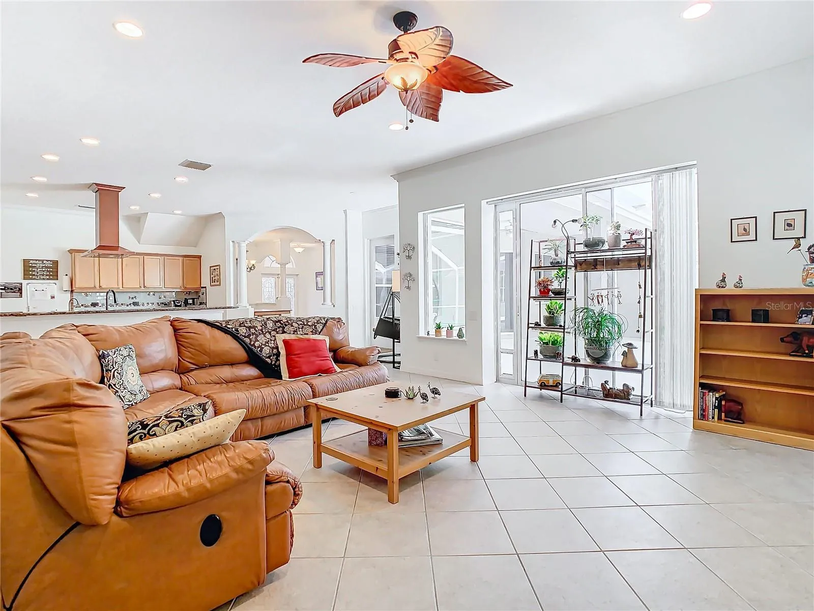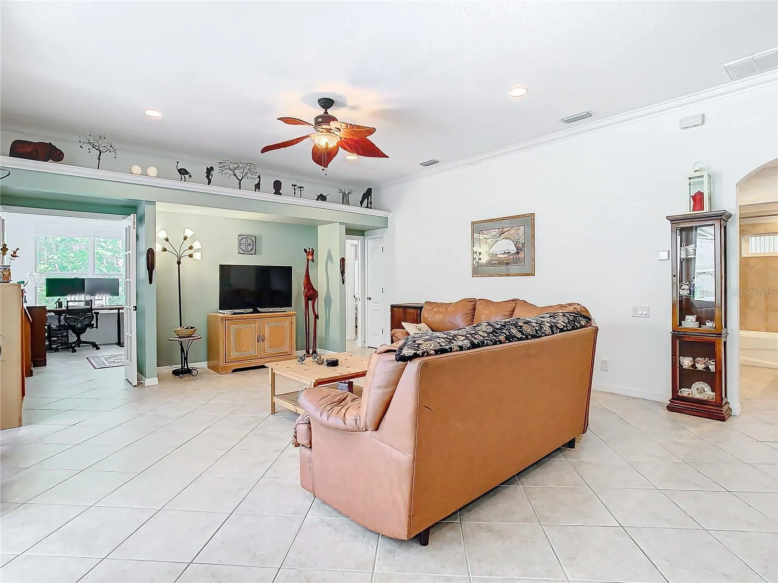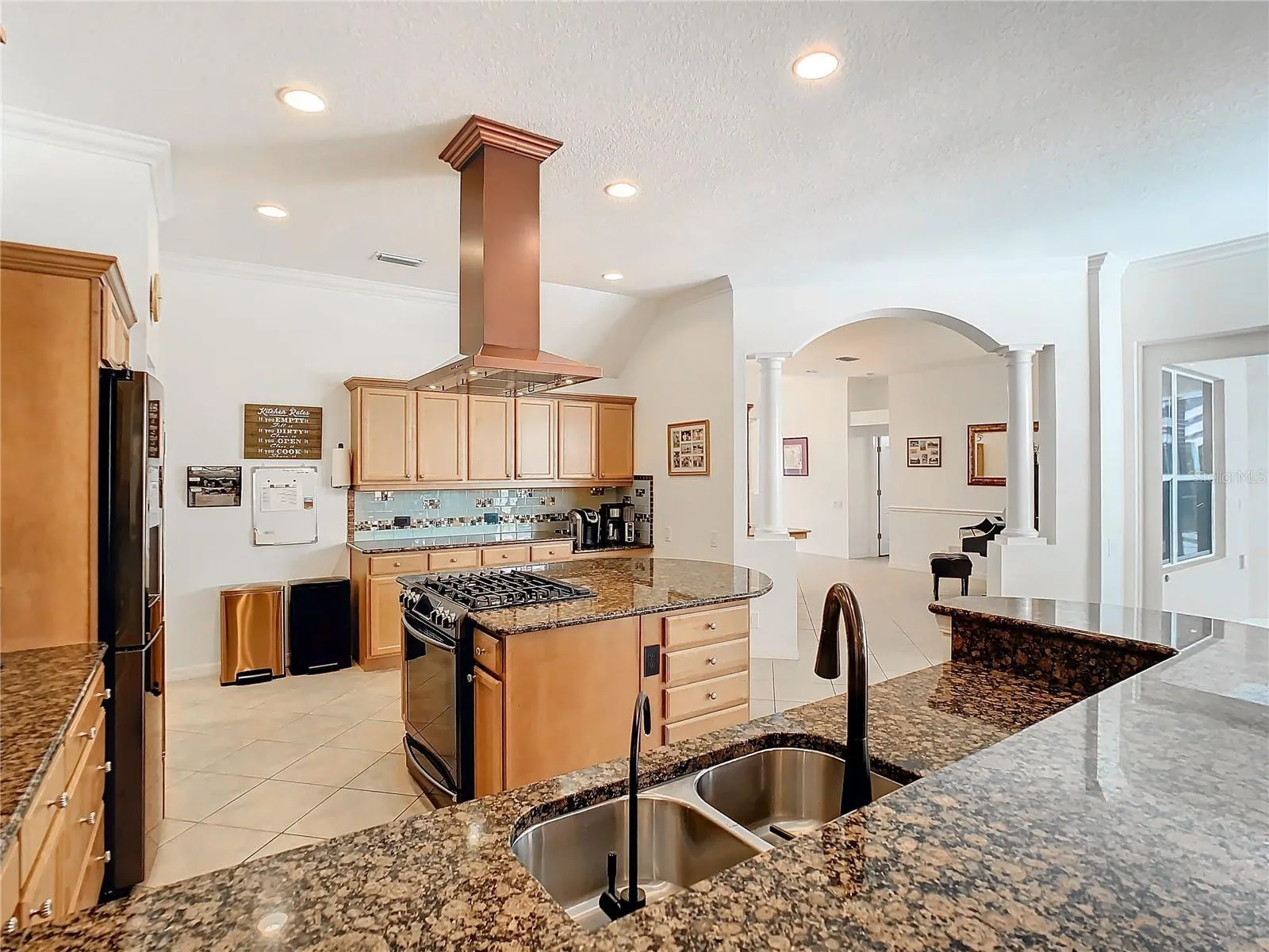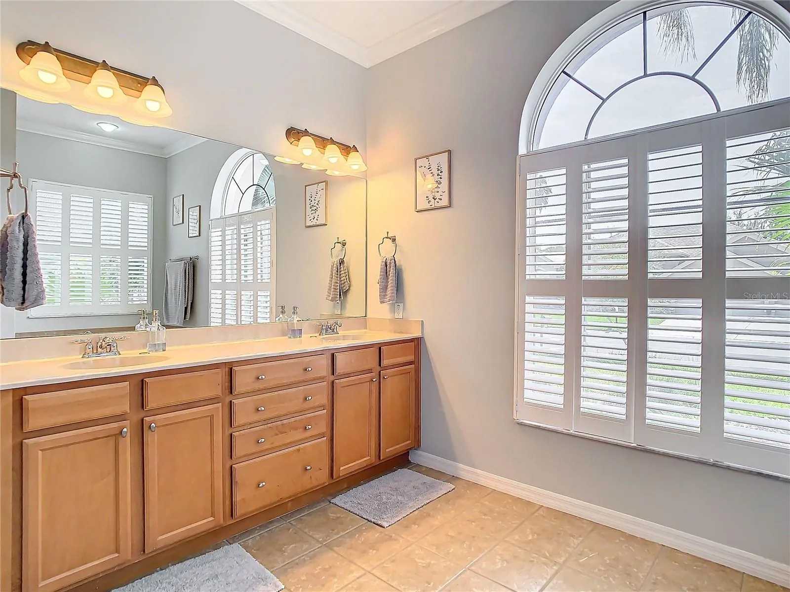 Seller Requests Back up offers. This lovely home starts from the front tropical paradise landscaped yard with a paved driveway that leads to the Front porch entrance with gorgeous etched glass double door. Formal dining and Living room, with crown molding and chair rail. Diagonal tile throughout the LR, DR, Gourmet kitchen, baths, office and Great Room. High volume ceilings everywhere. The home has four-five bedrooms and an office, which are downstairs one very large bedroom or entertainment room upstairs with huge walk-in closet and its own bathroom. Spacious Master suite is on the one side of the home away from the other bedrooms for complete privacy. Master has new flooring and two walk in closets, a gorgeous tray ceiling, crown molding. Double glass slider opens to lanai & pool/spa. The master bath has a separate shower and Garden jacuzzi tub, double sink vanity, lots of cabinetry and drawers Master bedroom overlooks the newly remodeled 2023 Pebble Tec pool and spa. There is a large, shaded patio area for relaxation, a grill area! The gourmet kitchen offers many top-of-the-line appliances, including a gas range in the center island, and seating area. Zeline Hood over your range. 42-inch-high cabinets with pull out shelving in bottom cabinets. Kitchen has a solid glass corner window overlooking the pool and patio and wooded area. Breakfast nook. Recessed lighting in Kitchen and great room. Lighting under kitchen cabinets, kit comes equipped with newer dark stainless-steel appliances, Counter tops are granite and handpicked special designed back splash tiles throughout the kitchen. This home is great for entertaining, Glass sliders open to screen enclosed Brand Newly remodeled sparkling pool/spa area, new tiles and diamond bright texture and patio decking. There is a spacious office downstairs with French door entry this overlooks the conservation fenced in back yard and beautiful pool with overspill waterfall spa. Downstairs there are 4 bedrooms and 3 baths, an office. The bedrooms are split floorplan. Great laundry room with cabinets, utility sink and folding table. New Plush Stain master carpeting 2023 as you go upstairs to theater room. with a huge walk-in closet and a granite countertop bar. Mini Fridge included. A few upgrades are a reverse osmosis water purifier installed 2017, 50-gallon gas water heater, as well as a Water softener in 2017. Owners replaced the dishwasher 2021, microwave 2022, gas hot water heater in 2020, washer and dryer in 2017. The ROOF is BRAND NEW March 2024! with a transferrable warranty. Wind Mitigation 2 A.C units one is a 2019 and a 2017 with gas heat thermostat 4 both! One for upstairs. The swimming pool and spa had been retexturized with beautiful pebble Tec in 2023 with new tiles, pool decking has been recoated 2024. Location is ideal literally a ten-minute walk to the clubhouse. There is a state-of-the-art fitness center, clubhouse can be leased for private events, three pools, one is a lap pool with a fun slide, family heated pool in center and a kiddie play water park. Soccer field, basketball court, playground, tennis court, a cafe. Volleyball Court. Minutes away from shopping malls, grocery stores, State of the Art Ice Hockey Ring, Outlet malls and interstate. Wiregrass Mall and Tampa Premier outlet mall about 2 miles. Bay care hospital and Advent 2 miles. convenient to Tampa, Lutz, Orlando. Golf courses. Walking Trails all within Seven Oaks Gated Community