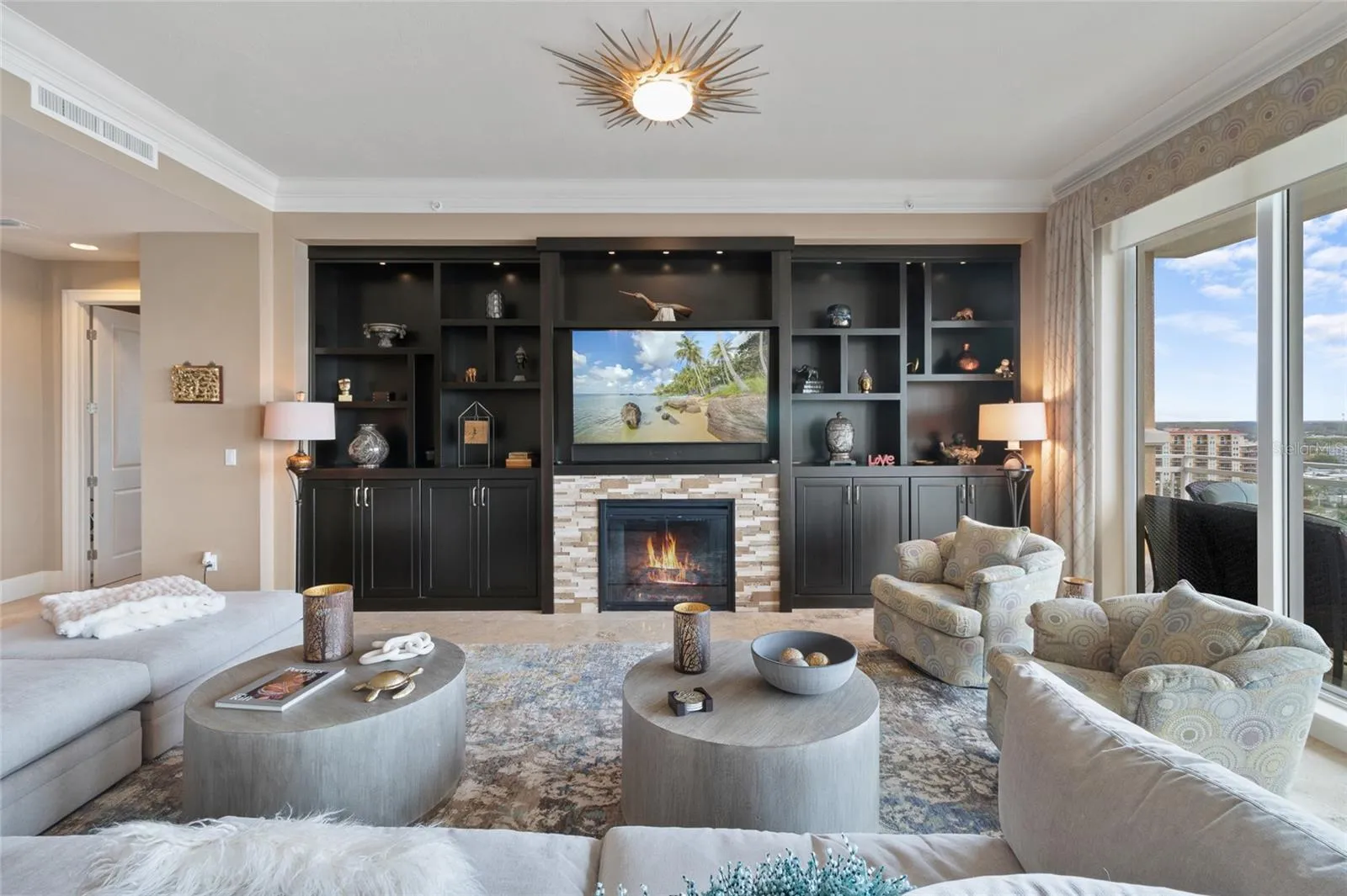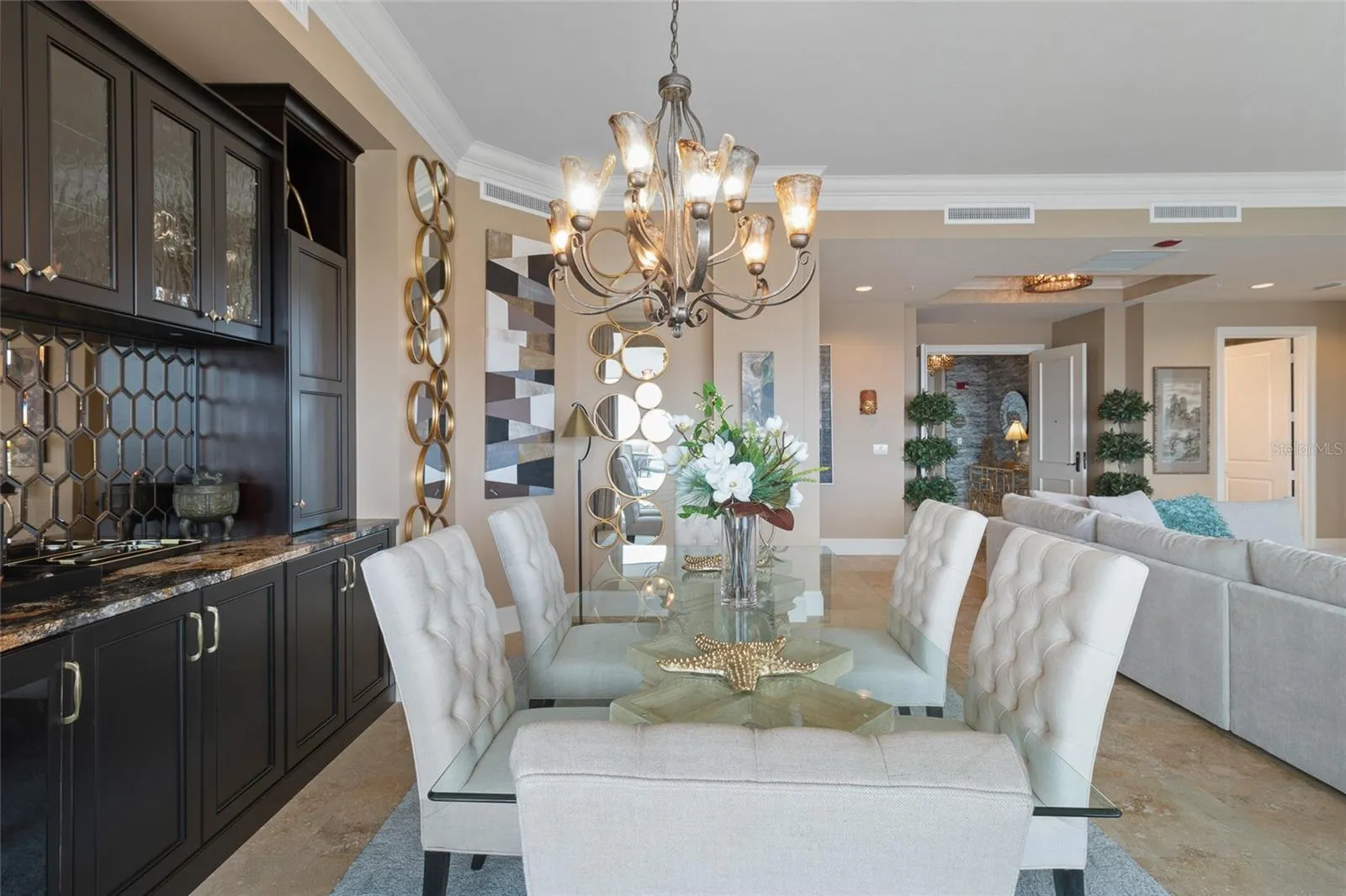 - Open Floorplan, Walk-In Closet(s), Window Treatments, Solid Wood Cabinets, Solid Surface Counters, Wet Bar, Built-in Features, Dry Bar