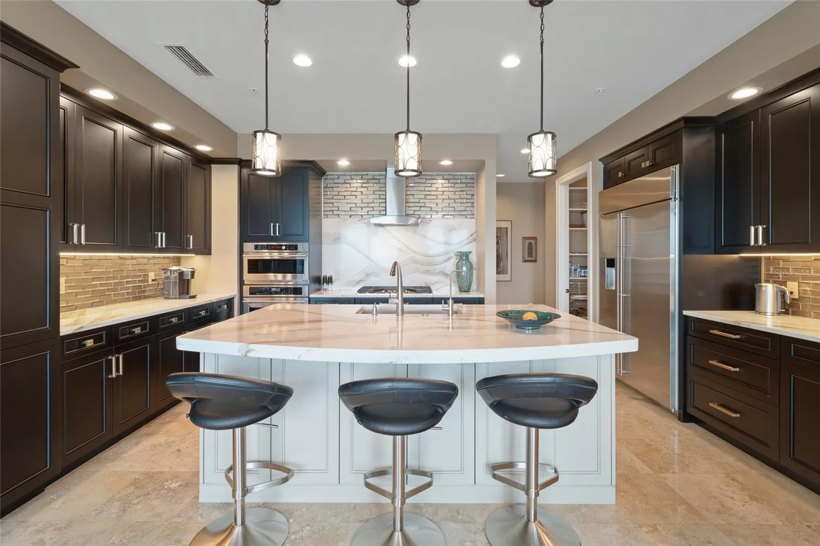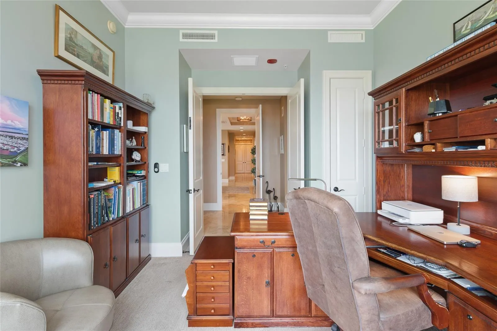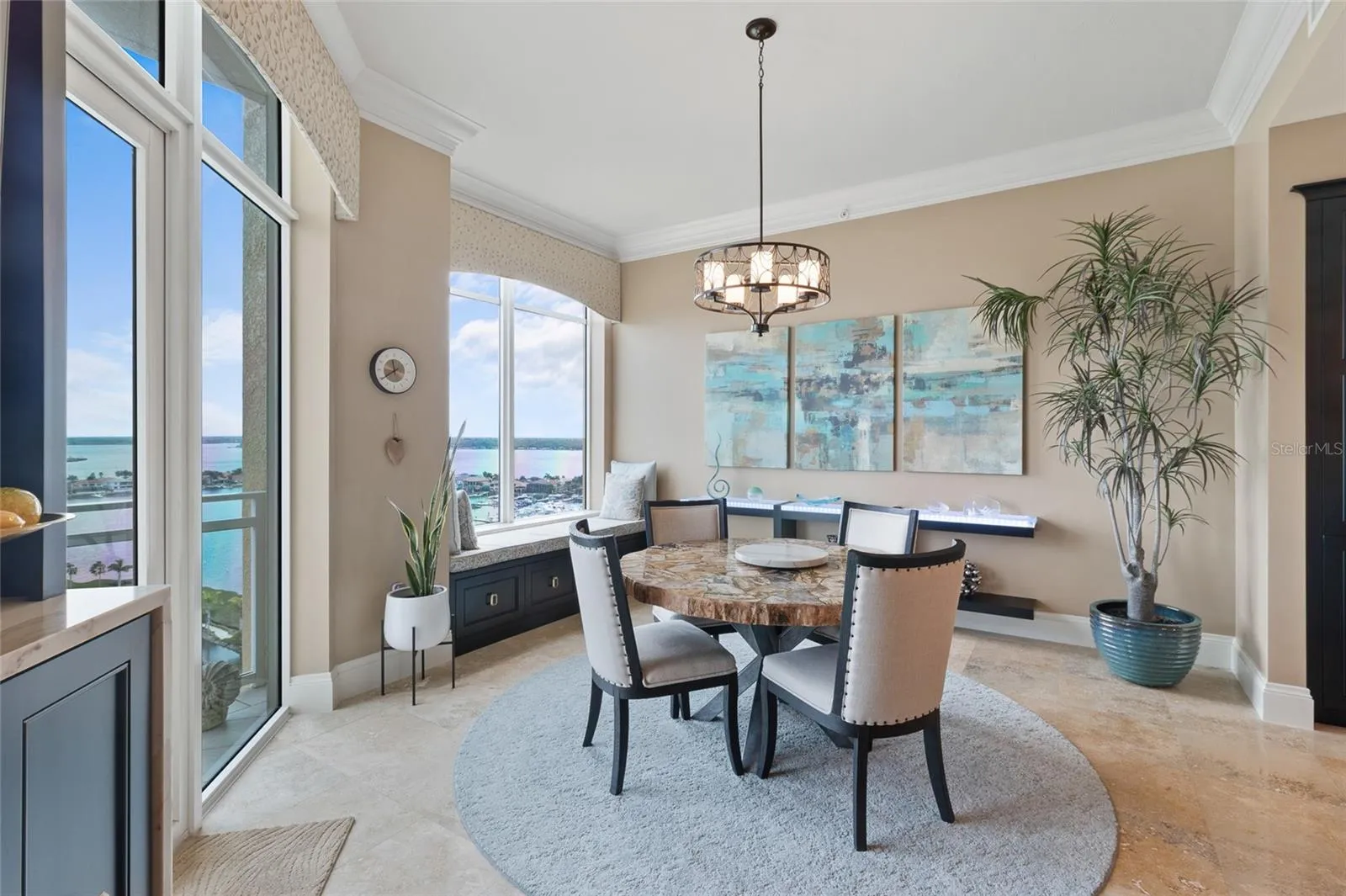 One of a kind, completely remodeled Penthouse with unparalleled views from nearly every room. Possibility exists for a turn key purchase as well as a 35’ Boat Slip (2021 – 10,000lb lift! This just under 4,000 sq ft home has three separate balconies that provide panoramic views that are simply incredible! The main rooms face the most desirable east and south to afford you magical sunrise views, plus views that allow you to see the Manatee River, the Riviera Dunes Marina and harbor as well as distant views of the Skyway Bridge, Tropicana Dome, St Petersburg and the view of downtown Sarasota! This penthouse was completely remodeled in 2018/2019 including a Chefs dream kitchen, all new appliances, and built in custom cabinetry throughout with much attention to every detail. The living room was completely updated as well featuring a wall to wall custom entertainment center, a separate built in bar/refreshment area with plenty of room to display your favorite treasures. The master suite includes a private balcony, a sitting area, as well as a separate area that includes a second private office and/or exercise area. This bedroom features custom “black out” motorized shades and views that will amaze you as you look out at all the boats coming and going on the beautiful Manatee River. The main guest bedroom with king size bed features its own private entrance to the huge balcony where your guests can step out and enjoy their morning coffee while they watch the beautiful Florida sunrises appear each morning. The third bedroom has been redesigned with a custom wall to wall built in unit that includes TWO separate hidden twin beds that pull down and when not in use becomes additional room to use as you wish for your favorite hobbies or perhaps an exercise room. All of the bedrooms have their own private bathrooms as well as walk in closets with incredible storage in every room. This home has been set up so that with a touch of a button you can raise or lower all of the shades throughout the living room, dining room, kitchen, master bedroom and adjacent office. The office features its own private balcony where you can literally see for miles and miles! Watch the cruise ships off in the distance as they navigate under the Skyway Bridge or view St. Petersburg & Tampa Bay to enjoy their skylines. This Penthouse also includes an oversized private two car garage with workshop, 17 foot ceilings and built in storage everywhere! In addition this unit comes with a third parking space under the building garage for you or your guests to keep that 3rd car completely protected from the elements. Unmatched in rich amenities, Riviera Dunes offers a nine-seat theatre, social room with kitchenette, and reasonably priced guest apartments in each tower, three pools, spas, outdoor grills and kitchens, lake, fitness center, and tennis courts in connection to the optional marina membership that features 35′ to 110′ wet slips to house your boat on 18′ deep water frontage, and Dockside restaurant – all within a half-hour drive to Tampa, St. Petersburg, and Sarasota. This extraordinary opportunity is an incredible value with views that cannot be matched. Words cannot properly represent this unique opportunity to own this one of a kind luxury penthouse. An exceptional value, exceptional condition … come take a look!
