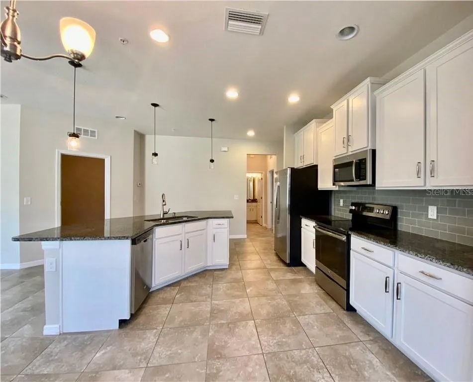- Open Floorplan, Thermostat, Walk-In Closet(s), Living Room/Dining Room Combo, Eat-in Kitchen, Kitchen/Family Room Combo, Window Treatments, High Ceilings, Stone Counters, Solid Wood Cabinets, PrimaryBedroom Upstairs