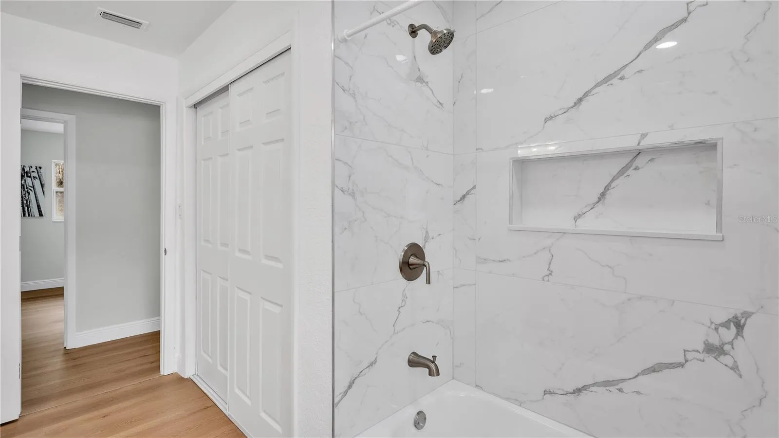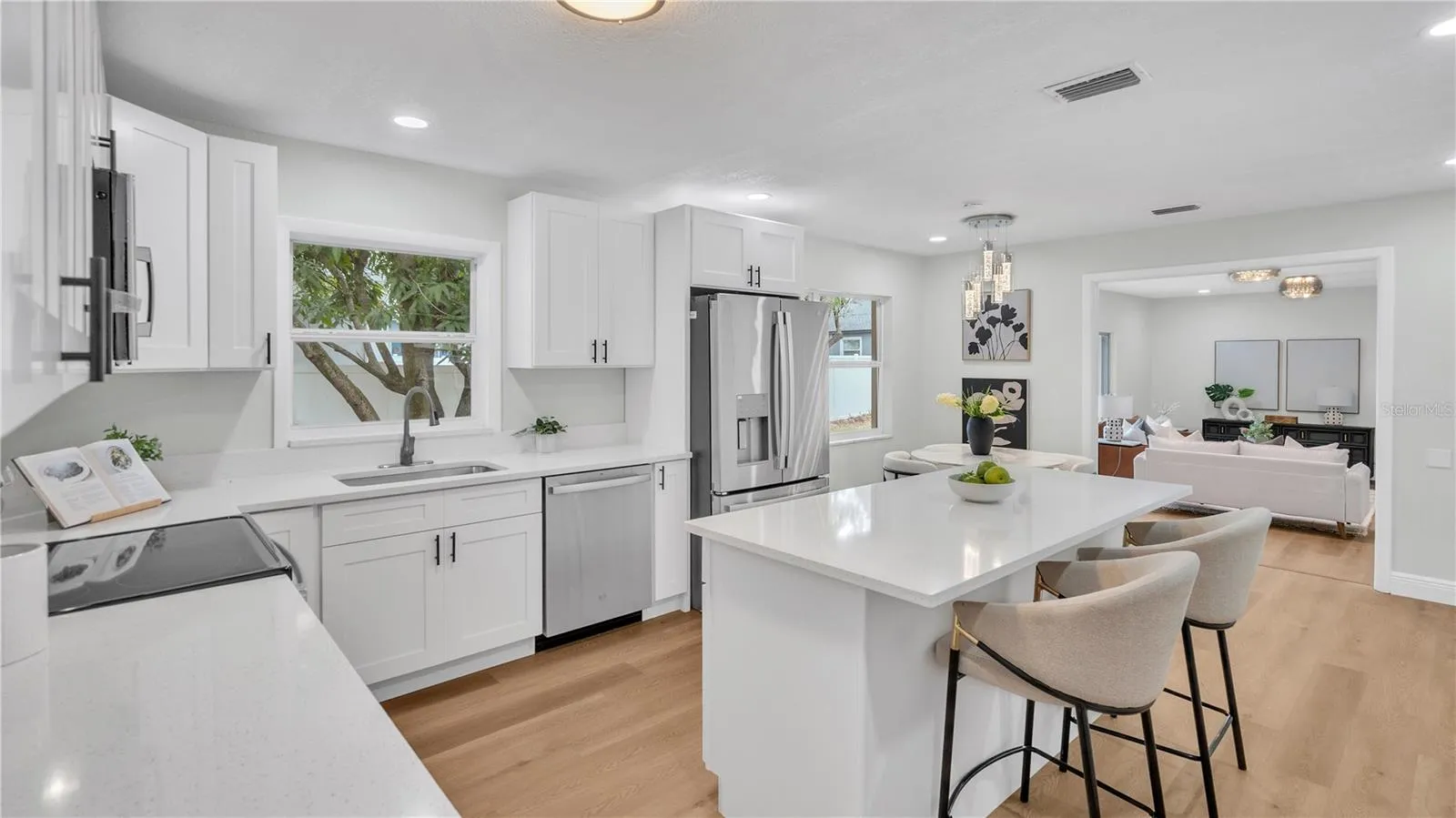 This brand new kitchen has all-new stainless steel appliances with great finishes, large kitchen island and plenty of cabinet space. Newly updated bathrooms feature new modern vanities and shower fixtures. The living area features expansive glass sliding doors that bring in plenty of natural light, giving a warm and cozy feel. Additionally, newly installed vinyl wood flooring adds to the modern aesthetic of the home. Located close to highways I-75 and I-4, residents enjoy easy access to Downtown Tampa, shopping centers, fine dining, and more!