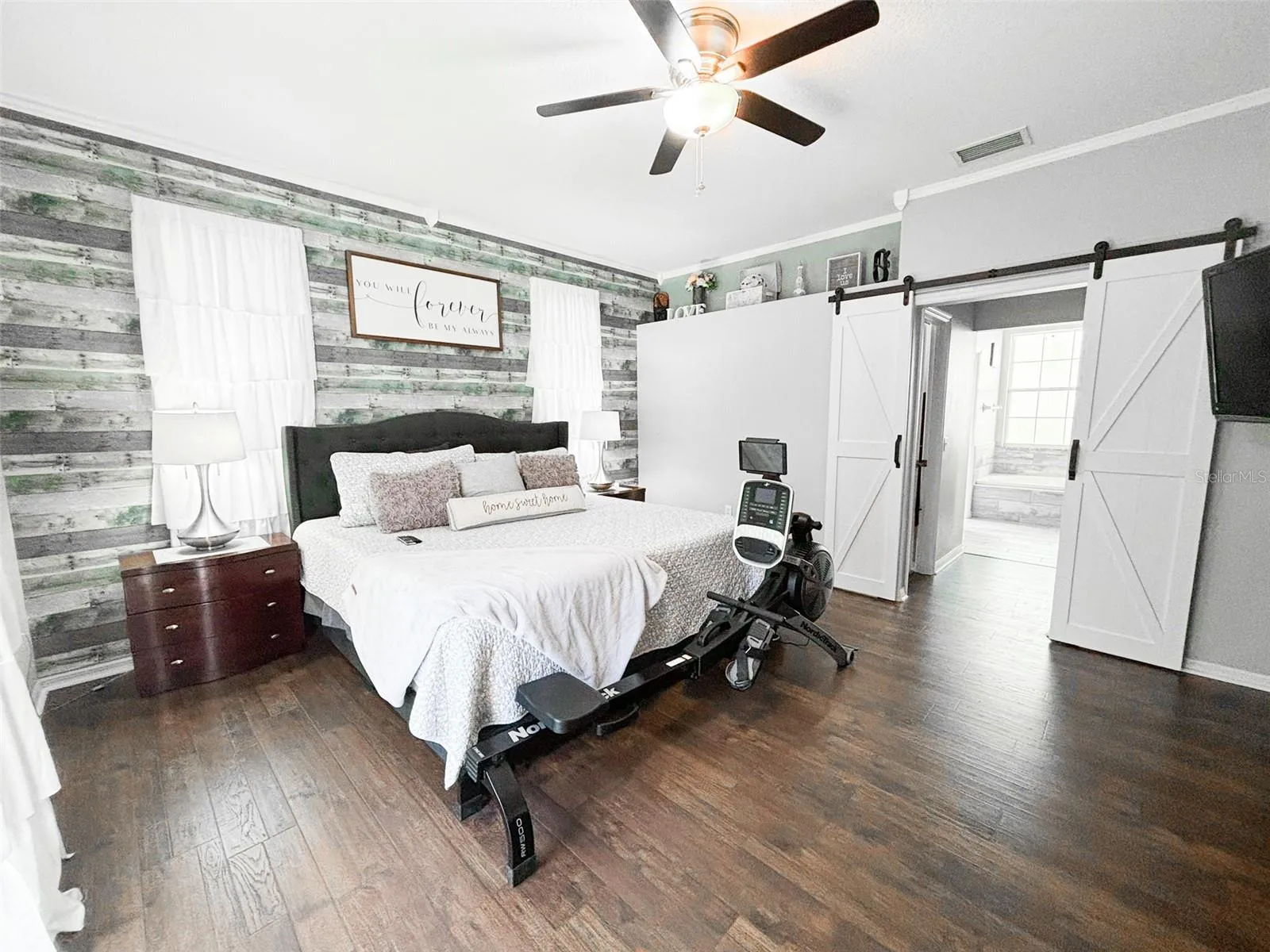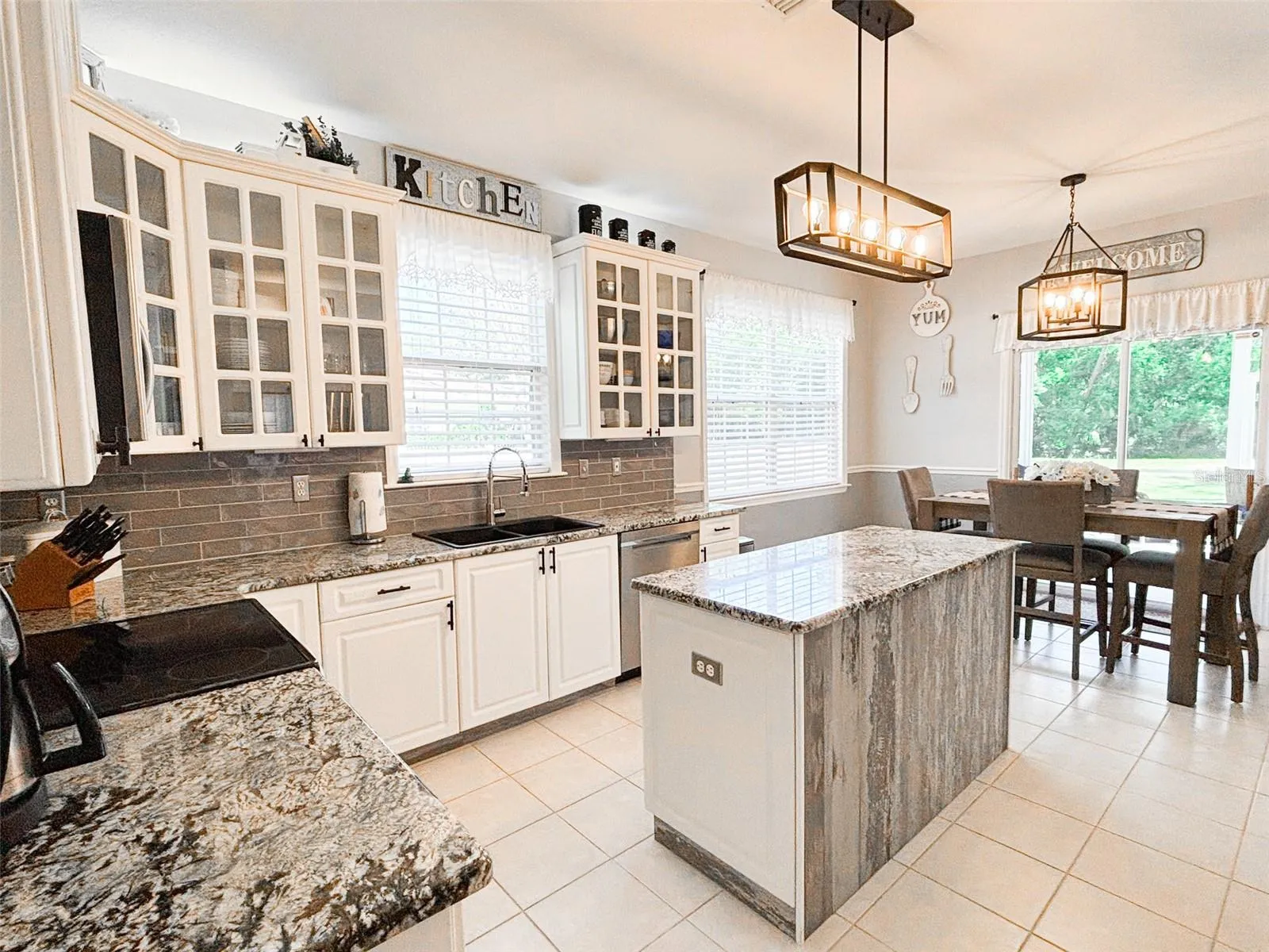 Welcome home to this beautifully updated Country Creek residence! Step into a world of rustic elegance and timeless charm as you enter the spacious, light-filled Great room, adorned with soaring ceilings and New Luxury Waterproof Laminate flooring in this impeccable retreat.The heart of this home is the oversized and beautifully updated kitchen, with its farmhouse-inspired design and functionality. Complete with newer appliances (2017) a large eat-in area, an ample island, and a quaint desk/workstation. This kitchen with a small pantry is a culinary enthusiast’s dream. Delight in the allure of gorgeous granite countertops, new granite sink and backsplash, and solid wood cabinetry is accented by charming glass front uppers, creating a warm and inviting space for family and friends. The downstairs Master Bedroom, where chic meets comfort and luxury, boasts custom sliding barn doors leading to an en suite bath with an oversized granite top vanity and garden tub. Upstairs, you will find the secondary bedrooms with new carpet and two very large storage closets, alongside a versatile loft area perfect for a den or office.Step outside to experience the peaceful tranquility of your 1/2+ acre fenced lot with no rear neighbors to interrupt your views. Relax on the oversized covered lanai, featuring a stunning cedar plank ceiling that adds a touch of rustic charm to outdoor living. Entertain guests in your large resurfaced (2017) heated pool with a newer heat pump (2018) and pool pump (2021) with child safety barrier providing the perfect backdrop for leisurely afternoons spent soaking in the sunshine. Freshly painted, a newer roof (2014), A/C’s (2014-2017), tongue and groove ceiling on the front porch. NO CDD fees and a LOW HOA of just $370 annually, while relishing in the convenience of access to A-rated schools and proximity to all amenities. Don’t miss the opportunity to make this enchanting farmhouse retreat yours today!