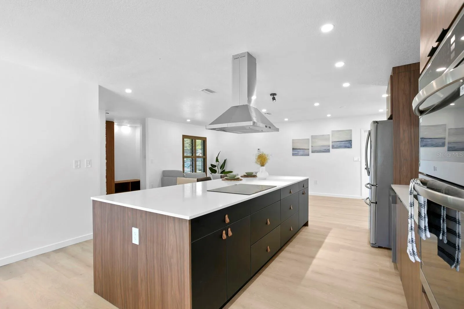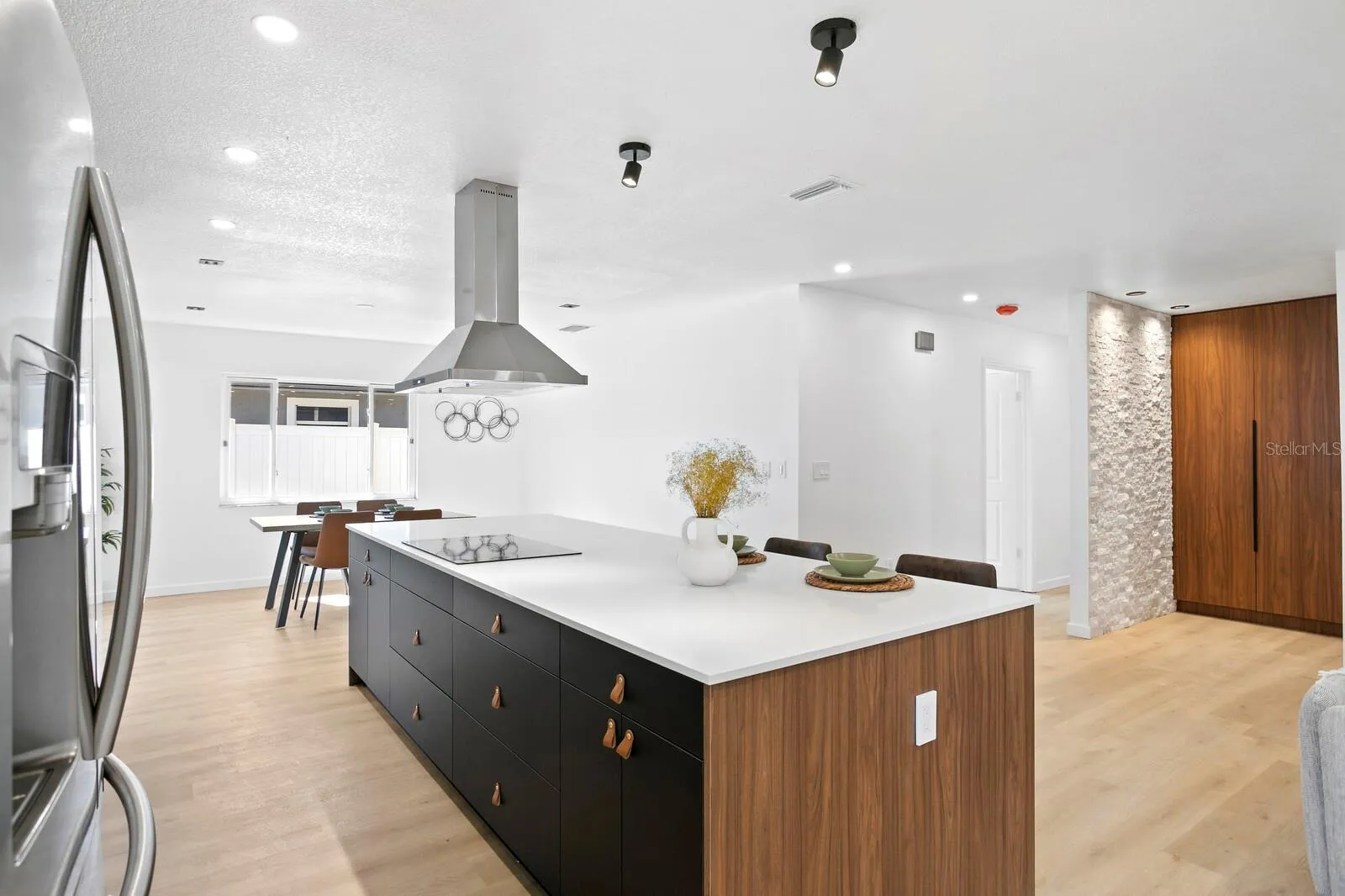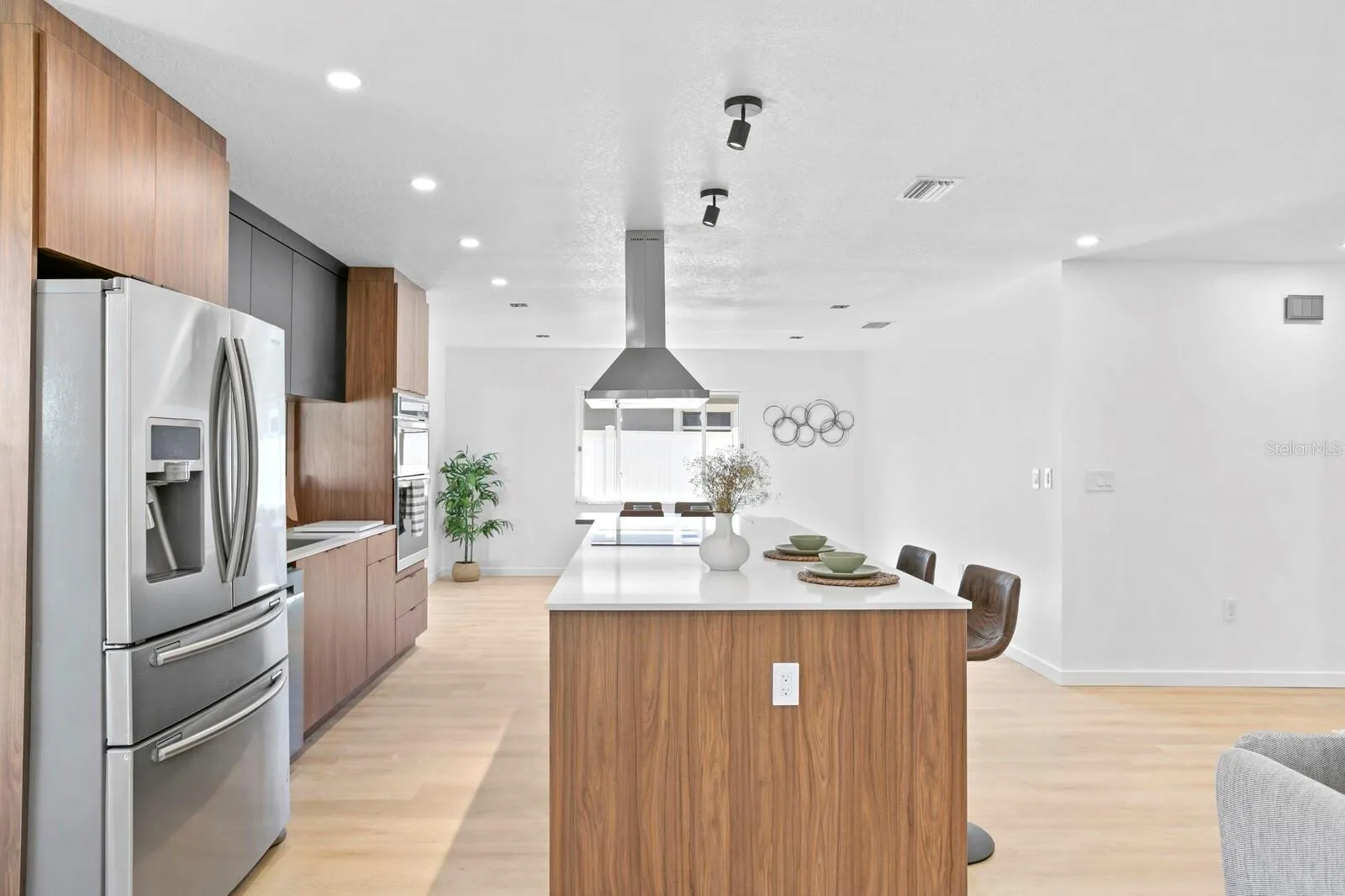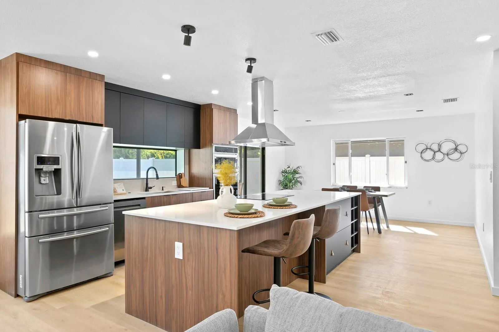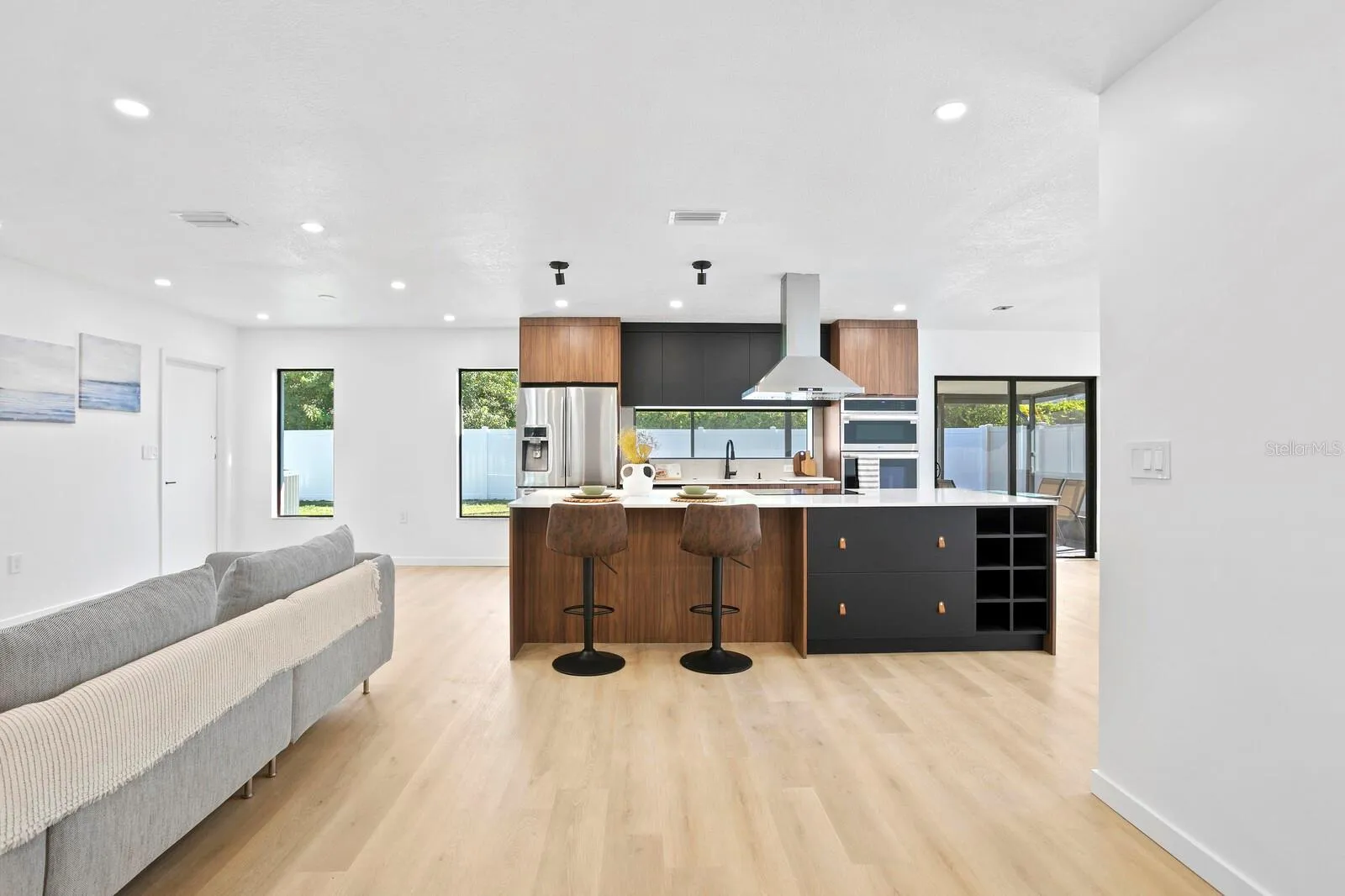MODERN PERFECTION in UNINCORPORATED DUNEDIN — Step inside through the modern entryway noting the beautiful stone accent wall in the foyer and the built-in cabinetry — to the wide open living space that offers a number of configuration options around the stunning contemporary kitchen. Then take a deep breath and appreciate the innovative design of the kitchen featuring a beautiful island focal point, exquisite European style frameless cabinetry in two complementary tones, stainless steel appliances and the minimal maintenance quartz counters and breakfast bar. The master suite features built in cabinetry and a fabulous modern bathroom featuring a shower enclosure, double sink vanity and a freestanding soaker tub. The other two ample bedrooms are completely refinished too. The home features abundant contemporary lighting which is both aesthetic and functional. With superior standards of design and workmanship this home offers the perfect place for contemporary living in one of the most popular locations on Florida’s gulf coast. Improvements include a BRAND NEW ROOF, NEW WINDOWS AND SLIDERS, A 2019 AC SYSTEM, NEW ELECTRIC PANEL, ALL NEW FLOORING, REMODELED BATHROOMS AND A STUNNING MODERN KITCHEN. From the home, which is high and dry you are just 7 MINUTES TO everything DOWNTOWN DUNEDIN has to offer. A short drive will take you to the world-famous beach at Honeymoon Island State Park or Clearwater beach. Schedule your showing today or someone else may fall in love before you!