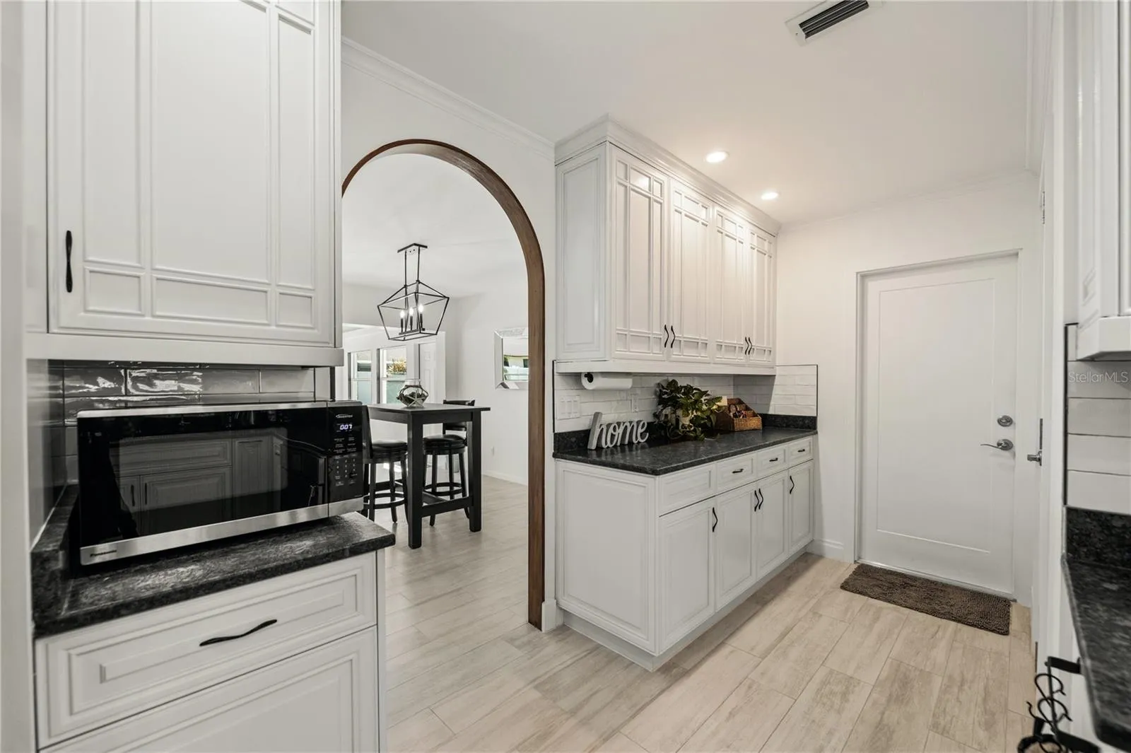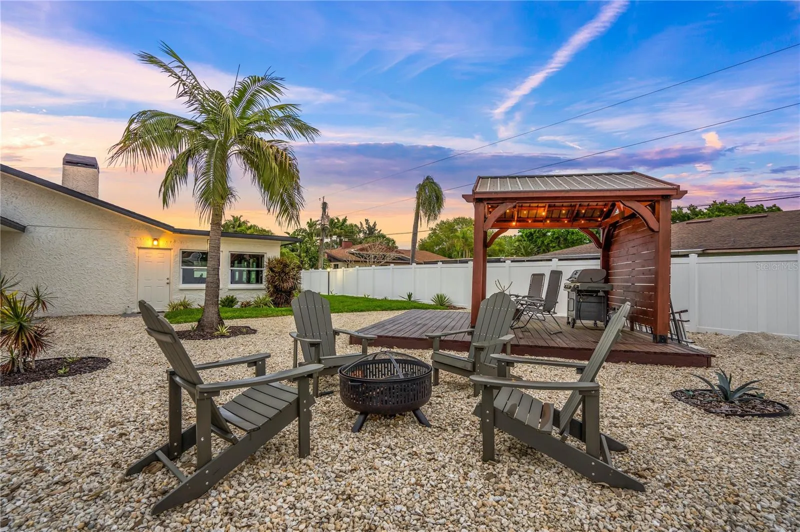 This meticulously renovated 4-bedroom 2-1/2-bathroom 2,500 SF spacious home is ready to embrace its new owners. Be impressed with the impeccable upgrades throughout including: the expansive kitchen with an abundance of cabinet space and leathered granite countertops, upgraded appliances, and water filtration. All bathrooms have been updated with new vanities, tile shower surrounds, and tile flooring. You will fall in love with all the natural sunlight, vaulted living room ceiling with accented wood beam, stain-cased arch doorways and windows, upgraded light fixtures, and new tile floor in all rooms. The detail does not stop at the interior. The entire home has been painted, new vinyl fencing, professionally designed landscaping with sod, irrigation, and light features. Two-car attached garage with painted floors and shelving. The rear lawn is a private haven of enjoyment with a composite deck and gazebo, beautiful flower beds, and adequate space for entertainment or pool addition! The home is quietly placed on a dead-end street with resurfaced asphalt roadway, 11 minutes to the beach, short bike ride to Robinson Preserve with 682 acres to explore, and convenient proximity to Publix and nearby shopping. Lot boundary lines extend across the street with an additional 15’+/- for gardening or additional parking.