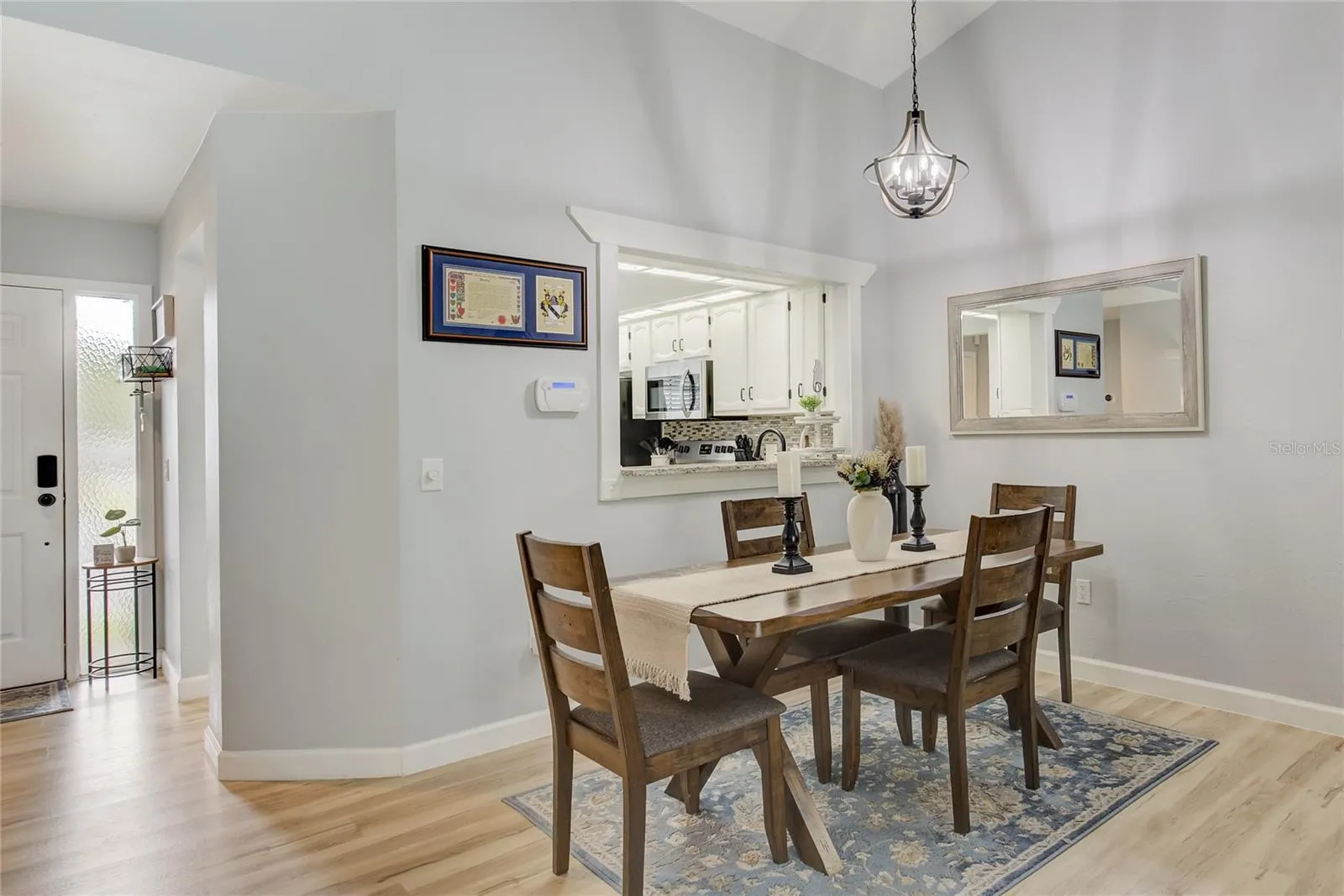 As you step inside, you’re greeted by an open concept layout that seamlessly connects the living and dining areas. High ceilings and large sliding doors allow natural light to flood the space, creating a bright and welcoming ambiance. The updated kitchen is a standout feature, equipped with stainless steel appliances, ample cabinet space, a new backsplash and granite countertops, new disposal and new flooring….An absolutely delightful space for culinary pursuits!