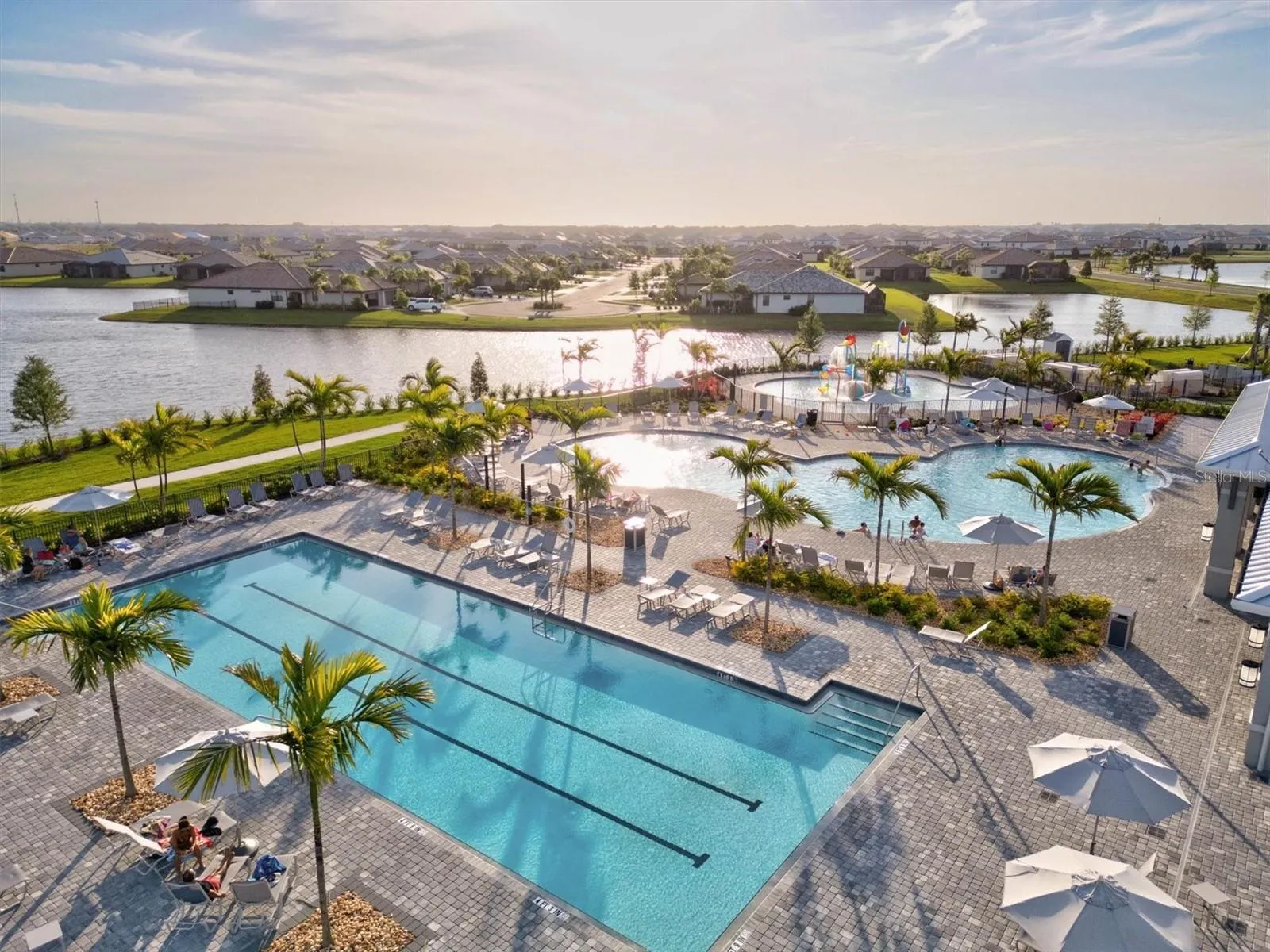 BETTER THAN NEW! Why wait to build when you can move into this GORGEOUS home with WATER VIEWS and all the finishing touches already done?! Soak up the beautiful blue skies and Florida Sunshine while you are relaxing on the LARGE LANAI, and then cool off with a dip in your HEATED, PRIVATE POOL. The BUILT-IN GRILL makes for easy and enjoyable outdoor cooking. The Covered Lanai is accented with a CEDAR PLANK CEILING for a custom look. The WALL-MOUNTED TV on the lanai makes it easy to enjoy those special games or favorite shows. This is FLORIDA LIVING! Inside the home you will find CEILING FANS with built-in lights in all the Bedrooms. Coordinating Window Treatments add that perfect decorative touch. SHIPLAP accent walls in the Owners Suite and Kitchen add a distinctive flair. Attractive LIGHTING FIXTURES complete the look. CLOSET SPACE abounds! The Owners Suite features (2) WALK-IN closets. A Double-wide Hallway closet is the perfect space for Linens, extra Paper Products, etc. You will also find OVERHEAD STORAGE in the garage that provides the perfect space for those rarely used items. Additional STORAGE SOLUTIONS abound in the garage with racks and shelves that make it easy to stay organized. The Garage Refrigerator gives you space for extra drinks and those large platters and overflow food when you are entertaining. The gated community of Lorraine Lakes is RESORT-STYLE LIVING at its finest. The Fully equipped Clubhouse features a FITNESS CENTER, Aerobics Studio, Arcade, Indoor Gymnasium, Indoor/Outdoor Dining and a Fully stocked Bar. The SPORTS COURT features Tennis, PICKLEBALL, Volleyball, Bocce and Basketball courts. Water options abound featuring a Lap Pool, a Resort Pool and a Splash Pad. There is also an on-site Lifestyle Director who makes sure there are plenty of planned activities as well – the perfect way to meet neighbors and make new friends! In addition to all of this, the sellers just had a HOME INSPECTION performed and the inspector declared, “The condition of the home is exactly what you would hope to find for newer construction.” They will happily share the report with you. For additional Peace of Mind, they are also including a HOME WARRANTY. Remember, the Closing Costs on a resale home are considerably lower than on new contraction; yet another reason you want to make this home yours. FEES INCLUDE: Access to all of the Amenities; Basic Cable and Internet; Grounds Maintenance; Guarded Gate House and more! It does not get better than this!