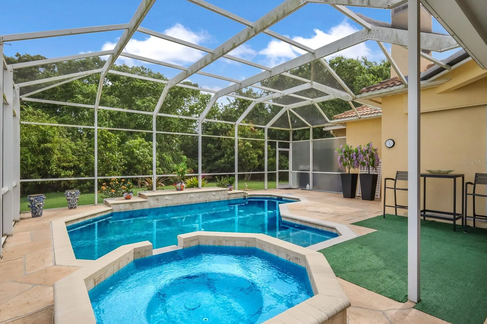 Indulge in the pinnacle of luxury living in Florida with this magnificent pool home, nestled on the tranquil shores of a picturesque lake. Enveloped by lush landscaping and a sprawling backyard, it presents a true slice of paradise just steps from your door.
