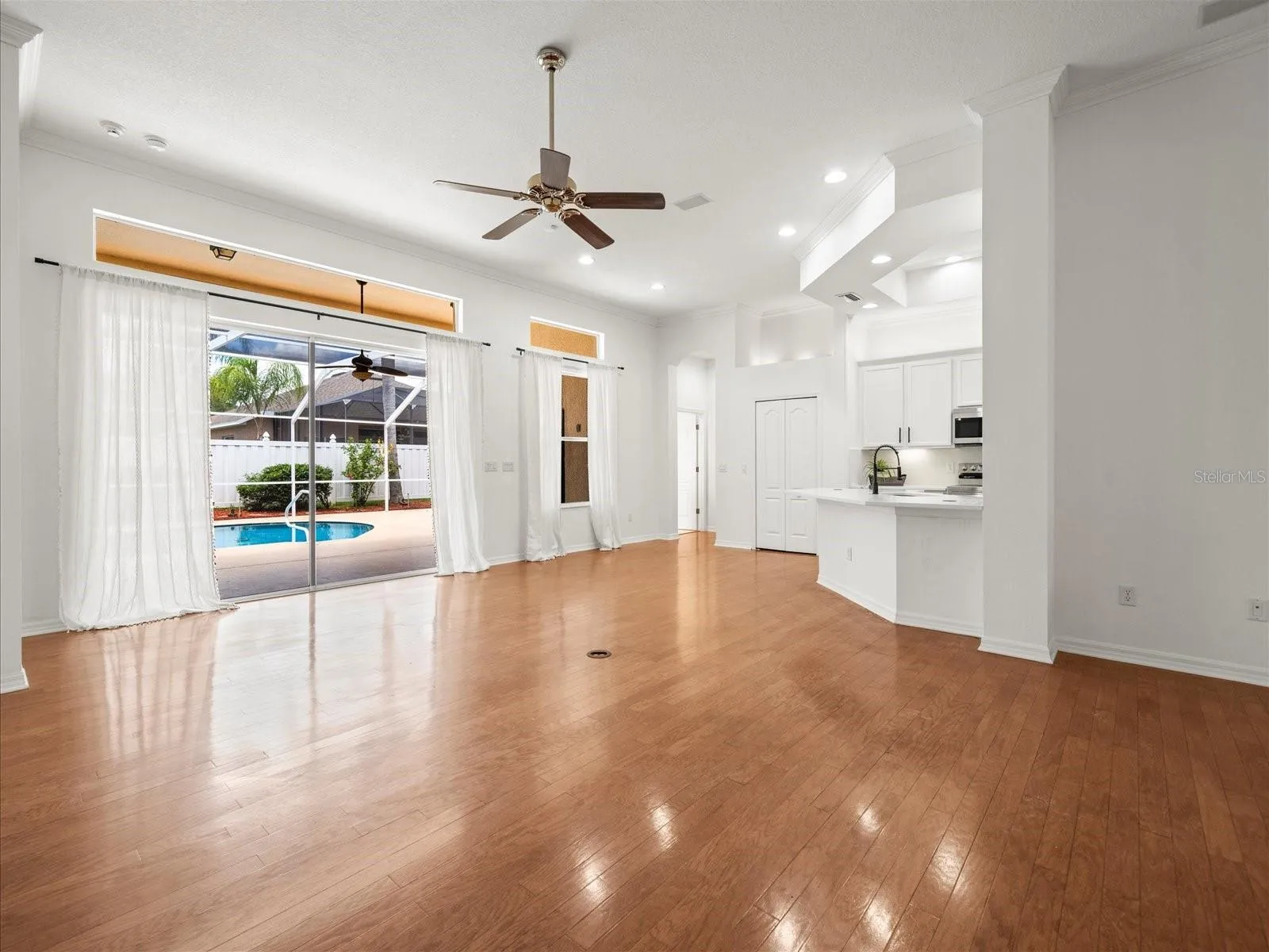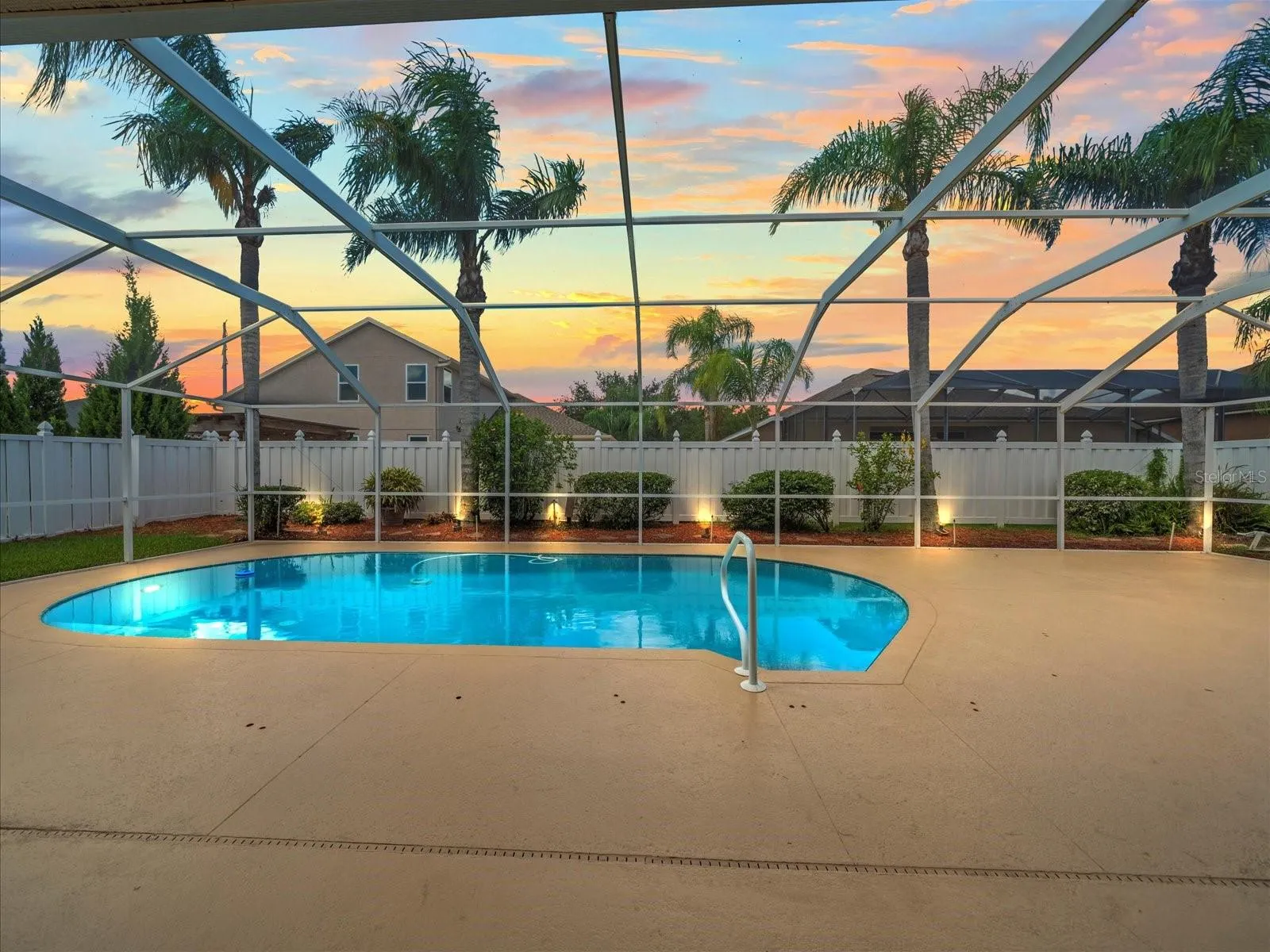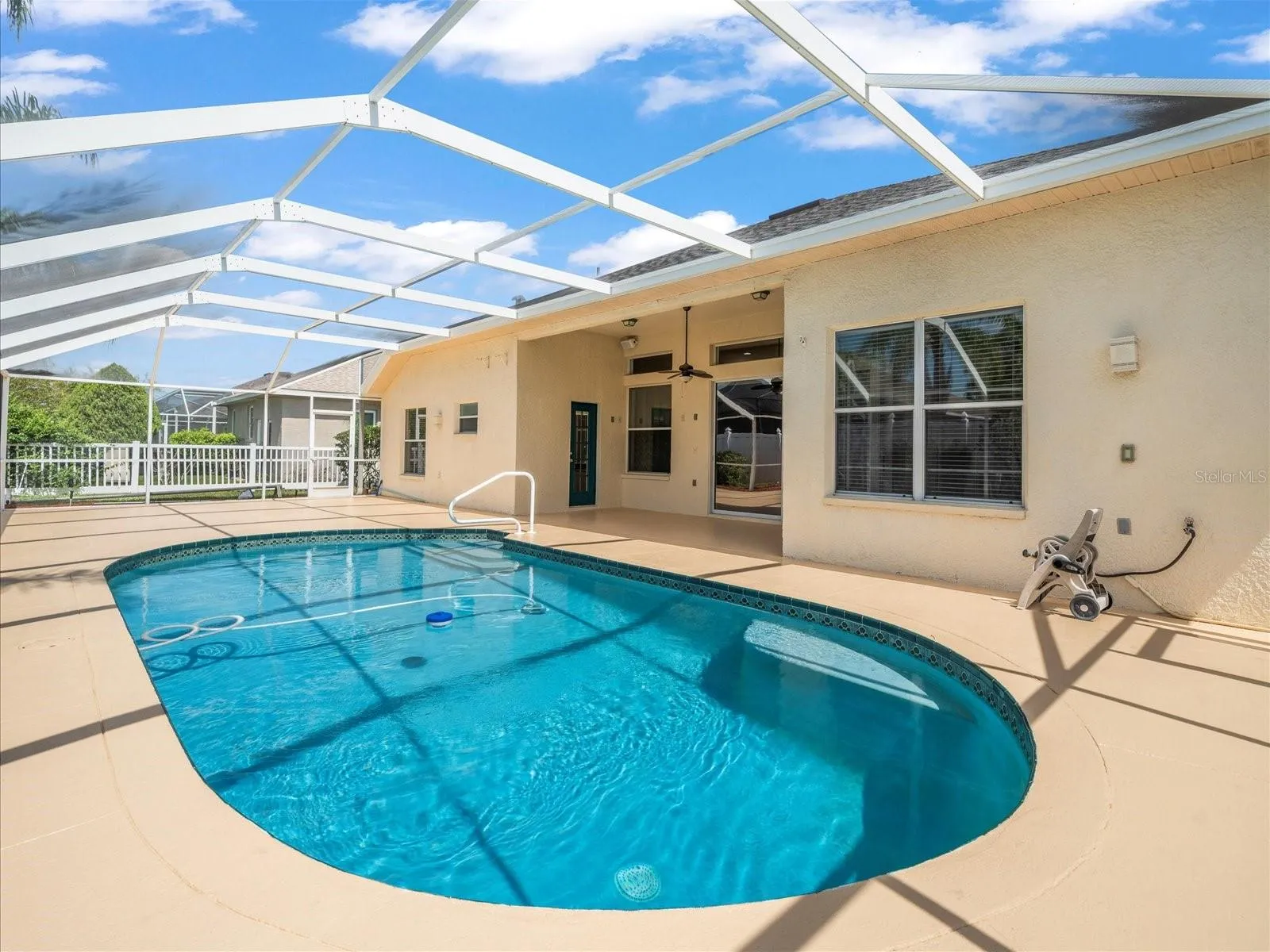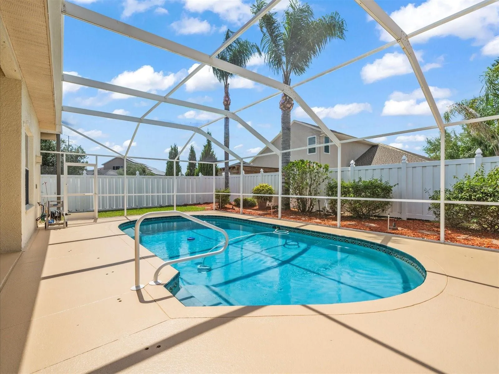 This 2,377 sq. ft. property features a LIGHT AND BRIGHT open floor plan with neutral decor and volume ceilings with transom windows! Upon arriving at the Property, you will notice a home that has been impeccably maintained, starting with a NEW ROOF (2022) and mature, lush landscape with up lighting (GORGEOUS AT NIGHT). As you enter the home, you will notice an abundance of natural light and updates such as a NEW HVAC (2019), NEW HOT WATER HEATER (2024), NEW INTERIOR PAINT (2024), NEW KITCHEN QUARTZ COUNTERTOPS AND STAINLESS STEEL APPLIANCES (2024), AND PROFESSIONALLY PAINTED KITCHEN CABINETS (2024). Additional features include crown molding, hardwood floors, a gorgeous kitchen with an abundance of cabinets and closet pantry, spacious bedrooms, recessed lighting, ceiling fans, window treatments and more! And no matter where you are in the house, the spacious lanai and inviting screened pool package (resurfaced and new screening in 2019) are easily accessed.