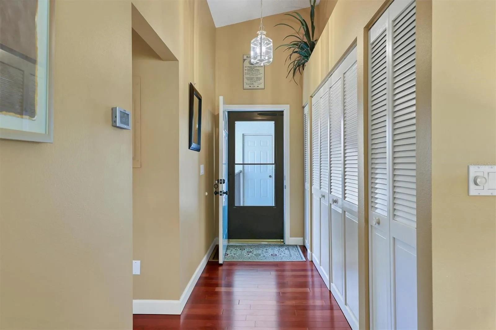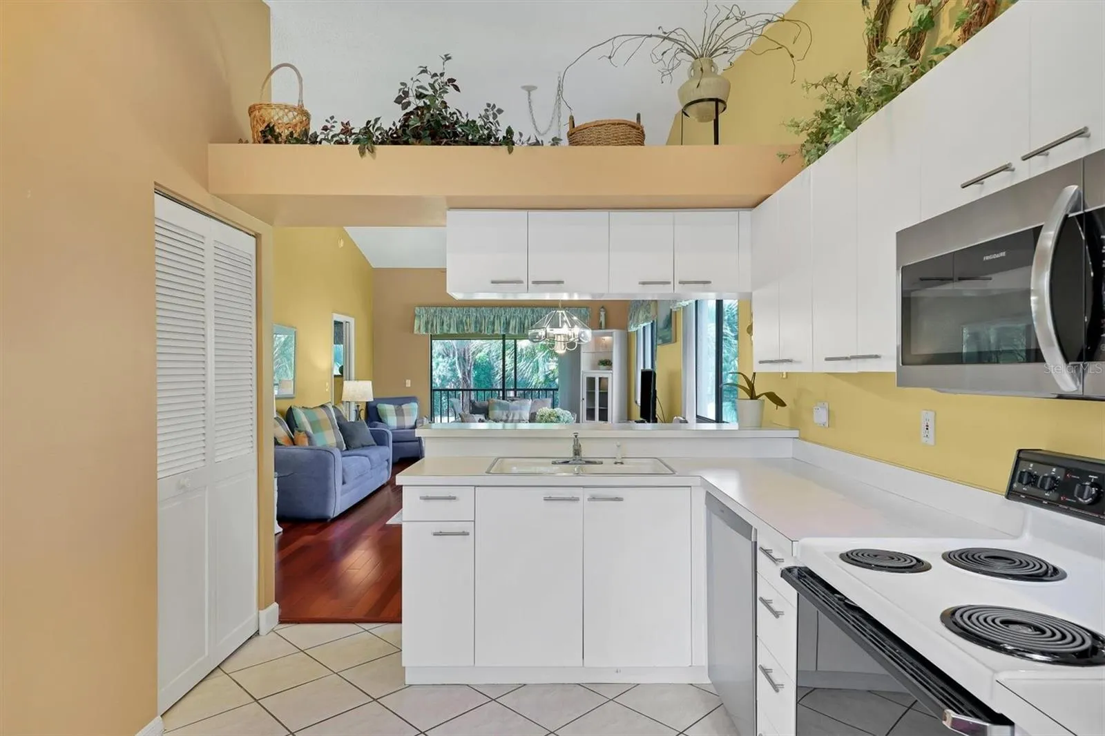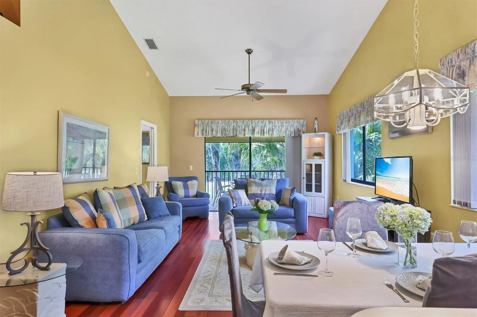 ARE YOU LOOKING FOR AN IMMACULATE 2 BED / 2 BATH END UNIT CONDO WITH EXCELLENT VIEWS AND SUPER LOW FEES IN A QUIET NEIGHBORHOOD OPEN TO ALL AGES? Check out this beautiful condo located in warm and friendly Eagle Creek nestled in the heart of Palm Aire. The Condo fees for this one are just $315/month and that covers water/sewer and cable! This might just be the absolute best deal in town. Lots of recent upgrades including * 2.5 TON TRANE A/C 2020 * GE WASHER/DRYER 2021 * HOT WATER TANK 2020 * NEWER STORM DOOR WITH SCREENS * NEW KOHLER CAMODES AND FIXTURES IN BOTH BATHS *. The first thing you notice as you enter this property are the 12’ tall VAULTED CEILINGS adding space and light to the entire room and the RICH BRAZILLIAN CHERRY HARD WOOD FLOORS in the great room. The OPEN CONCEPT family room, dining room, kitchen combination makes both entertaining and relaxing at home a dream. The kitchen is a chef’s delight, featuring modern appliances (new microwave 2022 and Bosch dishwasher 2021), ample cabinet space, and a convenient breakfast bar where guests will love to gather. Retreat to the serene master suite where comfort meets luxury, complete with a WALK-IN CLOSET and an ensuite bathroom that includes a DUAL VANITY, JETTED WHIRLPOOL TUB, and WALK-IN SHOWER WITH ENCLOSURE. The sliding glass doors which open to the screened and covered lanai make this primary suite feel light, bright, and open. Enjoy alfresco dining or peaceful mornings on the OVERSIZED 14×9 COVERED AND SCREENED LANAI which boasts RICH TUSCAN PAVER STONE FLOORS. From the lanai, you have the BEST VIEWS IN ALL OF EAGLE CREEK and overlook the 11th hole of the Palm Aire Gold Course as well as LONG LAKE VIEWS to the north. This unit also comes with a 6×3 storage closet where bikes and beach gear may be conveniently stowed. * All furnishings may be purchased optionally *. COMMUNITY AMMENITIES INCLUDE A SPARKLING HEATED POOL AND SOCIAL CLUBHOUSE within 2 blocks. Complex is well maintained and managed and has a * NEW ROOF AND NEW PAINT. * Owners may have * ONE PET OF ANY SIZE * and you can rent this unit out up to * 12 times per year with a 30 day minimum rental period. * Close to SRQ Airport, UTC Shopping and Entertainment District, Downtown Sarasota, Lido Beach, Palm Aire Country Club, Benderson Park, Wholefoods, Publix, and excellent health care options. This picturesque condo is more than just a residence; it’s a lifestyle and peaceful retreat just waiting to be embraced.