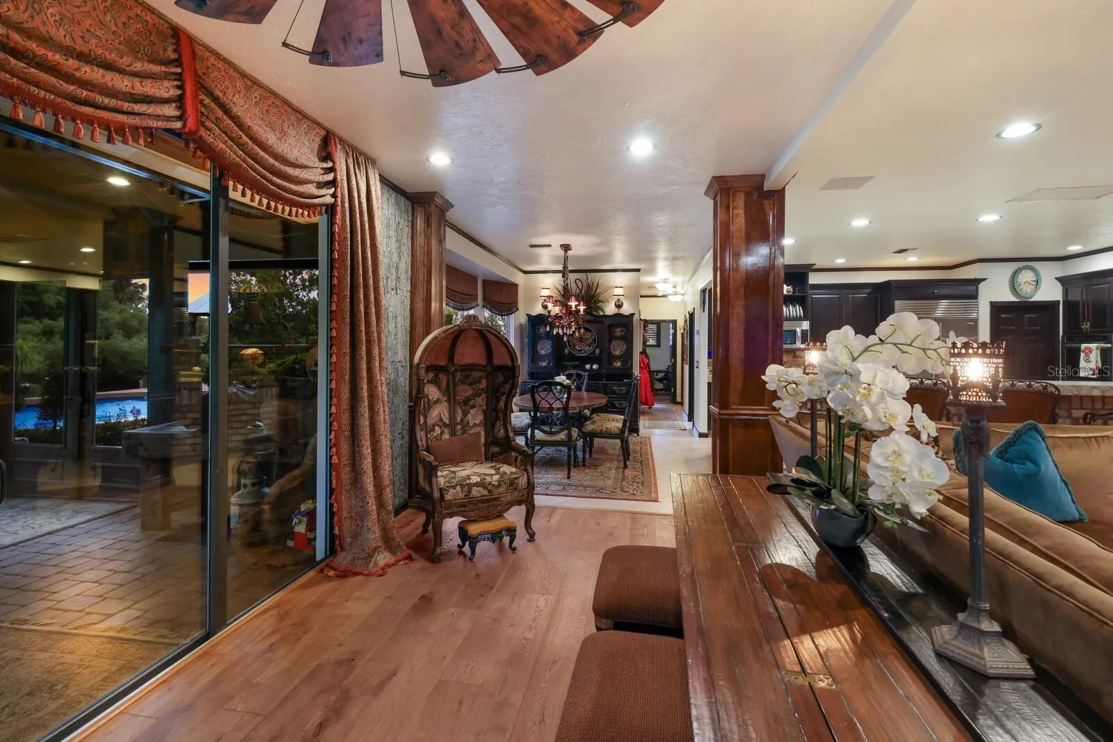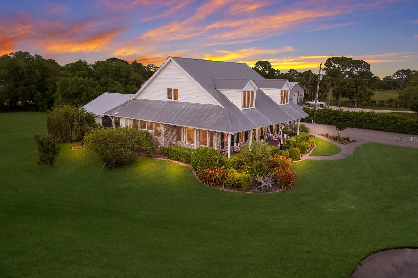 Welcome to Waterline Farm. A spectacular ode to East Manatee County history nestled on A ZONED 5 ACRES of lush land. This exquisite property offers a serene escape JUST 1.5 MILES FROM SHOPPING & DINING . As you make your way down the long-paved driveway, past the pond, and through the archway of hundred-year-old Oaks, you’re greeted by the charm and unmatched character of the countryside. Stepping inside, you’re welcomed by a warm and inviting interior, a grand staircase, and PLANTATION SHUTTERED WINDOWS frame picturesque views of the surrounding floral landscape. The heart of the home is the spacious living area, complete with a cozy GAS FIREPLACE and DUCHATEAU WOOD FLOORING. The kitchen is a chef’s dream, featuring high-end MIELE and SUBZERO APPLIANCES, 8.5″ CENTIMETER LEATHERED GRANITE countertops, and ample CUSTOM CRAFTED CABINETRY for all of your culinary endeavors. Venture outside and discover the true enchantment of this property. A serene POND reflects the colors of the sky, inviting you to sit and contemplate the beauty of nature on the tree swing that sways near the shore. The expansive grounds are perfect for leisurely strolls, picnics, or family games on the front manicured lawn, while ATVs, dirt bikes, and other toys can truly experience the untouched nature of Florida living in the back portion of the property. Two breathtaking Grandfather Oaks offer an unimaginable sacred place to reflect or gather beneath their canopies and additionally offer privacy to the main home and SALT WATER POOL. The remaining grounds boast several outbuildings such as a 3-STALL BARN with tack room and additional storage, and an awe inspiring 4000 SQUARE FOOT WAREHOUSE that features soaring ceilings and beautiful exposed timber relocated from the locally renowned, Florida original, Walt’s Fish Market & Restaurant. The warehouse is equipped with 3 LOFTS, A CAR LIFT and plenty of space for up to 15 cars, Harley’s, an artist’s studio, or dream workshop, allowing you to further indulge in your hobbies and passions. Seller states current zoning allows for ADDITIONAL 1000 SQFT GUEST HOUSE to be built (plans permitting and county approval required). Whether you’re seeking a peaceful retreat to recharge your spirit or a place to create lasting memories with loved ones, this remarkable property offers the perfect blend of charm, tranquility, and convenience. ABUTTING 6 ACRES currently for sale under separate listing and for an additional cost that when combined would essentially create an incredible 11 acre parcel.