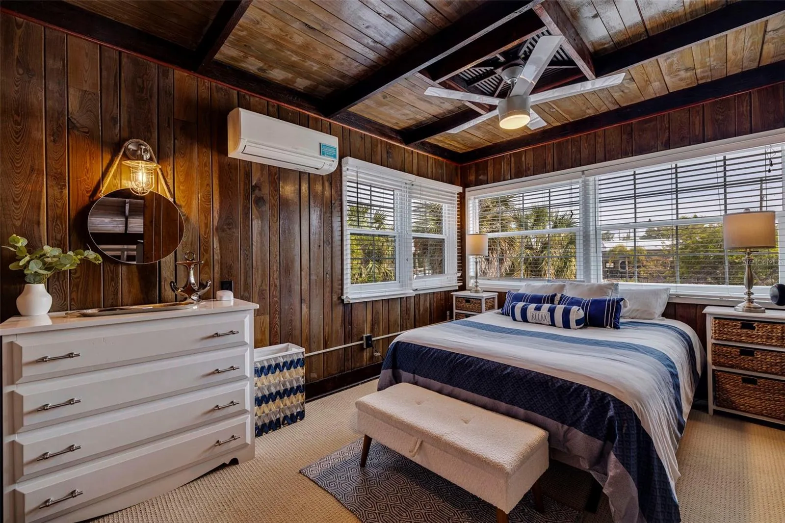 Boasting 4 bedrooms and 2.5 bathrooms, this pristine, perfectly maintained cottage offers plenty of space for family gatherings or vacations with friends. The historic charm adds to the appeal, providing a unique atmosphere that blends modern comfort with a touch of nostalgia. Interior features on the First Level include Pecky Cypress Walls, Vaulted Beamed Ceilings, Stone Wood Burning Fireplace and beautiful Hardwood Flooring! The updated Galley Kitchen has newer appliances and offers lots of storage and food prep space. Separate spacious Dining Room, Family Room/Den and Primary Suite. Bonus is a super cute ‘Bunk Room’ that sleeps two and has a charming half bath! The second floor includes two spacious Bedrooms, one with a Private Balcony, along with a Full Bath! This property has been Meticulously maintained, New Roof and Exterior Paint (2022), Impact Windows, with the Remaining Windows having removable Hurricane Panels, Mini Split AC Units (2018),and Updated Electric (2008) . Exterior features include a private backyard with a large Wood Deck for entertaining and room for a Pool. Outdoor Shower to rinse off the beach sand, Ample off-street parking for 4 or more cars and covered Carport. The mature Landscape adds to the curb appeal!