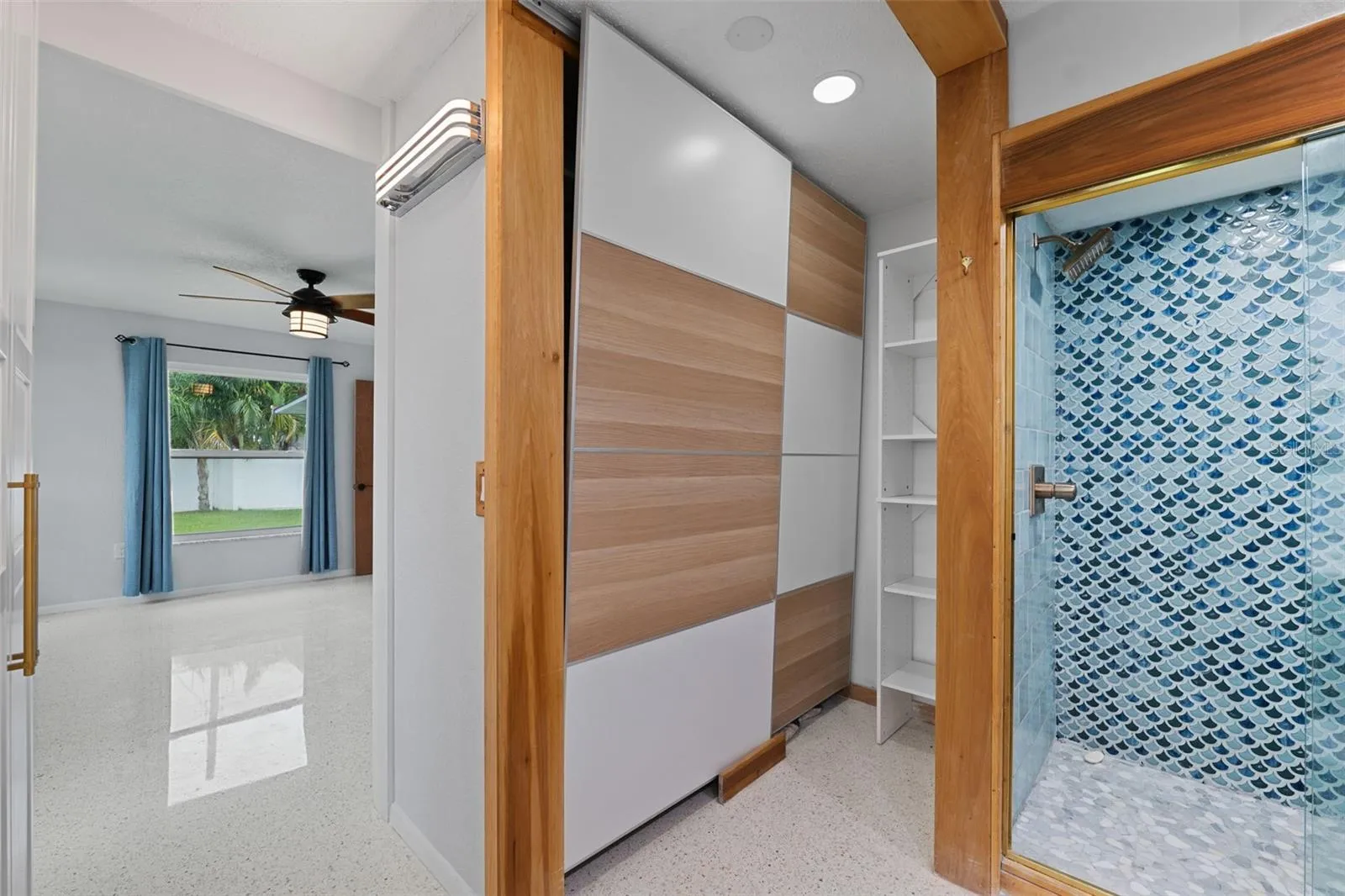 - Ceiling Fans(s), Thermostat, Primary Bedroom Main Floor, Solid Wood Cabinets, Built-in Features