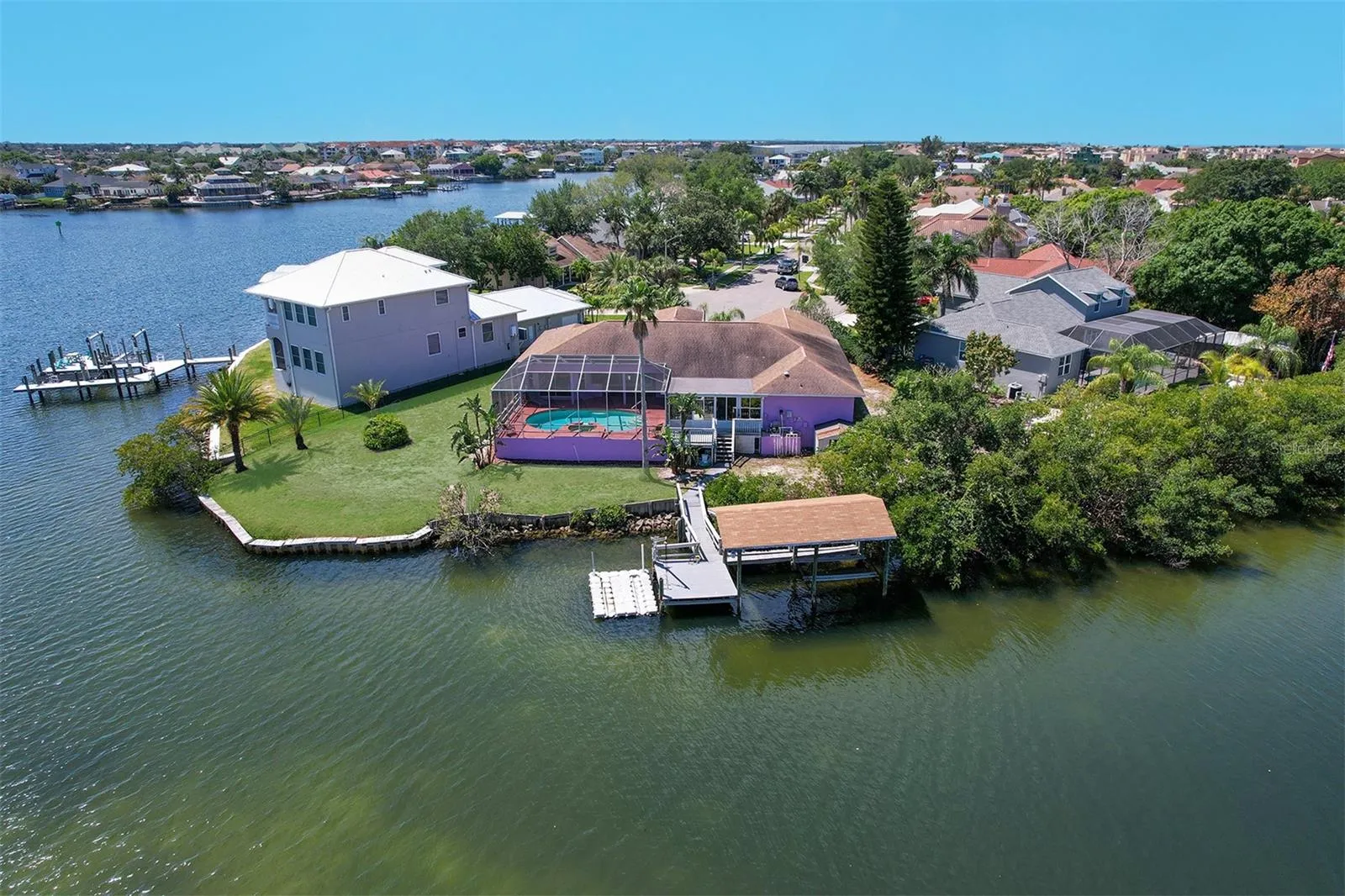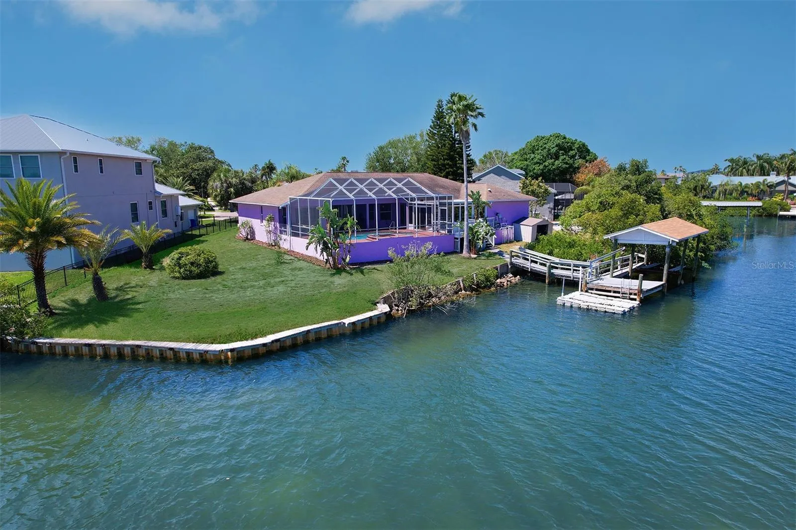 The spacious and airy layout is designed for both relaxation and entertainment. The well-appointed kitchen features modern appliances, ample counter space, and a convenient kitchen bar, perfect for casual meals or hosting gatherings. Adjacent to the kitchen, the dining area flows seamlessly into the living room, complemented by views of the pool and waterfront. Retreat to the master suite, a serene haven offering tranquility and comfort and a beautiful view of the pool and waterfront. Complete with 2 walk-in closets and an en-suite bathroom featuring dual vanities, a soaking tub, and a separate shower, it’s the ideal retreat after a long day. The additional bedrooms provide versatility for guests, home offices, or hobby rooms. Step outside to discover your private oasis. The screened-in pool area is perfect for enjoying the Florida sunshine, whether you’re lounging in the spa or poolside or taking a refreshing dip. Beyond the pool, the waterfront beckons, with a dock with a boat lift and jet ski docks offering direct access to the water, ideal for boating, fishing, or simply taking in the scenic views. With easy access to shopping, dining, parks, and entertainment, as well as being just a short drive from the vibrant city of Tampa, it’s a true gem in the heart of Florida’s Gulf Coast. Don’t miss your opportunity to own this exceptional waterfront retreat. Schedule your showing today and start living the Florida dream. $5000.00 credit to the buyer to have the house repainted. SELLER MOTIVATED TO SELL. Seller willing to see all REASONABLE OFFERS.
