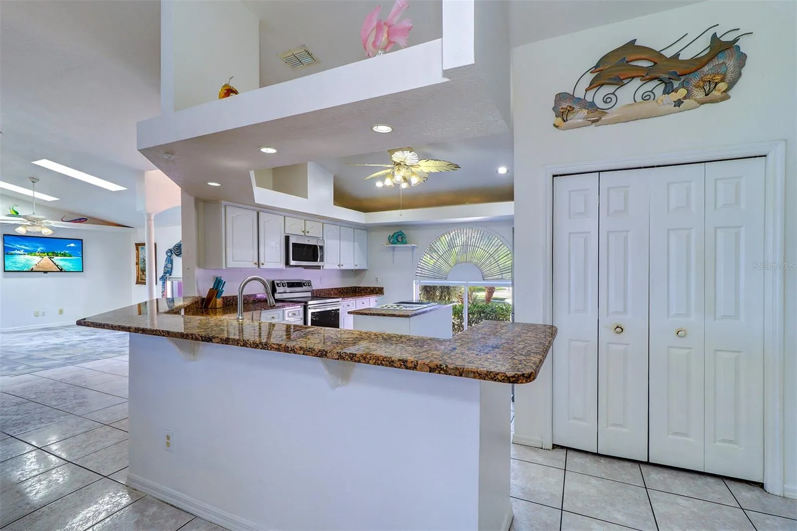 - Ceiling Fans(s), Thermostat, Walk-In Closet(s), Living Room/Dining Room Combo, Kitchen/Family Room Combo, Split Bedroom, Vaulted Ceiling(s), Solid Surface Counters, Skylight(s)
