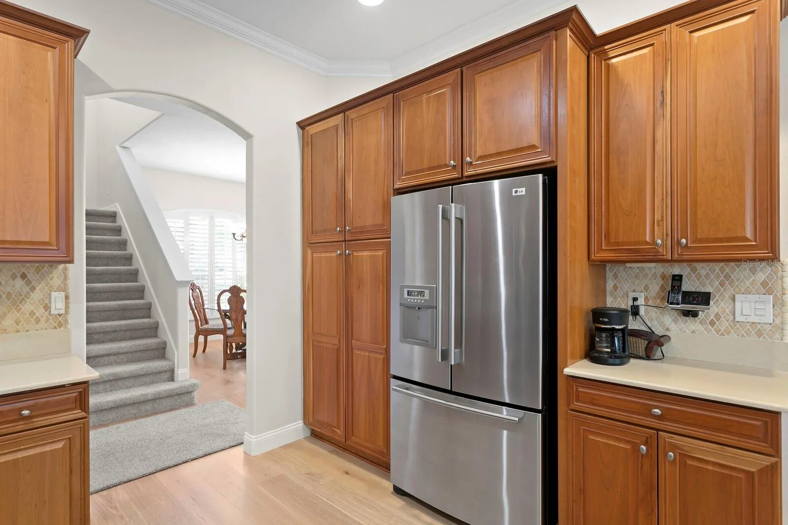 - Ceiling Fans(s), Crown Molding, Walk-In Closet(s), Living Room/Dining Room Combo, Eat-in Kitchen, Kitchen/Family Room Combo, High Ceilings, Stone Counters, L Dining, PrimaryBedroom Upstairs