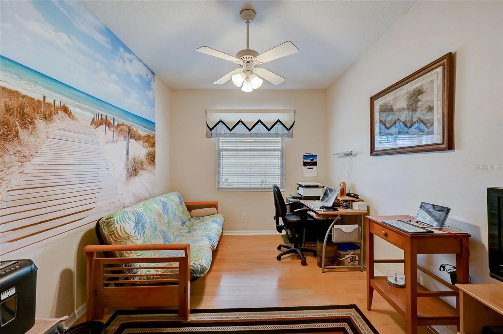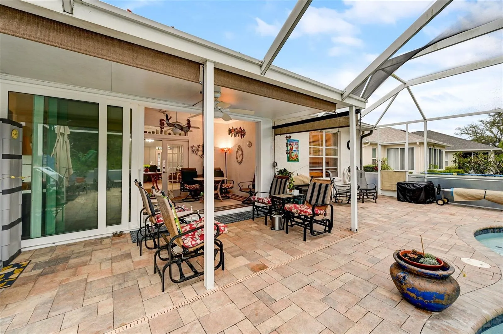 Welcome to this exquisite 2-bedroom, 2-bathroom home with a den that doubles perfectly as an office space, all overlooking a lush conservation view. Upon entry, you’re greeted by the elegance of hardwood and tile floors that flow seamlessly throughout the open concept living areas and den. The kitchen has an abundance of cabinets with under cabinet lighting, stainless steel appliances, solid surface countertops and a closet pantry. It’s every cook’s dream. There’s even an inviting eat-in kitchenette ideal for casual meals or morning coffee. Throughout the home, ceiling fans provide a gentle breeze and added comfort. You’ll also find hurricane windows and sliders, offering peace of mind and protection during storm seasons. You’ll love all the granite countertops throughout. Step outside to enjoy a resort-style living experience with a saltwater pool, ideal for relaxing or entertaining guests. The pool is solar heated, allowing you to soak up the Florida sun year-round while being environmentally conscious. This property truly offers a perfect blend of luxury, functionality, and tranquility. The roof was replaced in 2019 and the HVAC in 2017. The golf cart is included in the sale. You’ll love Sun City Center with its amazing facilities, pools, and clubs just waiting for you to enjoy. Between Sarasota and Tampa, it is the perfect location for a convenient ride to airports, great shopping, dining, and professional entertainment. With easy access to award-winning, sandy beaches, this is the best of all worlds, but without the stress of big city life. Leave it all behind and enjoy your new life here in one of Florida’s most affordable 55 and better communities!