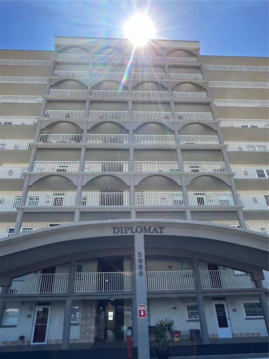 - Gulfport Blvd. South to 58t Avenue South go south to main Town Shores entrance. Go to stop sign. Turn left and follow to next stop sign. Follow to the right, the Diplomat is the 2nd building on the left. You turn in between the Embassy and the Diplomat and turn right immediately to park in guest parking. Take elevator to the 3rd floor. When you come out of the elevator you turn left at the railing and go to #310.
