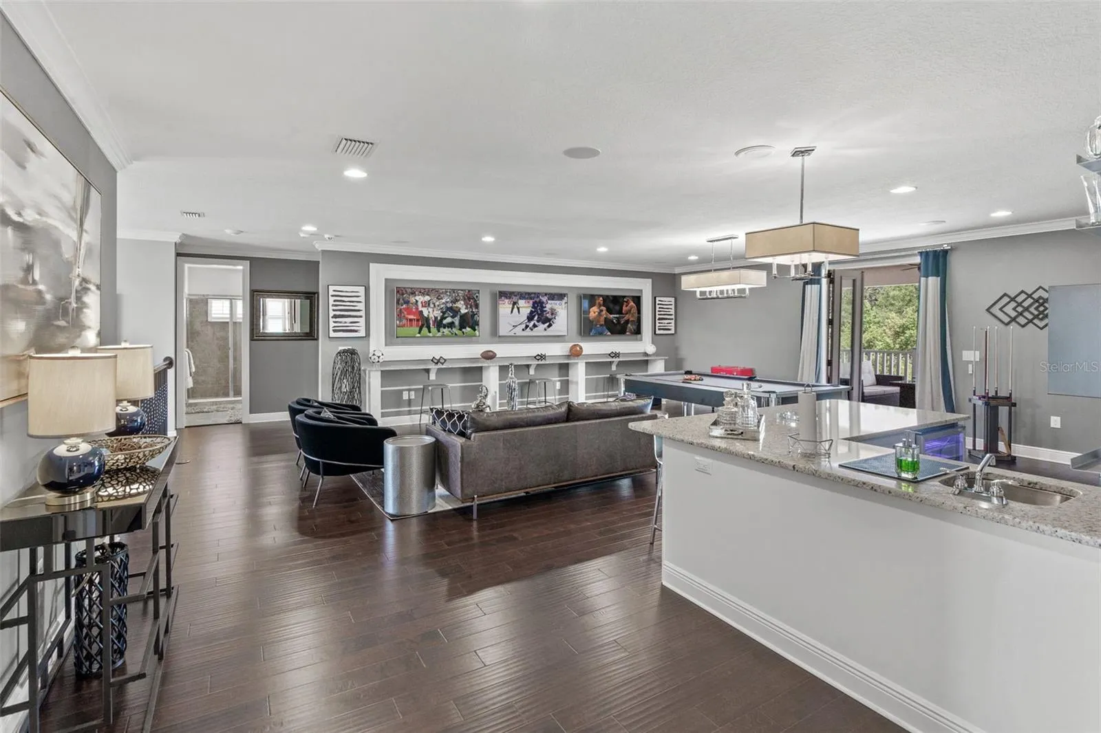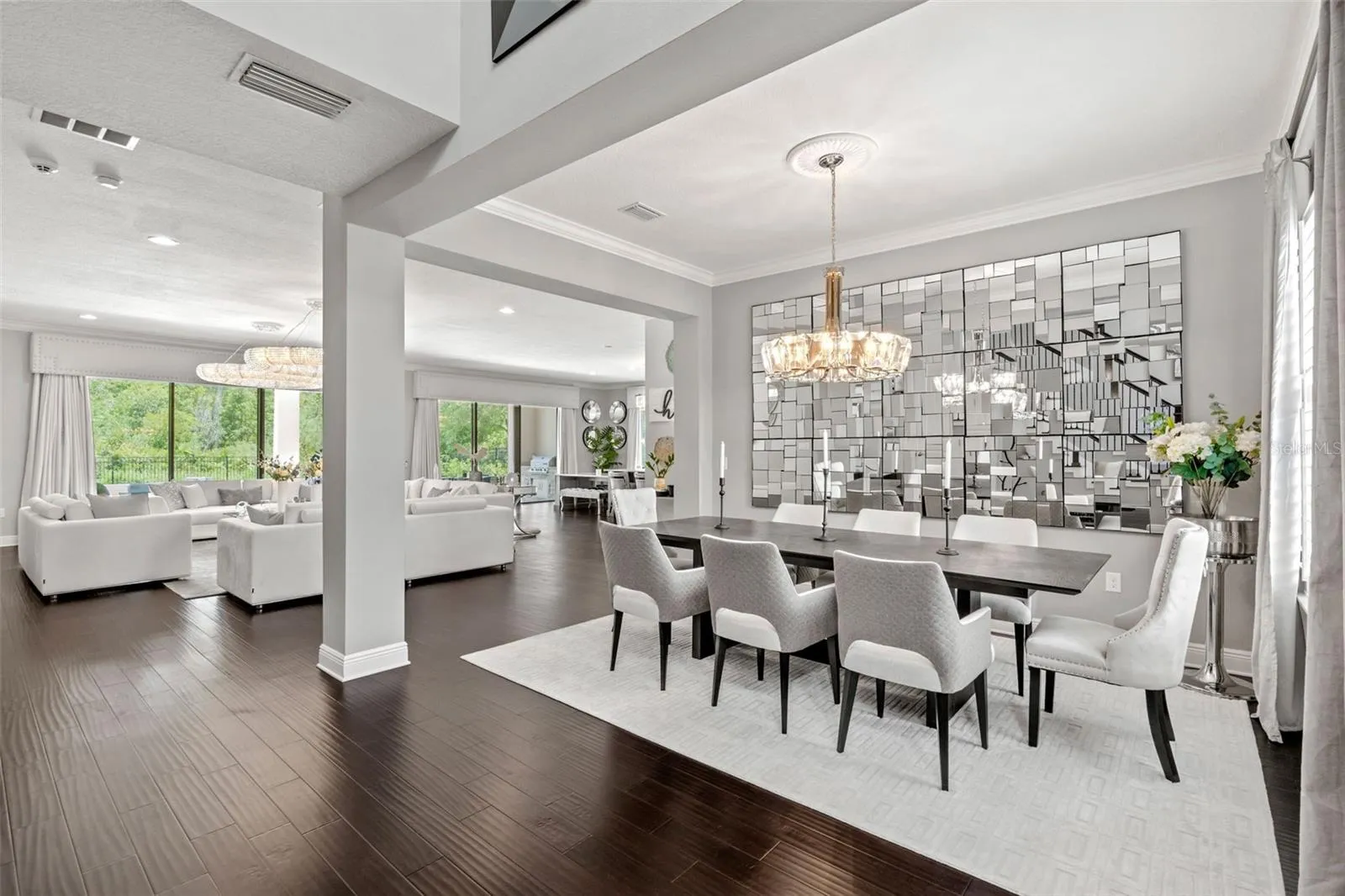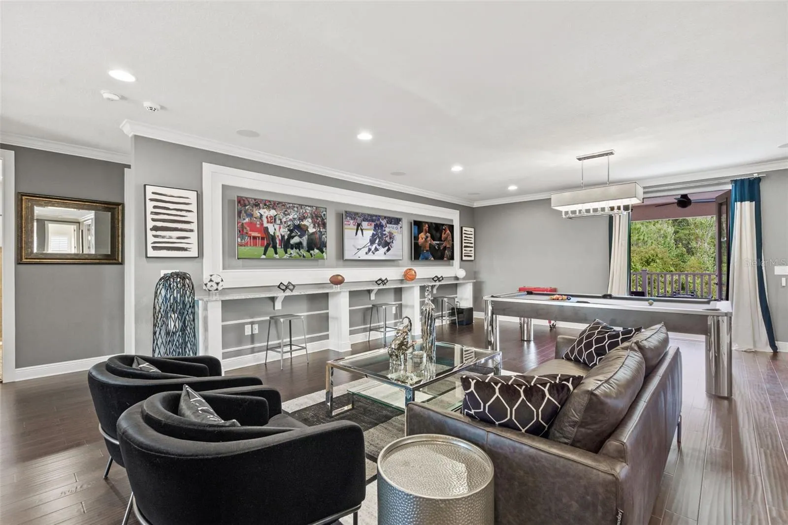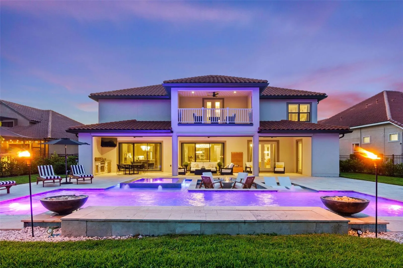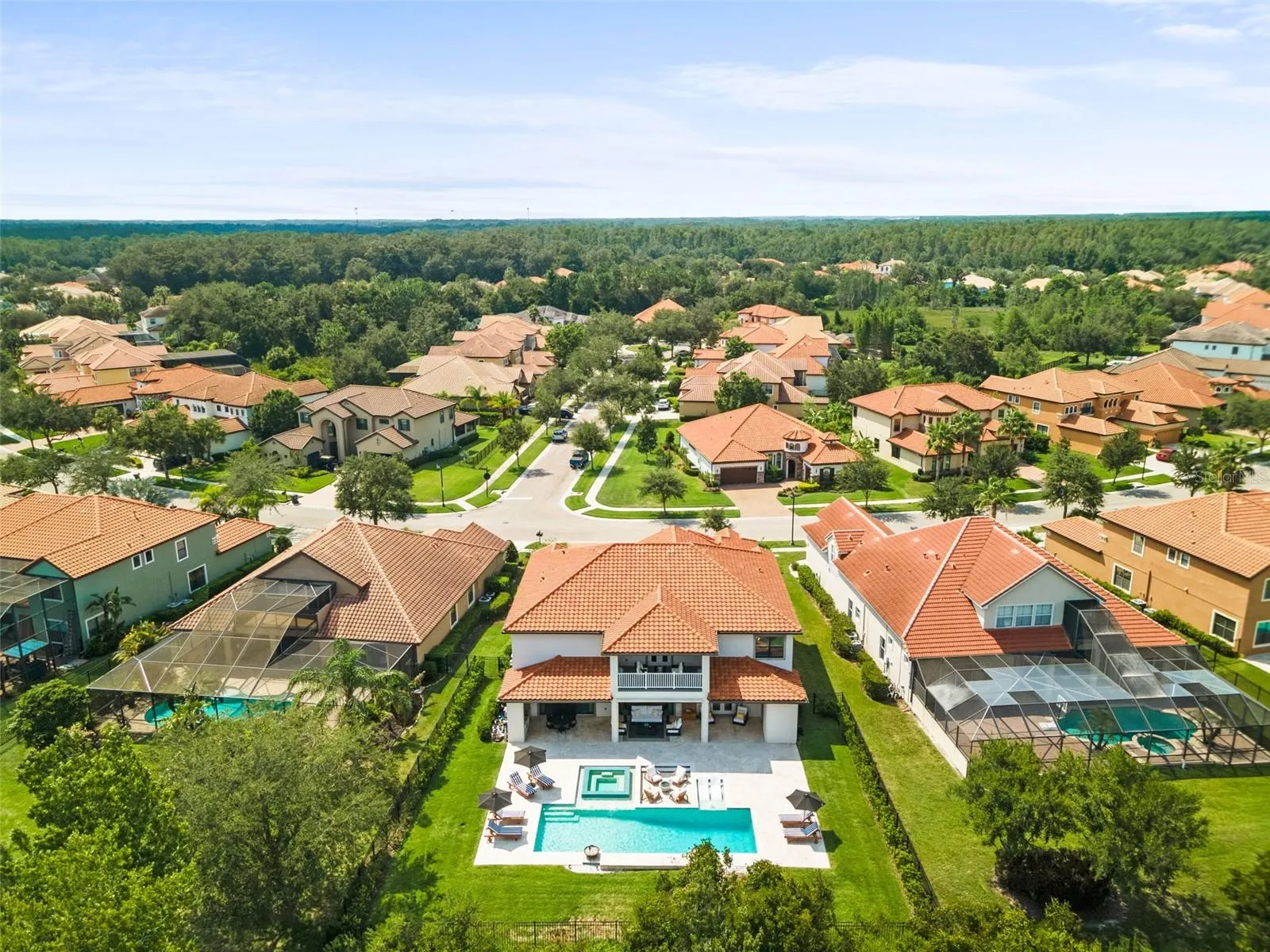 APPRAISED VALUE! 8/2024. Welcome to Luxury Living in the 24-hour GUARD GATED Community of GRAND HAMPTON! From the moment you arrive this UPDATED Custom Residence exudes Elegance & Comfort on a Sprawling Lot with PRIVACY & BREATHTAKING VIEWS of the surrounding conservation area. The manicured landscaping and long custom paver driveway leads you to spacious 3 car garages featuring epoxy floors and a striking Architectural Design. As you step inside this 6 Bedroom + Full Office, 5 Full-Bath and 2 Half-Bath residence, you’re greeted by an incredible light filled OPEN FLOOR PLAN. The home effortlessly combines traditional charm with Luxurious Modern Finishes. A grand two-story foyer sets the stage, adorned with a Feature Staircase, Sparkling Crystal Chandeliers, Designer Flooring, Crown Molding, Built-in Home scenting system and whole-house Water Filtration System. The living and dining spaces are beautifully appointed, perfect for hosting gatherings of any size. The Gourmet Chef’s Kitchen is a highlight, featuring Rich Custom soft-close cabinetry with ample storage space and roll-out cabinets, Luxurious Cambria Quartz Countertops, and High-End stainless steel appliances. A bonus breakfast bar adds casual seating for family and friends. Entertainment seamlessly flows into the BACKYARD PARADISE, a Dream for outdoor living. Oversized glass doors with Custom interior motorized drapes lead to an Expansive Patio with travertine stone flooring. The patio features state-of-the-art remote controlled enclosed screens. An outdoor kitchen with built-in BBQ, sink, fridge, TV, invites culinary adventures. An adjacent outdoor private bath, in-pool patio built in firepit, CUSTOM 7ft Deep SALTWATER POOL along with an infinity Spa & Multi-Color LED lights complete the resort-like experience. Inside, every detail has been meticulously designed. The STUNNING MASTER SUITE is located on the main level along with a separate En-Suite Bedroom. The Master boasts separate Dual Walk-in Closets and Private Patio Access. Two separate vanities, an oversized walk-in shower, and a oversized soaker tub create a luxurious retreat. The home is tailored for family enjoyment, featuring a large upstairs with a private outdoor covered balcony with an AMAZING VIEW, a Den with In-Ceiling Surround Sound for entertainment that include 3 T’Vs, and a WET BAR with a built-in temp controlled wine cooler. A CUSTOM MOVIE THEATER room designed with velvet insulated noise cancelation, plush carpeting, 13 Reclining-Seats equipped with a state-of-the-art Sony Projector. The theater delivers crisp High-Definition Visuals that bring Movies to Life, complementing the impressive visuals with an impeccable sound system, meticulously installed to enhance every detail of the movie soundtrack with premium audio quality that promises a cinematic experience. For shopping & dining enthusiasts, you’re just minutes away from Shops at Wiregrass, Premium Outlet Mall, a variety of restaurants catering to every taste along with many entertainment attractions! Whether you’re looking for family-friendly activities or leisure pursuits, there’s something for everyone. Located just off I-75/275, you’ll have easy access to Downtown Tampa within a short 25-minute drive. The area is also surrounded by TOP-RATED SCHOOLS. Grand Hampton offers RESORT-STYLE AMENITIES, here you’ll find not just a place to live, but a lifestyle best of suburban tranquility with easy access to urban conveniences & recreational opportunities.
