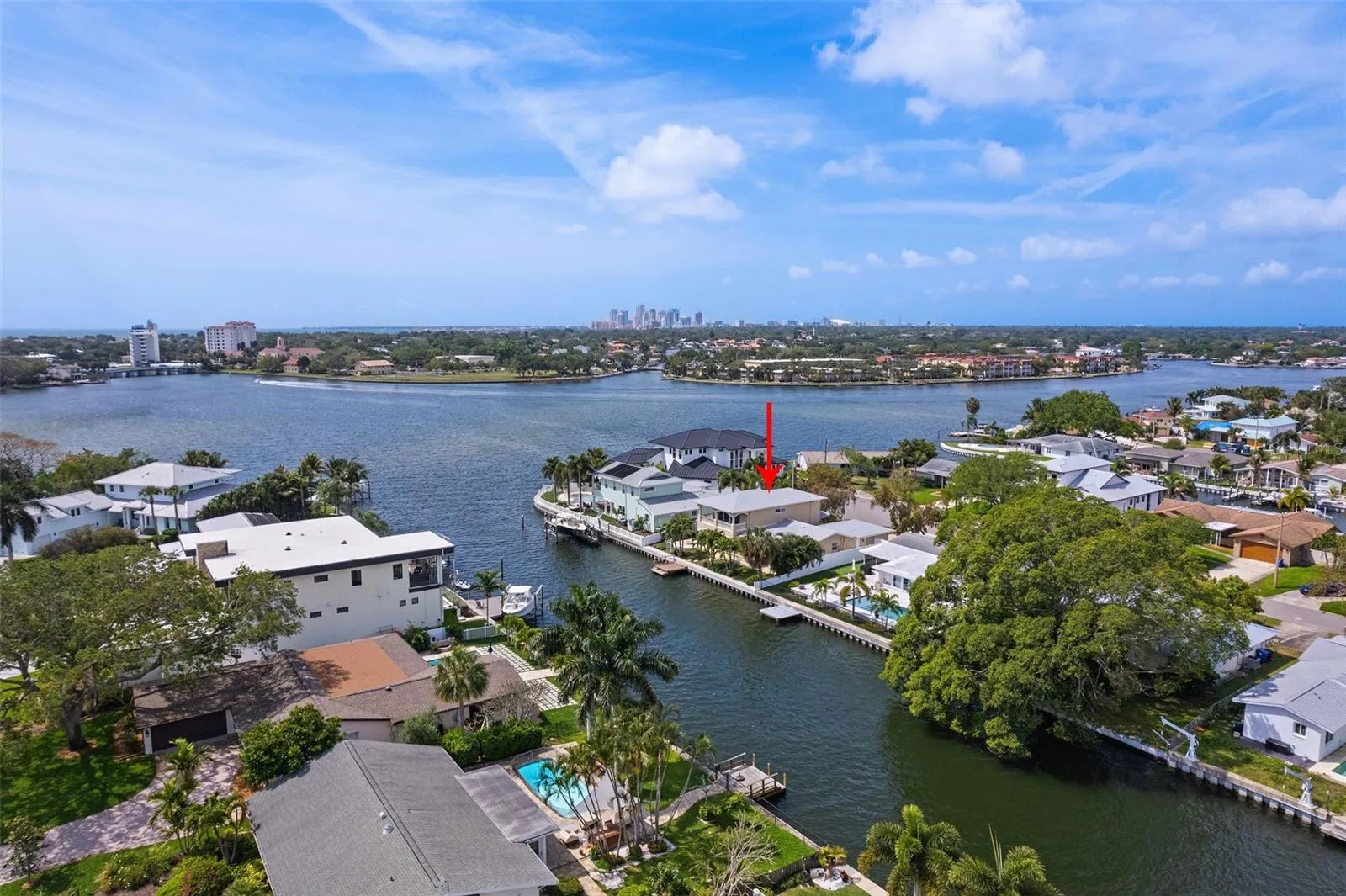 Waterfront living at its finest in this show stopper located on a cul de sac in Patrician Point. Upon entering this home though the double entry doors, you will be met with breathtaking water views. This light, bright, 3 bedroom, 2 1/2 bath home will be what you have been dreaming about in a waterfront home to live the Florida lifestyle in style. The open floor plan allows for entertaining and cozy nights by the fireplace. The porcelain tile neutral flooring adds to the ambiance. There are 2 bedrooms with a guest bathroom on the first level and an expansive primary suite on the second floor. A chef’s kitchen includes wooden cabinetry from Thomasville, with glass doors for displaying your favorite stemware, and granite countertops. A large island with plenty of storage allows for seating at the bar. Stainless steel appliances include a 2 drawer dishwasher, a wine cooler, microwave/oven combination and a warming drawer. A cooktop boasts a stainless hood. Flex space off the kitchen can be used as an office or breakfast nook. The adjacent dining room with French doors overlooking the water allows for ample seating. Additional cabinetry provides pantry space. An elegant powder room is across from an interior laundry room with side by side Kenmore elite washer/dryer. A first floor a/c and water heater are in the laundry room closet. A large storage closet is available underneath the staircase. The 2 bedrooms on the first floor are separated from the primary bedroom for privacy. At the top of the staircase, you will be in awe of the primary suite, which includes a tray ceiling and sliding glass doors the expanse of an impressive balcony with sweeping water views. Enjoy your morning coffee or evening glass of wine from the picture perfect sitting area located in the primary suite. Remote control drapery makes it easy as a push of a button for closing the drapes. A large walk in closet includes custom closet organizers. The primary bath includes separate dual vanities, a soaking tub, separate walk in shower and a bidet. A linen closet and a closet that houses an upstairs a/c unit and tankless water heater lead to the primary bath. Crown molding and key west style shutters add to the formality. The home has 82 ft of waterfront, with a newer seawall, and a gas firepit. The fenced in yard boasts new landscaping and the exterior of the home was recently painted. This waterfront beauty is only a short drive or bike ride to all that downtown St. Petersburg has to offer.