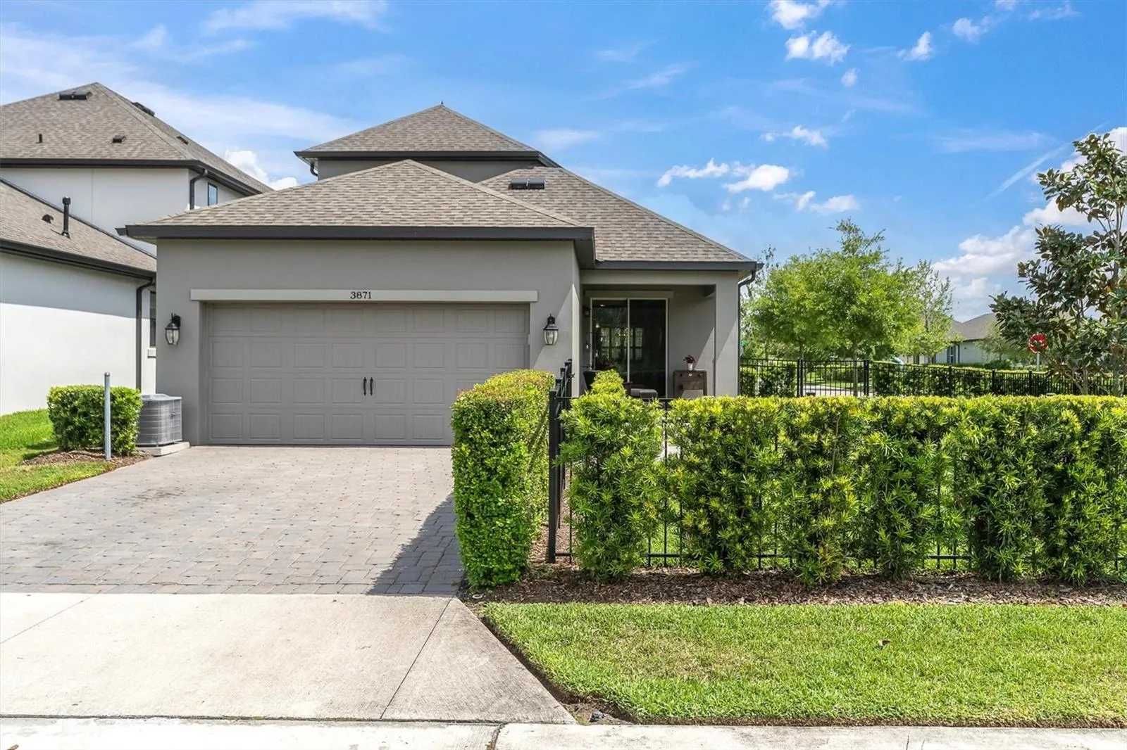 - Irrigation System, Rain Gutters, Sidewalk, Sliding Doors, Hurricane Shutters