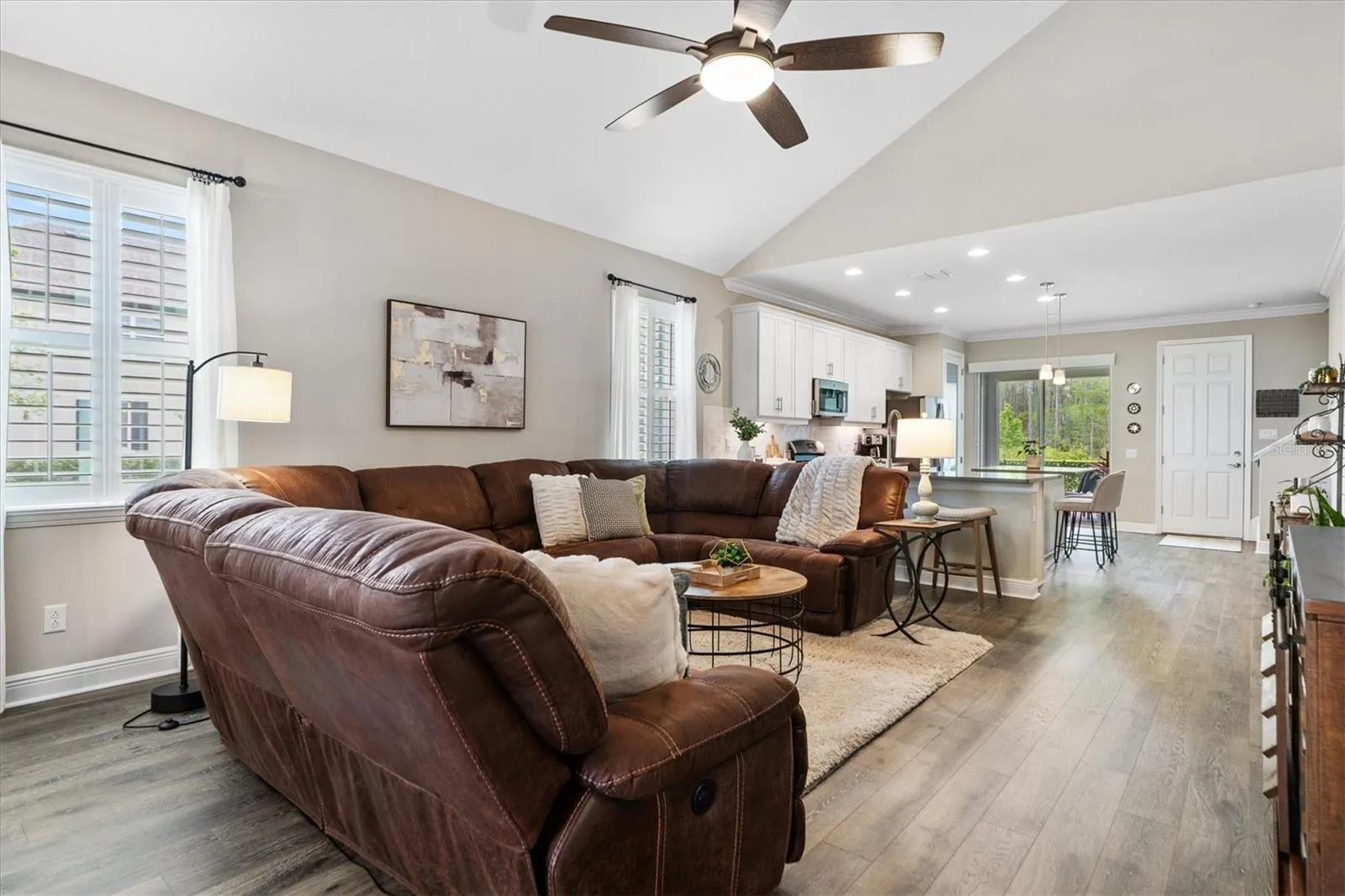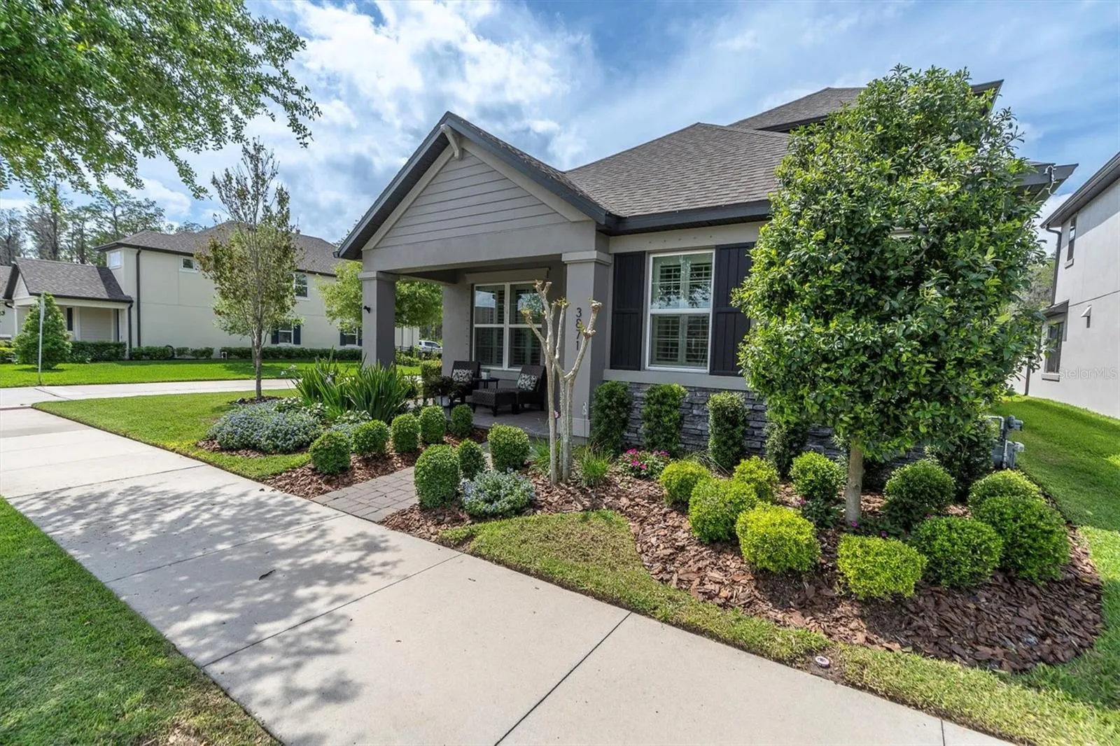 Welcome to the market this beautiful 3 Bedroom 3 Bath 2 Car Garage HOME located in the award winning neighborhood of Starkey Ranch in Odessa, Florida. This vibrant community features 800+ acres of parks, lots of open green areas, lakes, three community pools, multiple playgrounds, a splash pad, dog parks, 20+ miles of walking/biking trails, weekly and monthly resident events like Food Truck Fridays or Music in the Park, SR District Park which has numerous soccer, football, softball/baseball fields, SR Theatre Library Cultural Center, and lastly, Pasco County’s newest school as of 2021, Starkey K-8 which offers 3 magnet programs- computer science, technical fine arts, and world languages. About the house- this 2141sqft two story Craftsman inspired home was built in 2021 by MI Homes, a Whole Home 100% Certified premier builder in Tampa Bay. Take comfort knowing this like new home will come with a 15yr transferable structural warranty backed by the builder. It also comes with a plethora of green features such as a 14 SEER Energy Star rated high efficiency air handler and heat pump combination, Low E dual pane insulated tilt-out vinyl windows, quick recovery gas water heater, roof sheathing installed with radiant barrier foil, R38 fiberglass ceiling insulation, and R7.1 block wall foil insulation to name a few. Now for the fun stuff! Let’s talk about the additional features and upgrades this property all has to offer. The house sits on an oversized premium corner lot which allows for a larger backyard and has unobstructed views of the wooded conservation. You also get to enjoy having a semi-private alley due to no neighboring homes across the way and views of pretty sunset lit skies from the covered back porch. Sounds wonderful, right? Upon entering the home from the inviting front porch, one cannot help but notice the bright, open floor plan with vaulted ceiling and crown molding, gorgeous white plantation shutters, 8’ doors throughout (first floor only), and 5 1/4” Colonial baseboards. The kitchen features a huge undermount farm sink, solid wood shaker cabinets w/ 42″ uppers, quartz countertops, a gas range w/ matching stainless steel appliances by GE. The primary bedroom and bathroom is conveniently located on the first floor in addition to a second bedroom and guest full bathroom. Upstairs features a large bonus room with a dedicated work or toy storage area. The third bedroom and full bathroom on this floor could be perfect for guests or family member seeking more privacy. If you are seeking additional storage no need to worry because the original owners opted for a 6’ garage extension. We’re talking 26’ deep two car garage w/ industrial ceiling racks, wall shelving, utility sink, and water softener. So what are you waiting for? Schedule your private showing now. CLICK ON LINK TO VIEW HOME TOUR!