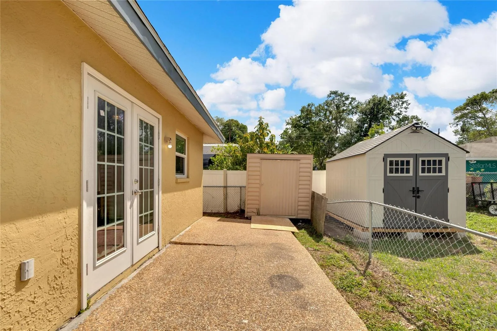 Opportunity Knocks! Price Reduction!!!!!! Have you been looking for a community that has NO HOA/ NO CDD FEES? If so, this home is for you. This beautiful charming 3 bedroom/2 bathroom offers the perfect blend of comfort and style. When entering through the front door, you have a view of the double French doors that gives off natural lighting. The home has recently been freshly painted. Two of the bedrooms have recently been updated with laminate flooring. The kitchen has a dining combo. The primary bedroom has a spacious walk-in closet and the bathroom has a walk in shower. Garage has sliding glass doors but garage door is still attached. The home sits on a corner lot with a fenced back yard and shed. Nearby are the LECOM Park – Spring Training camp for Pittsburgh Pirates, Village of the Arts, Old Main Street and Riverwalk. Schedule your appointment today.
