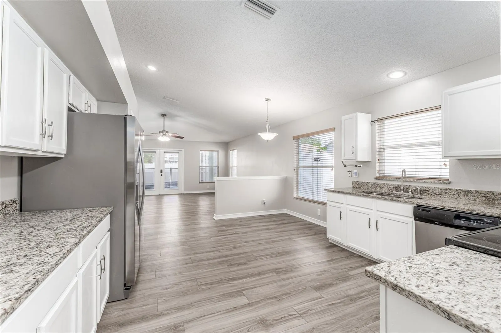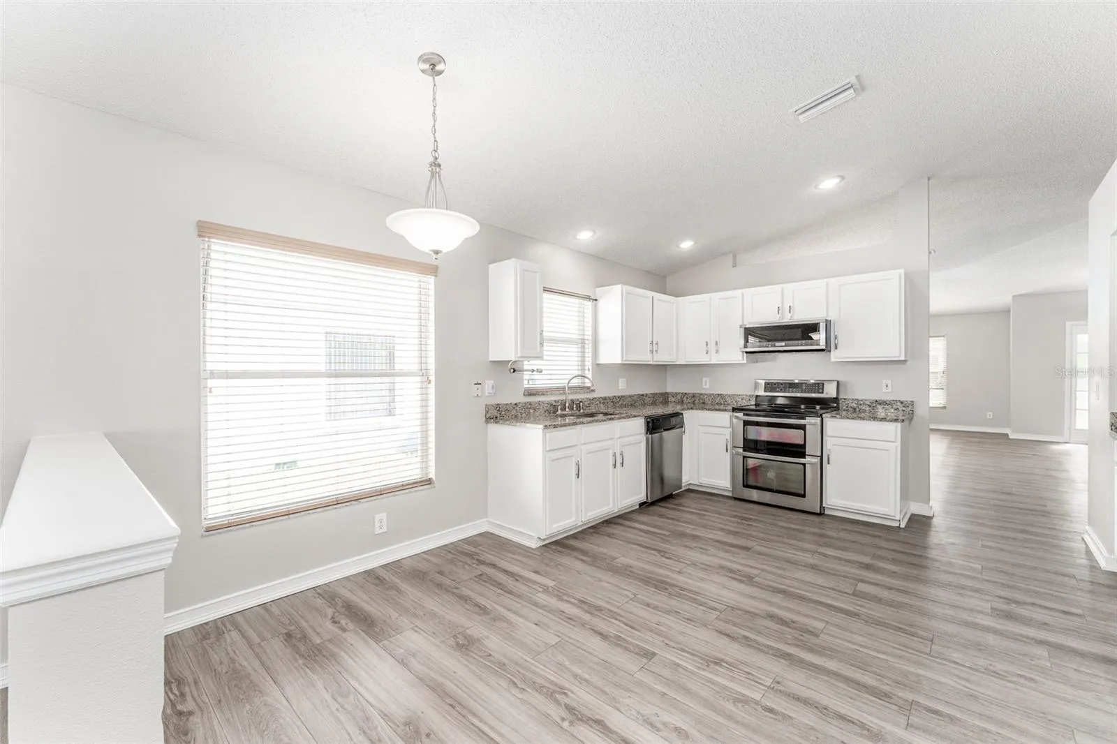 - Living Room/Dining Room Combo, Eat-in Kitchen, Kitchen/Family Room Combo, Split Bedroom, Stone Counters