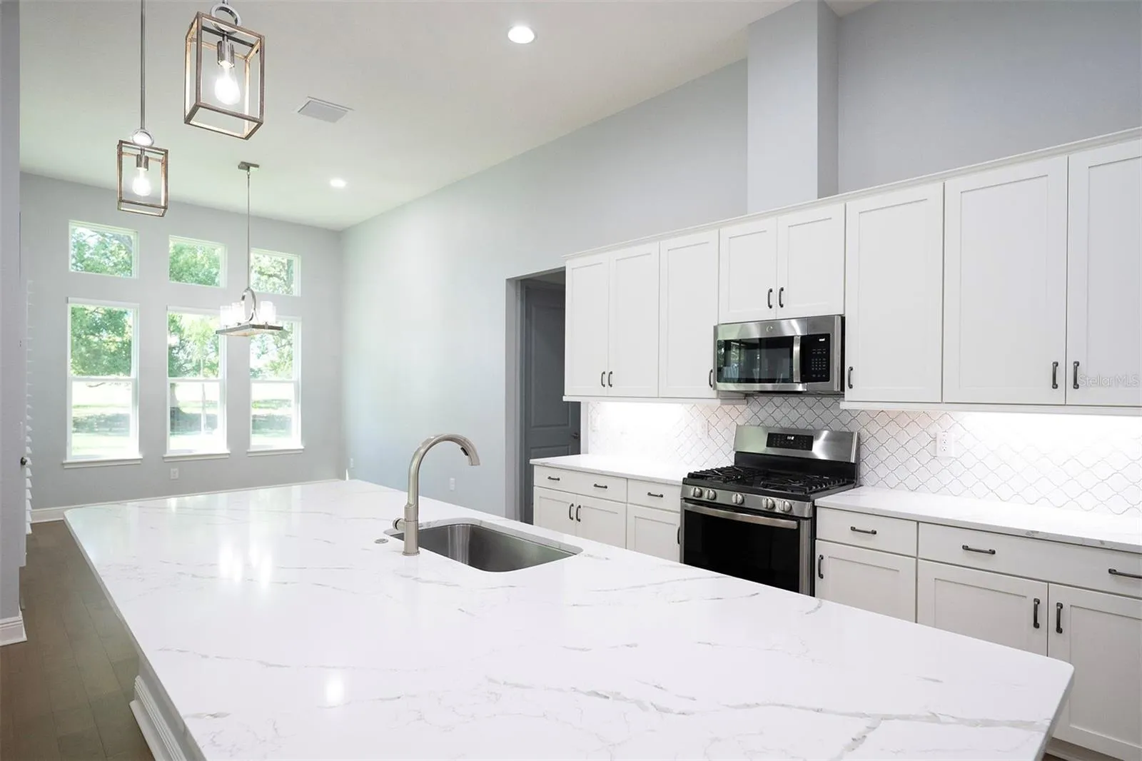 Discover the epitome of modern elegance in this 2021-built, 3bedroom, 2.5 bath, Lake Jovita home. With 3100 sq ft of meticulously designed living space, this home exudes luxury at every turn. An extended paver driveway, lush landscaping, and a 3-car garage welcome you into the house. The elevated grand foyer with exquisite hardwood flooring, gorgeous 14′ elevated tray ceilings allow you to step into the spacious living room, where a double sides gas fireplace creates a cozy ambiance, perfect for evenings of relaxation & entertaining. Wrap around windows and doors offer bright light and gorgeous views to the award winning Lake Jovita Golf Course. A gorgeous kitchen centered in the middle of the home offers easy entertaining, with its beautifully equipped with solid wood cabinetry, quartz countertops, a gas cooktop, huge double door pantry, stainless steel appliances, a built-in microwave, washer/dryer, and dishwasher will make your cooking and entertaining a breeze for you and your guest. There are plenty of options for dining, with breakfast bar seating on the island, and picturesque golf course views. Enjoy the MANY upgrades including high hats for beautiful lighting throughout the home & garage, automatic blinds for your convenience, custom made sliding glass door combination of blind/curtain and plantation shutters. You will also Enjoy the brand-new enclosed sunroom with floor to ceiling custom windows with double pane glass, high performance engineering control technology that will block UV rays. Crown molding & ceiling fans throughout the home, garage floor epoxy coating, gutters, raised electrical outlets for no wire show Tv mounting, water purifier and softener system, overhead garage storage, window tinting throughout, and so much more! This home has left no stone unturned.