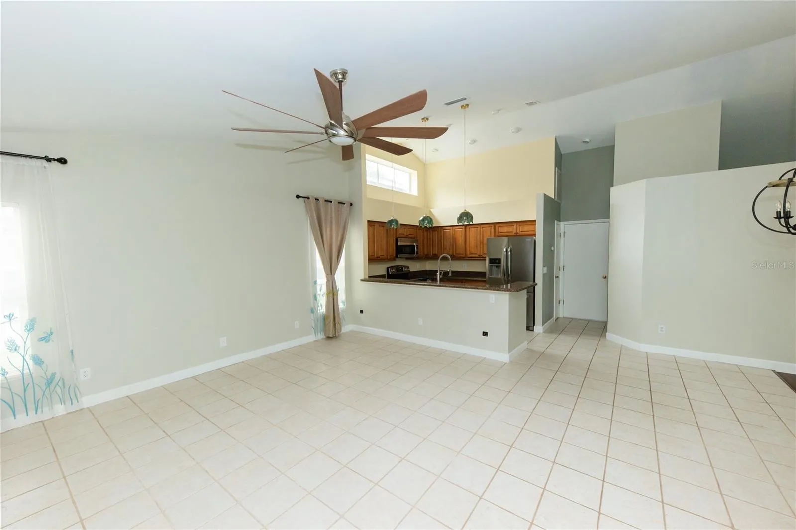 - Ceiling Fans(s), Open Floorplan, Thermostat, Walk-In Closet(s), Living Room/Dining Room Combo, Eat-in Kitchen, Kitchen/Family Room Combo, Primary Bedroom Main Floor, High Ceilings, Vaulted Ceiling(s), Stone Counters