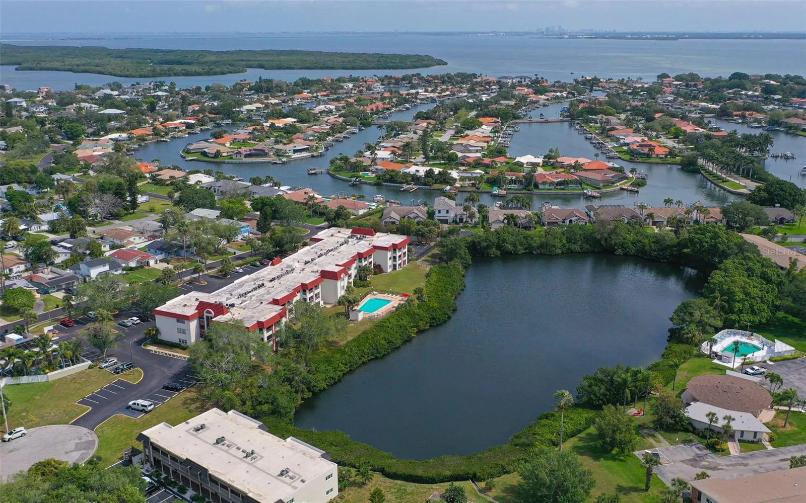 Welcome to The Regency!! A charming lakefront condo community perfectly nestled in the desirable Shore Acres neighborhood of St. Pete!! This well-maintained second-floor unit with 2 bedrooms and 1 bathroom should be on your must-see list if a low-maintenance home in an ideal location is what you are looking for. The open floor plan is perfect for entertaining or simply relaxing and boasts a spacious living/dining room combination with sliders that bring in lots of light and lead to your private screened balcony showcasing beautiful views of the serene lake below. The kitchen has a pantry closet and opens to the dining room and down the hall you will find both bedrooms and full bath. Newer laminate flooring (2023) was installed throughout for ease of cleaning and maintenance. The full-sized bathroom has tile flooring and a tub/shower combo. This condo was recently painted, has two assigned parking spaces, a newer water heater (2023) and the a/c was replaced in 2016. The Regency is a pet-friendly (20lb, 1 dog or 2 cats) and investor-friendly community with assigned and guest parking, bike storage, elevator and stair access and a large sparkling pool. Enjoy walking or biking the local neighborhood, visit Shore Acres Park & Rec Center, the Mini Park and the local Islander Market. The location of this community is ideal offering easy access to Downtown St Pete, great shopping and dining, I-275, sandy Gulf Beaches and two International Airports. Schedule your private showing today and start enjoying our famous Florida lifestyle.