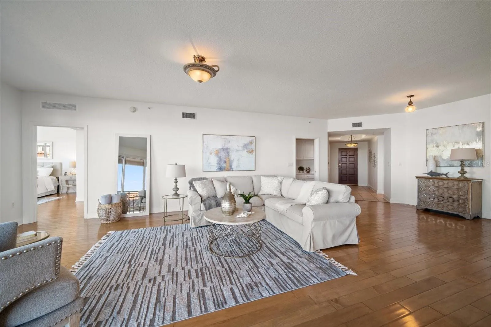 Welcome to your slice of paradise at Belle Harbor, a Mediterranean-style community nestled in the heart of Clearwater Beach! This exquisite condo boasts engineered hardwood floors that exude warmth and charm throughout. Offering a spacious and versatile floor plan, this 3BR/3BA residence includes a separate office space, perfect for those who work from home. At the heart of the home lies the dine-in kitchen, seamlessly flowing into the family room, with sliders opening to a private balcony showcasing breathtaking views of the Intracoastal. The split floor plan ensures privacy, with the primary bedroom featuring sliders to the balcony, a walk-in closet with custom built-ins, and a luxurious ensuite bath complete with dual vanities, a soaker tub, and a separate shower. Additional guest rooms are generously sized, one has an ensuite bath and sliders to private balcony. This luxurious community offers an array of amenities, including a resort-style pool and spa overlooking the marina, an outdoor lounge with a fireplace and TV, a state-of-the-art fitness center with sauna, billiards, social room, and a large clubhouse. Enjoy the convenience of walkability to popular restaurants, pubs, Pier 60, white sand beaches, and more. With over 6.5 acres of waterfront property, Belle Harbor is not just stunning, but a true island getaway. Don’t miss out on the opportunity to experience luxury coastal living at its finest!