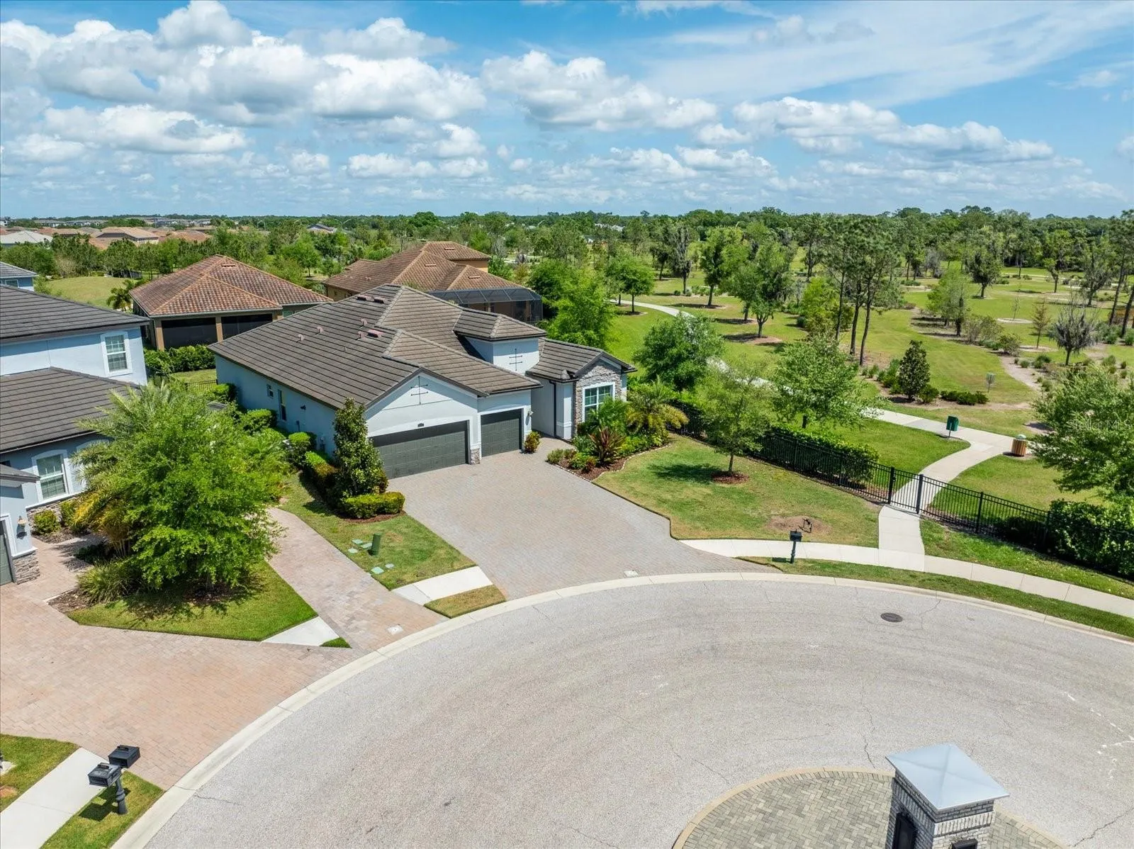 DOUBLE front doors open to a wide entry foyer and a pleasant office with french doors for privacy. This SUMMERVILLE has an amazing OPEN floor plan with a bright kitchen/dining/family room combo. The 10 foot ceilings and 8 foot doors throughout create a modern and contemporary feel. The generous living area looks directly out to triple sliders with a view of the FULLY FENCED backyard. A crisp white kitchen with oversized granite island opens to a sunny and spacious dining room. The three-way split bedrooms all have their own bath for function and added privacy. The gourmet kitchen features lots of storage, 42 inch solid wood cabinets, neutral granite countertops and a walk in pantry. Stainless steel appliance package includes, built-in NATURAL GAS cooktop, microwave, and wall oven. The primary bedroom opens into double walk in closets with en suite bath, large shower, and a soaking tub. Structural features in this home also include 10 foot ceilings, 8 foot doors, 5 inch baseboards and crown molding. Primary bedroom and living room also have higher trayed ceilings. Living areas have low maintenance durable ceramic tile throughout. This home is light, bright and perfect for entertaining. Backyard has privacy hedge with ample room to build your new custom pool. This exceptional homesite is ideally located on a cul-de-sac directly next-door to BOB GARDNER PARK with a secured gate for direct resident access. Bob Gardner Park offerings include a soccer field, disc golf course, 2 playgrounds and both wet and dry dog parks. Additionally, Arbor Grande has exceptional amenities-a nicely appointed Clubhouse, state of the art fitness center, a heated zero entry, pool, bocce ball, and sand volleyball court. The on-site community manager, along with resident committees plan and maintain a robust monthly calendar of social events and recreational activities. Arbor Grande is situated in Lakewood Ranch, the #1 fastest selling multigeneration community in the country. Lakewood Ranch continues to grow with excellent schools, shopping, restaurants, and sporting facilities. Golf, tennis, and pickleball are just a few of the most popular sporting activities found here. This boutique sized community is comprised of just 183 single family homes and 122 villas. This charming enclave of homes boasts architectural detail along with varied color schemes.