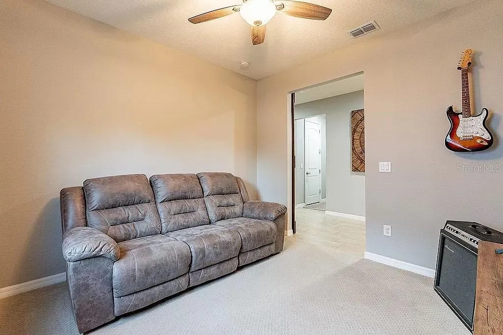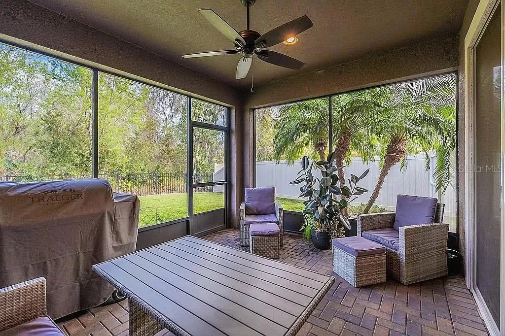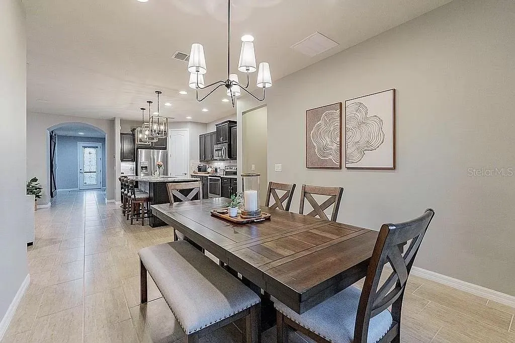 Why wait for construction when you can seize the opportunity to own this exquisite former model residence today! Situated in the serene and private community of Sereno, residents can enjoy access to a plethora of amenities including a pool, tennis courts, pickleball courts, walking trails, and a dog park. This home boasts numerous enhancements, including newly installed light fixtures and ceiling fans throughout, fresh paint, and custom closet inserts. Experience the grandeur of high ceilings complemented by 8-foot interior doors, alongside a host of modern amenities. Revel in the luxury of a spacious single-story layout featuring three split bedrooms, two bathrooms, plus a versatile office/den. The master suite offers tranquil water views, tray ceilings, dual sinks, an impressive walk-in shower, and a coveted linen closet. The kitchen is a culinary haven with granite countertops, wood cabinets, under-cabinet lighting, a convenient coffee bar, and top-of-the-line stainless steel appliances. The open concept design seamlessly connects the kitchen to the Great room and Dining room, ideal for entertaining. Retreat to the covered screened lanai with brick pavers, accessible through triple sliding doors adorned with new Hunter Douglas Vertiglide Honeycomb Shades. Enjoy the privacy of a fully fenced backyard and the convenience of epoxy garage floors with a newly added extensive storage system. Don’t miss the chance to make this your new home!