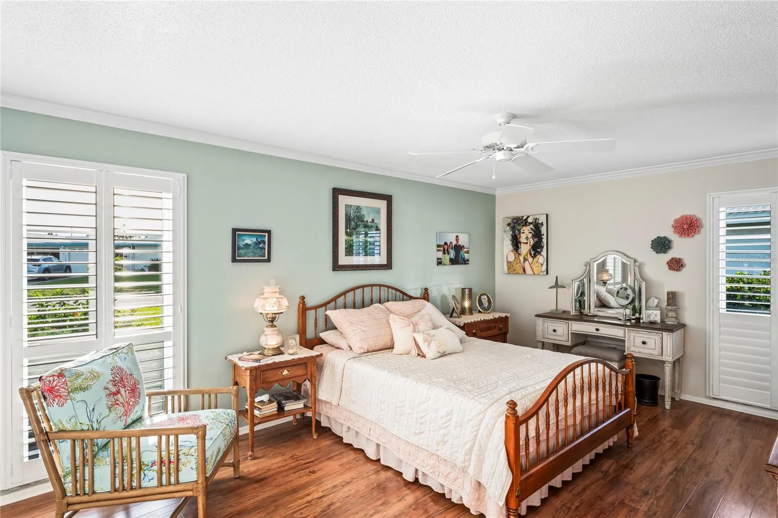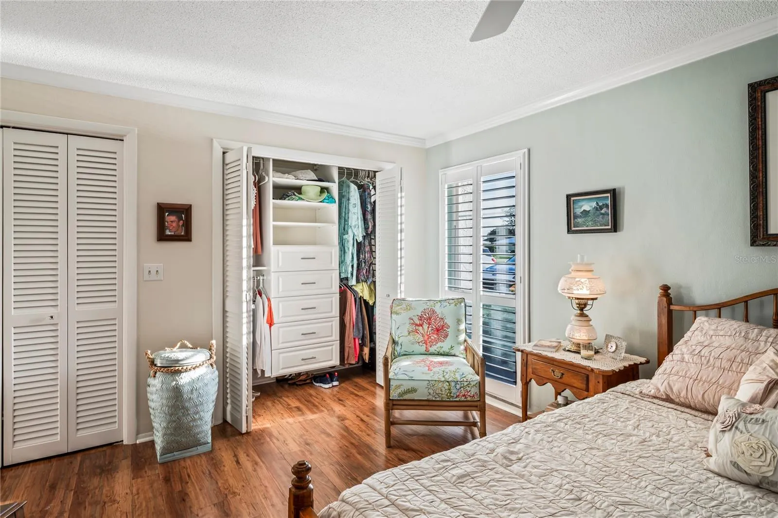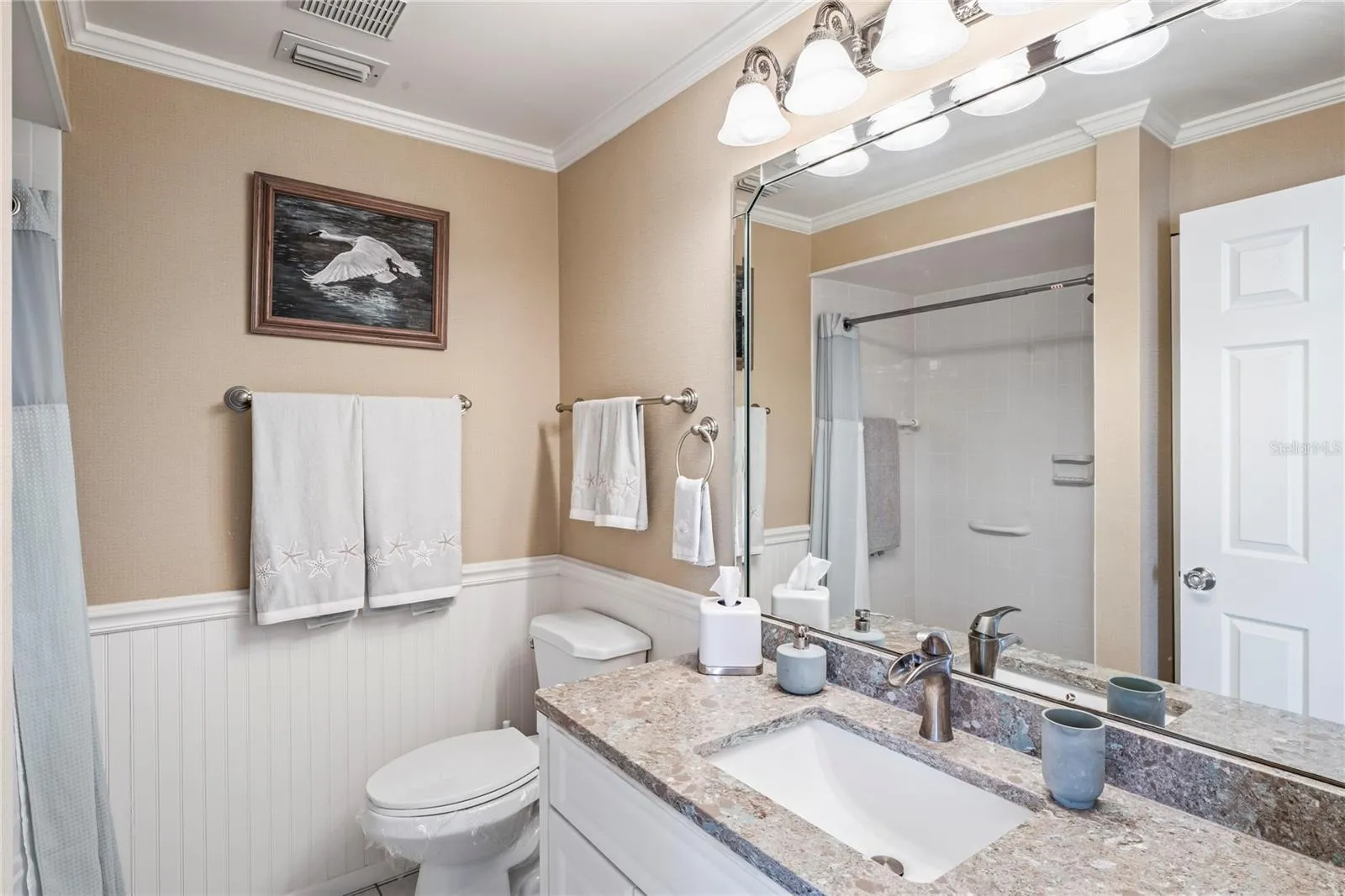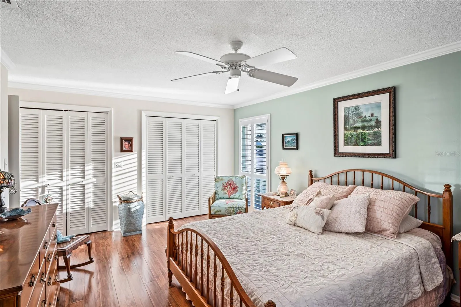 Every detail in this condo has been thoughtfully selected to create an environment of sophistication and ease. Plantation shutters and custom window blinds allow you to control the abundance of natural light that fills each room, enhancing the elegant yet cozy atmosphere. The interior has been freshly painted with modern colors, providing a neutral canvas that complements any decorative style. The master suite is a personal retreat, highlighted by a custom-designed closet and an upgraded bathroom featuring quartz countertops, blending functionality with luxury.
