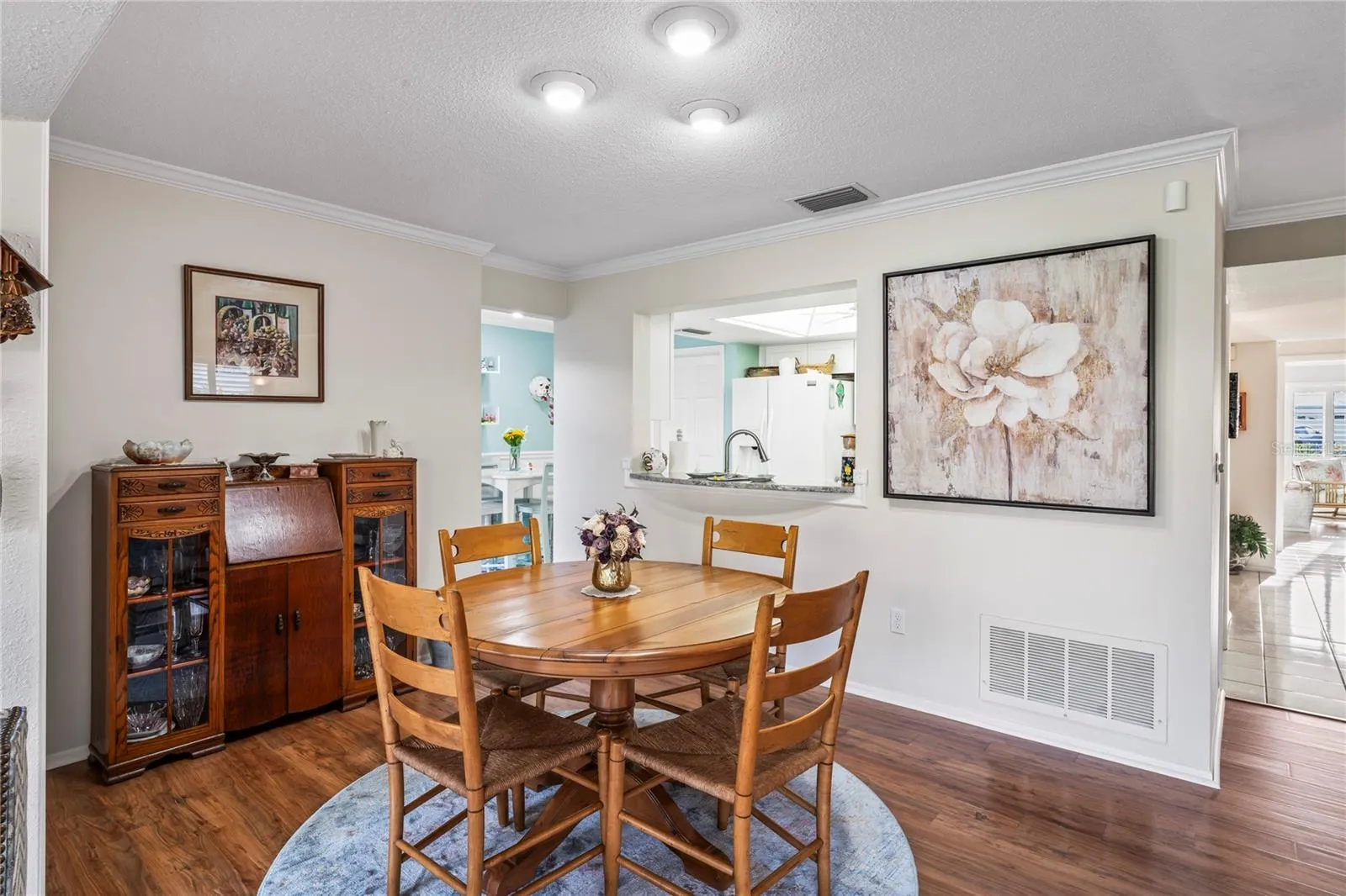 - Ceiling Fans(s), Crown Molding, Open Floorplan, Thermostat, Living Room/Dining Room Combo, Eat-in Kitchen, Window Treatments, Stone Counters, Solid Wood Cabinets