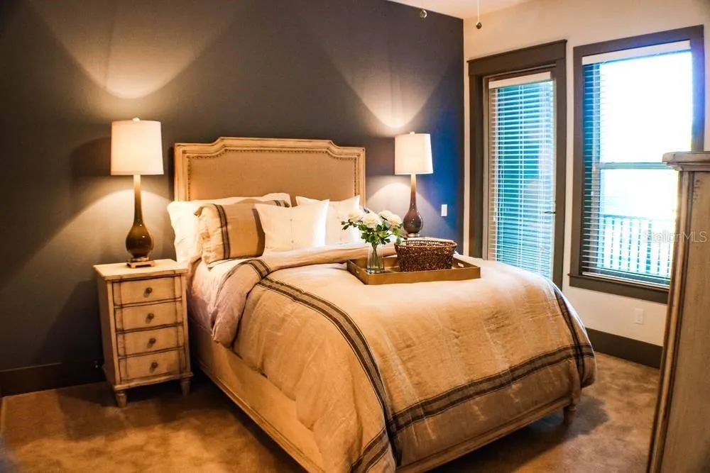 Our Studio 2 floor plan is 640 sq feet and is no ordinary studio! This home has a private bedroom with dropped walls for natural light. The living room and kitchen provide a great open floor plan with tons of possibilities. In addition to the stainless-steel appliance package, the home comes equipped with a full-sized stackable washer and dryer. Additional luxury finishes include a soaking tub, vinyl plank flooring throughout, plush carpeting in the bedroom, granite countertops, and floor-to-ceiling cabinetry. The home also features a private balcony with views of the courtyard.