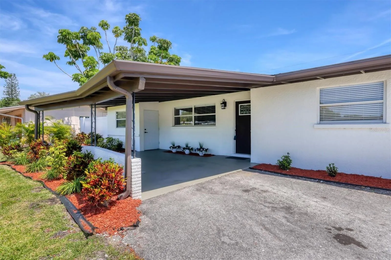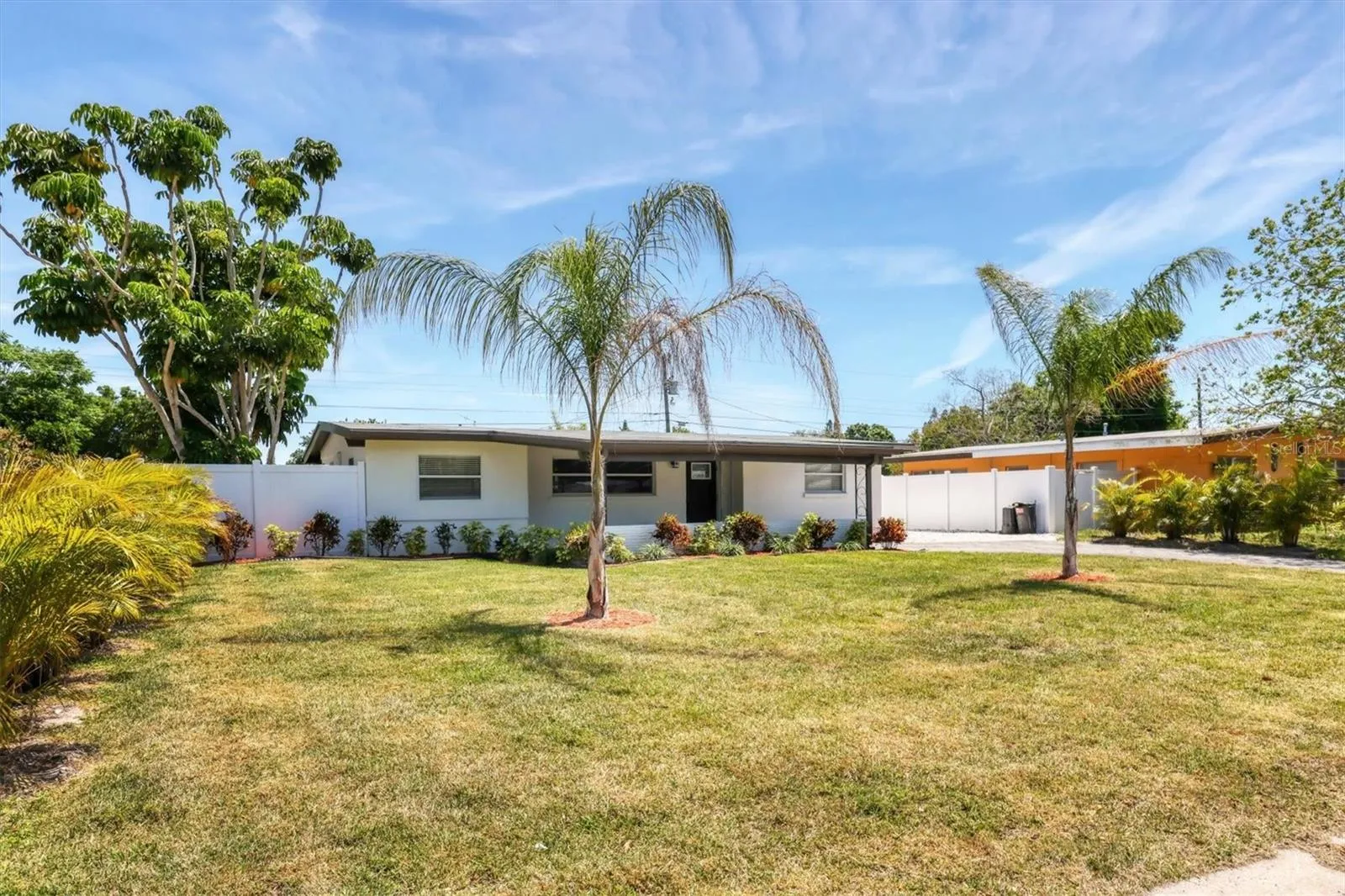 This newly remodeled and renovated Florida Ranch style home is perfect for investors or anyone looking for a like new home at an affordable price. It has been recently converted from a two bedroom, one and a half bath to a three bedroom, two bath, with an indoor laundry room. It has a new roof, water heater, and luxury vinyl plank wood flooring. The AC was replaced in 2021. The owner added two mini split AC units, one in the Primary Suite and the other in the Laundry Room. The renovated kitchen has new cabinets, granite countertops, and stainless steel appliances. It has a four-seat breakfast bar and a dining area. These spaces are all connected with the great room to create the perfect living environment. The bedrooms are split: two bedrooms with a full bath on one side of the home and the primary bedroom with an en suite bath on the other, which creates an ambiance of privacy.