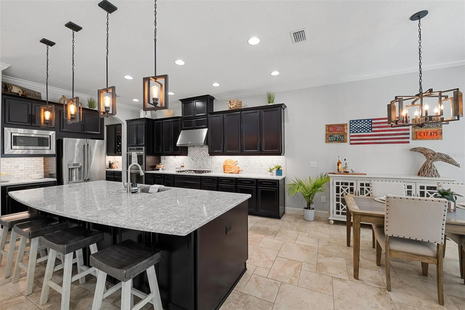 The heart of the home lies in the gourmet kitchen, a chef’s delight equipped with top-of-the-line appliances, custom cabinetry, butler’s pantry and a large walk-in pantry, ensuring ample storage space for all your culinary needs. Whether you’re preparing intimate meals or hosting grand gatherings, this kitchen is designed to inspire culinary creativity.