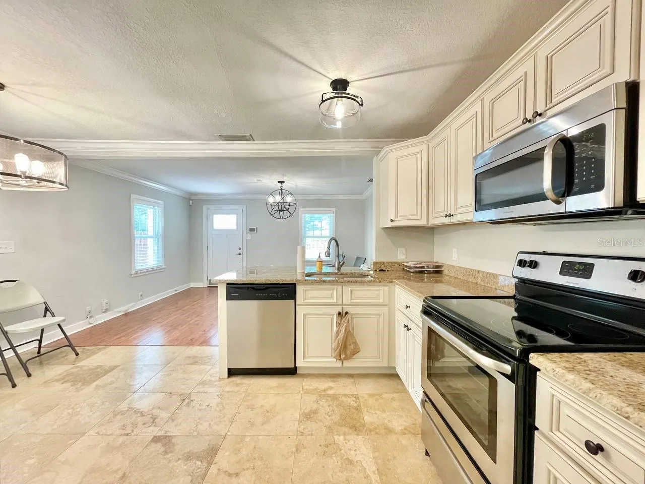 - Crown Molding, Open Floorplan, Walk-In Closet(s), Stone Counters, Solid Wood Cabinets