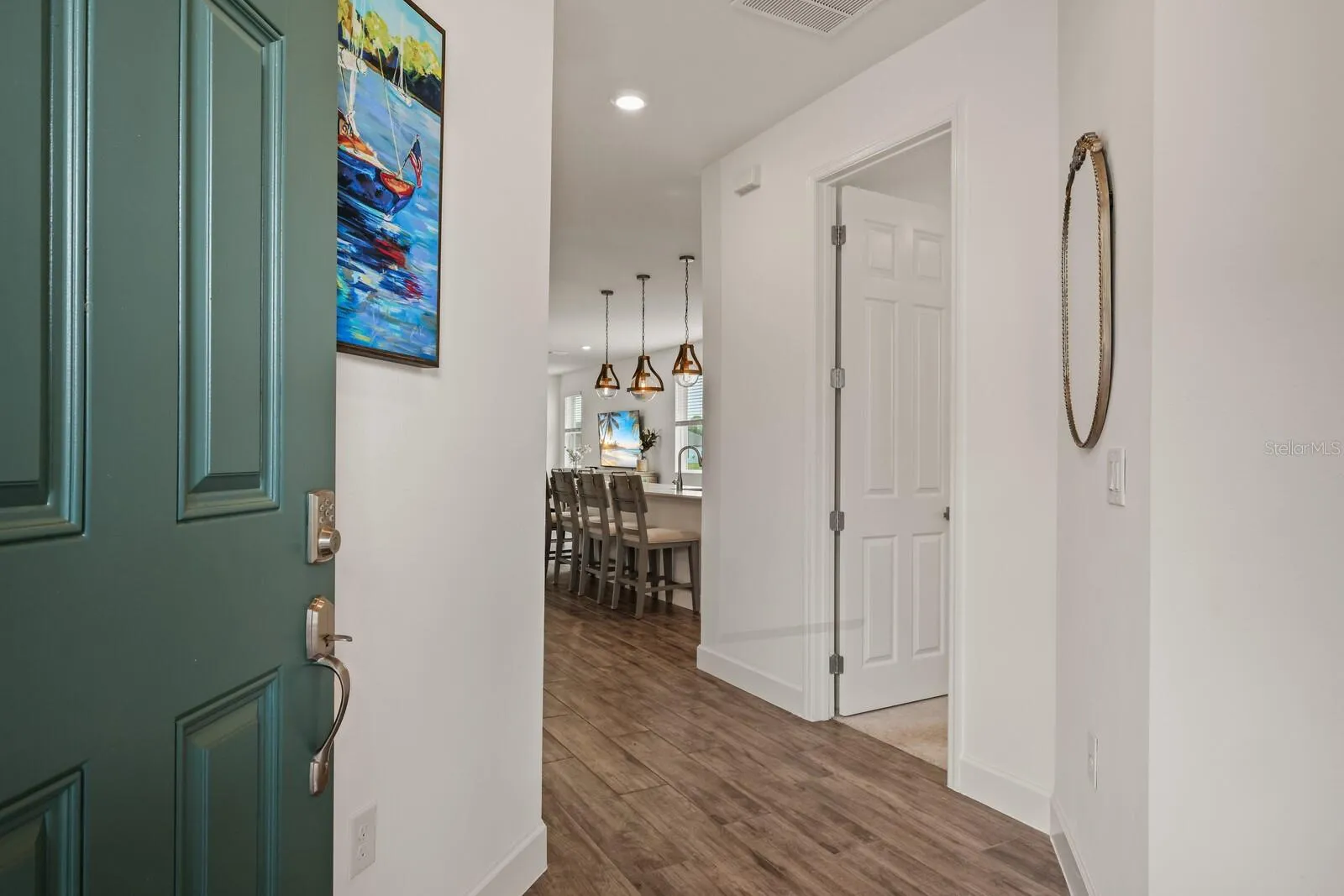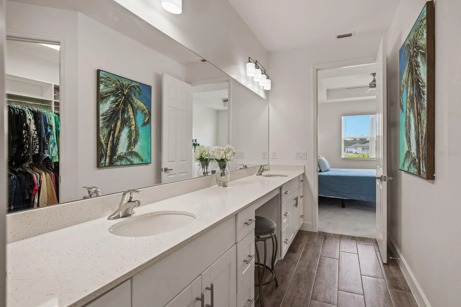 Enjoy this near-new Trevesta home with care-free living! Nestled in this quiet, gated area of Trevesta, centrally located among Palmetto, Ellenton and Parrish, this beautiful home offers a balance of spaciousness and value for the price. The home boasts an ideal split open floor plan with a large kitchen, dining area, and spacious living room, all overlooking the sparkling lake. The kitchen has plenty of cabinet space and select quartz countertops, with plenty of gathering space for friends and family. The guest bedrooms can be used for office space or additional bedrooms. The master bedroom has a sprawling bathroom and walk-in closet with built-in custom closet shelving system. The home has custom fans and lighting, high ceilings, and 8 foot doors throughout. Guest bathroom has a walk-in shower for convenience. HOA fee includes cable/ internet, landscape and lawn maintenance, exterior pressure washing, paint and roof maintenance/ replacement. Truly care-free living at its best!! (One or more photos have been virtually staged.)