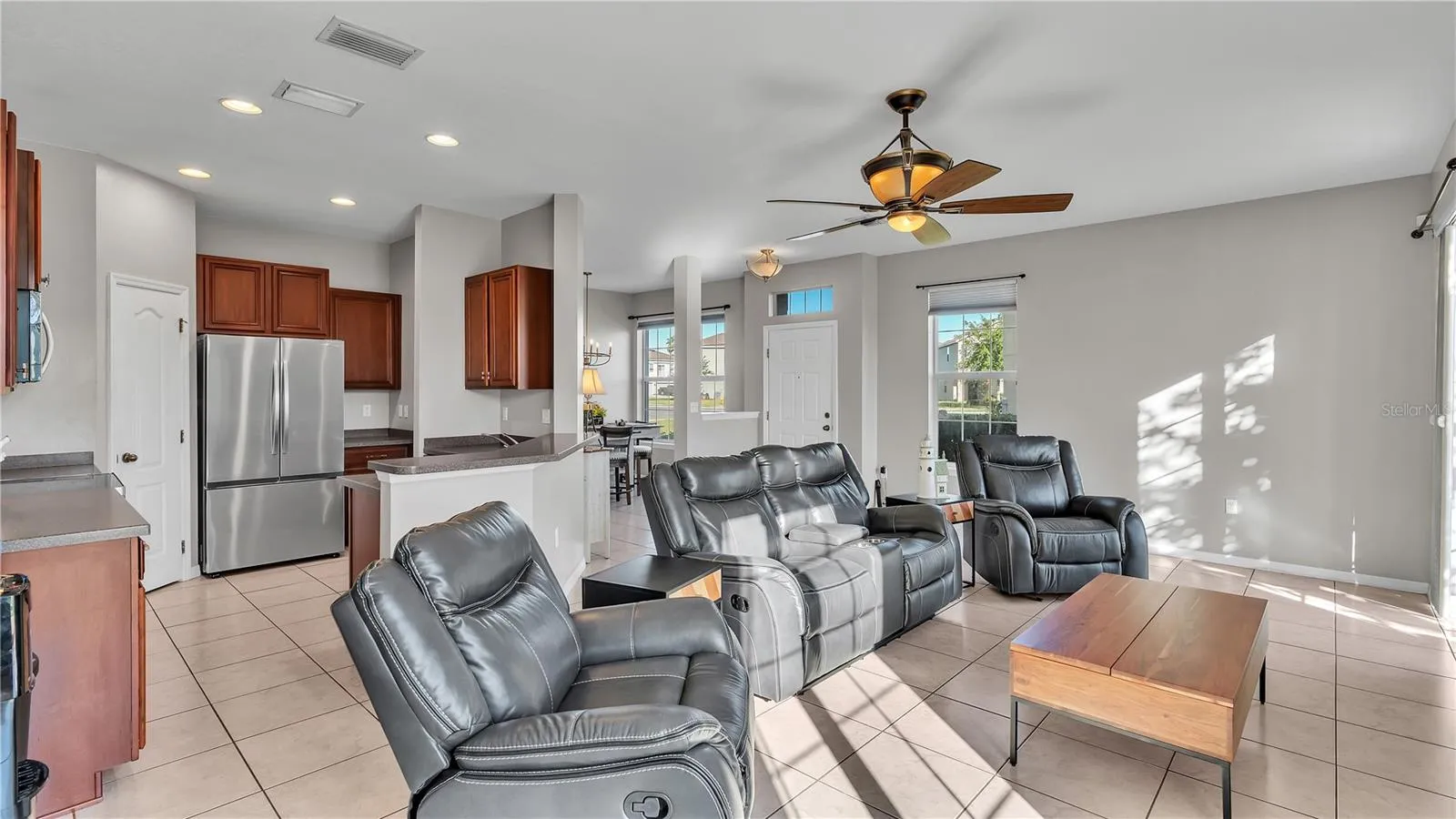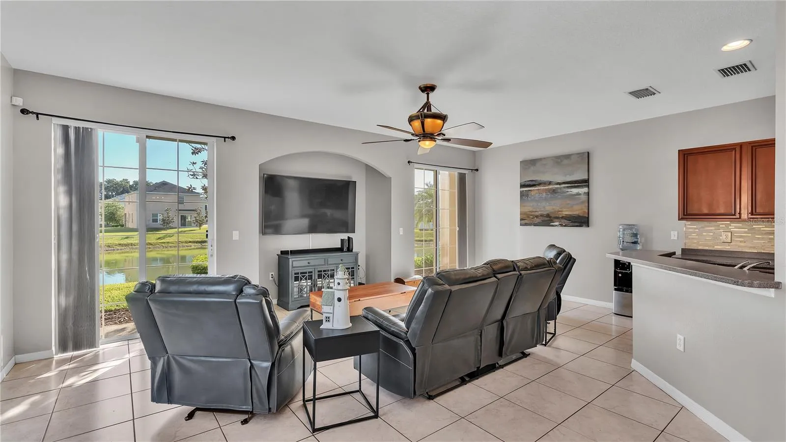 Nestled within the gated community of Walden Woods, this D.R. Horton Santa Cruz floor plan townhome beckons with its welcoming facade. As you step through the front door, you’re greeted by an inviting living space, adorned with ample room for both intimate gatherings and lively entertainment. Bathed in natural light streaming through two sets of sliding glass doors, the living room offers a water view, where mornings are painted with the soft hues of the sunrise.