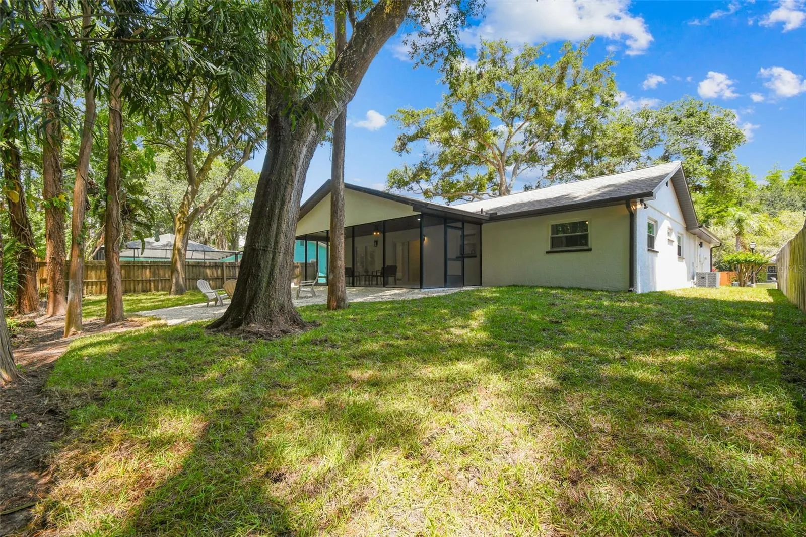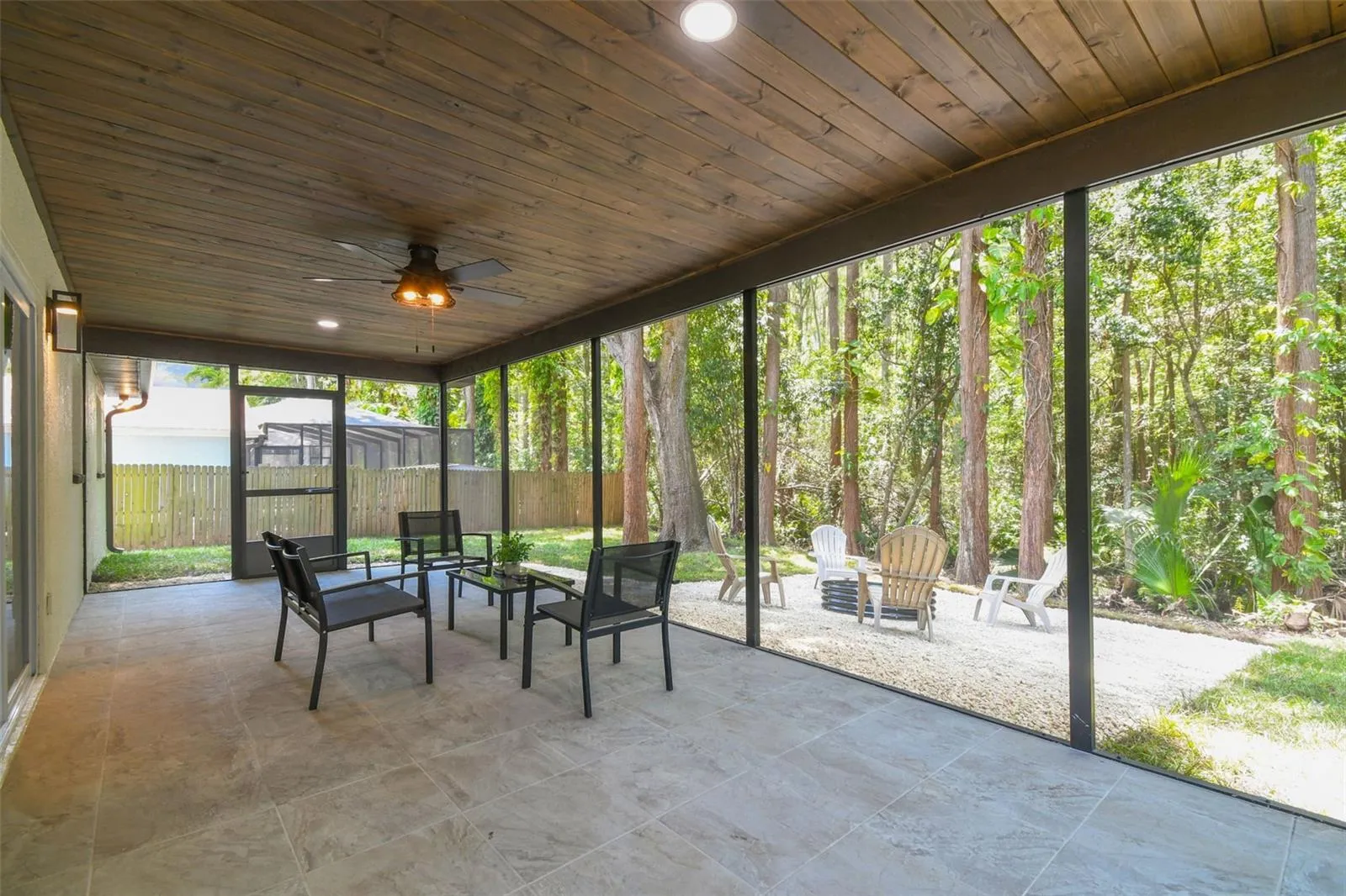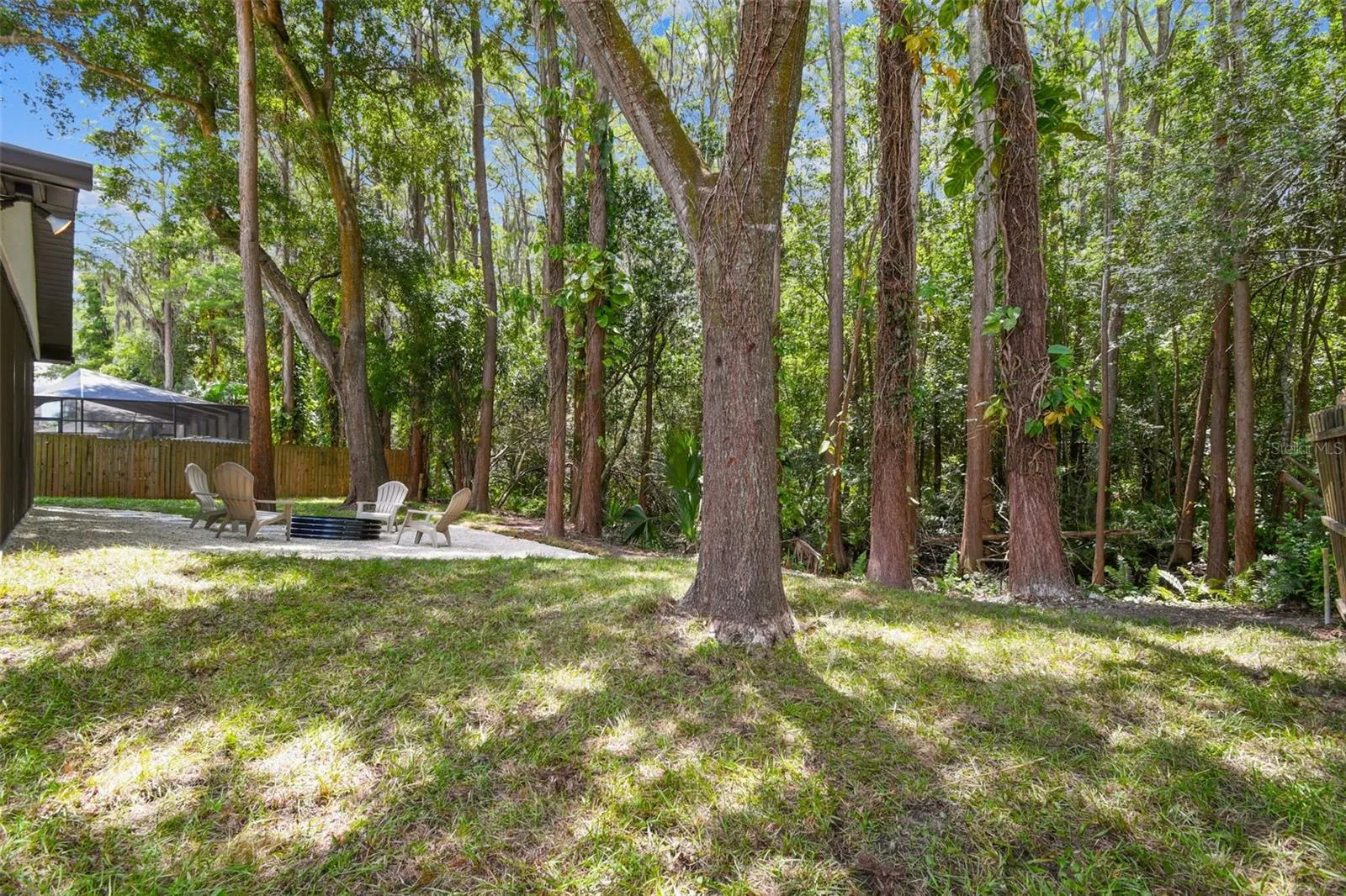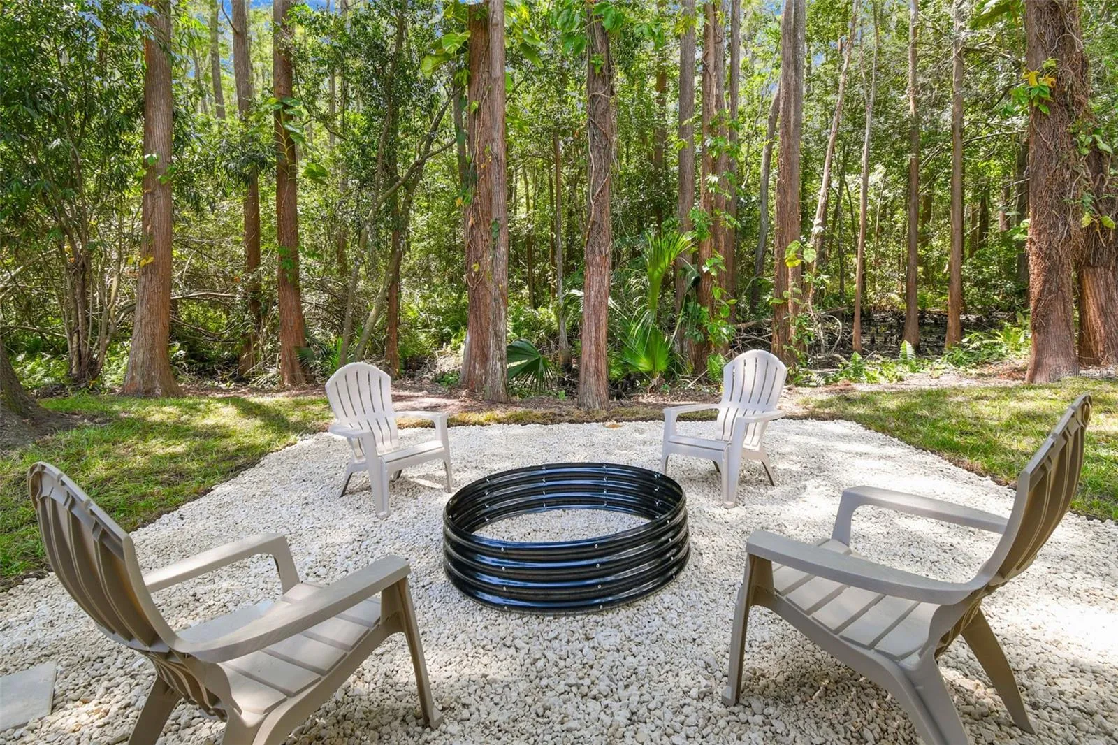 Retreat to the master bedroom oasis, equipped with vaulted ceilings, a large walk-in closet and luxurious en suite bathroom, as well as a private set of sliders onto the screened-in back porch. The split floor plan ensures privacy, with two additional bedrooms and another full bathroom on the opposite side of the house. The expansive screened-in porch has been RE-FINISHED and RE-SCREENED, complete with NEW tile flooring and a built-in planter box filled with calming sea oats. Step outside the porch onto the rock pathway that leads to the custom fire pit area, surrounded by a majestic wooded backdrop filled with mature oak and cypress trees. Enjoy the soothing sounds of nature from your private oasis. This property is situated in FLOOD ZONE X, offering peace of mind with no flood insurance required. It also features an OPTIONAL HOA and NO CDD. Zoned for top-notch local schools, including Sutherland Elementary, which is just a short walk away. Don’t miss your chance to own this slice of paradise in Palm Harbor—schedule a viewing today!