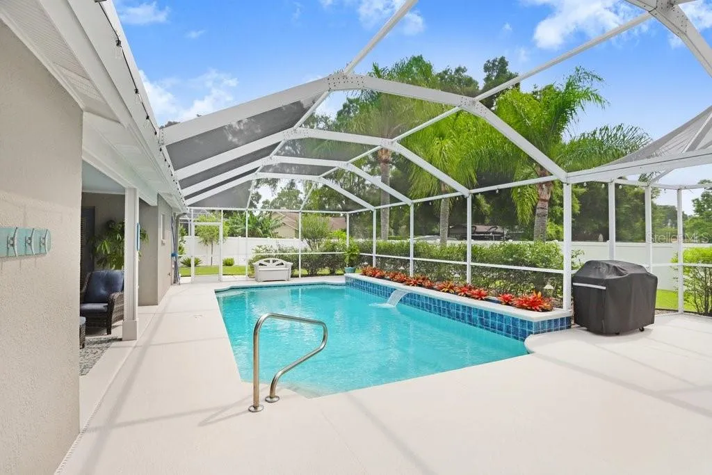 Gorgeous updated pool home in Buckhorn Groves located on an over-sized, fenced lot with lush landscaping and screened pool. Den/Office has french doors. The kitchen boasts Quartz counters, stainless appliances as well as soft close cabinet doors and drawers. All bedrooms have walk-in closets. Inside laundry. Inviting screened lanai overlooks the pool. Large yard offers lush landscaping, raised garden beds and a cedar swing! NO CDD! THIS HOME IS A MUST SEE!!!