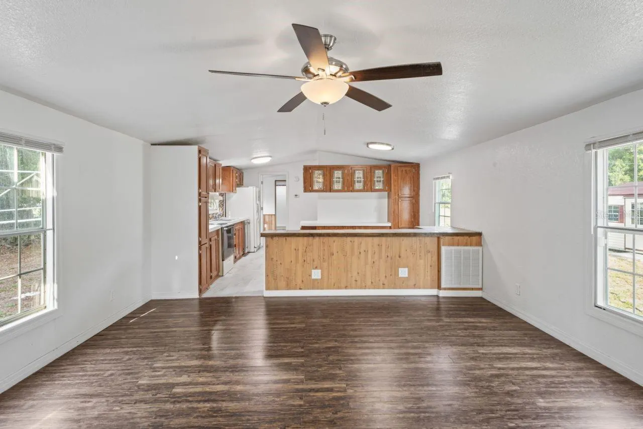 Owner financing available!!.Recently updated 2 bedroom 2 bath Home on over a Half an Acre of land. No HOA, CDD Fees. Fenced property features a Pond with access for Fishing, Kayaking or Canoeing, above-ground Pool with new pool equipment, large outdoor deck and additional Sheds for convenience. Roof Year 2021. Inside features split floor plan with a spacious kitchen bar overlooking the Livingroom with laminate flooring throughout. Conveniently located by Suncoast expressway, Beaches, Marina’s, Restaurants and shopping. Come see this one before it’s gone.