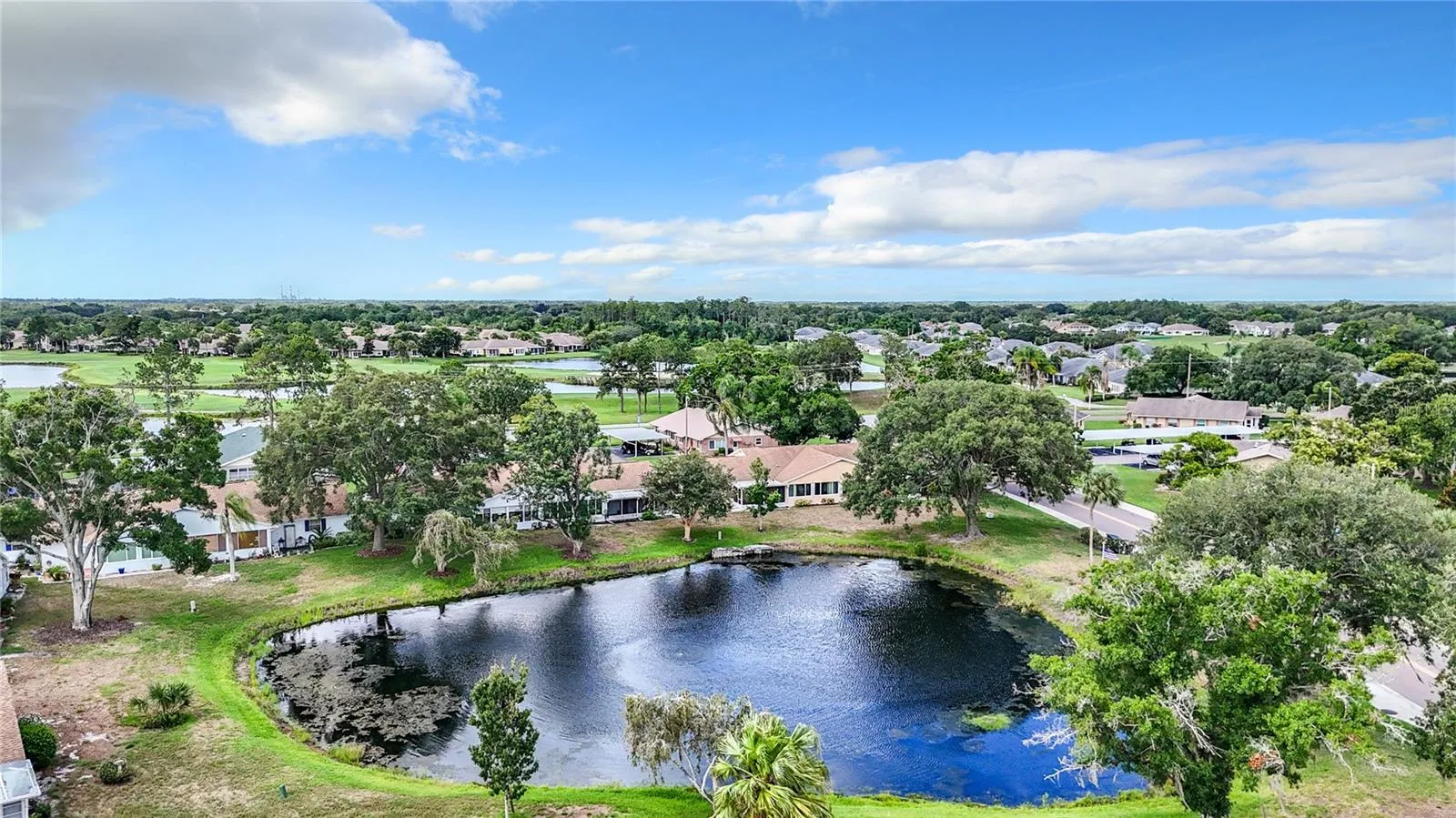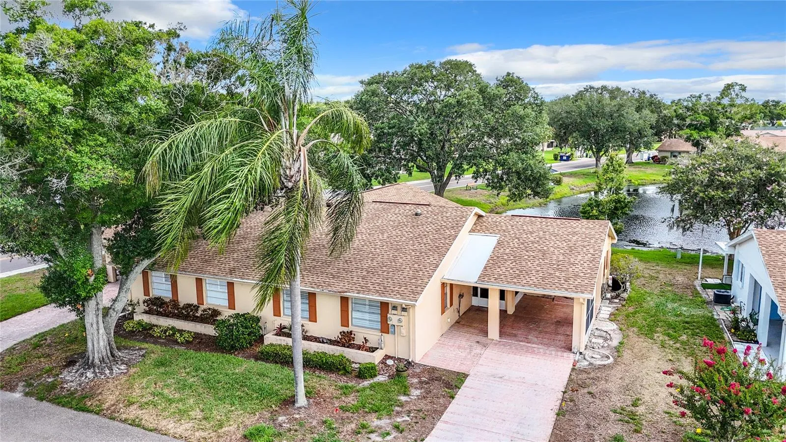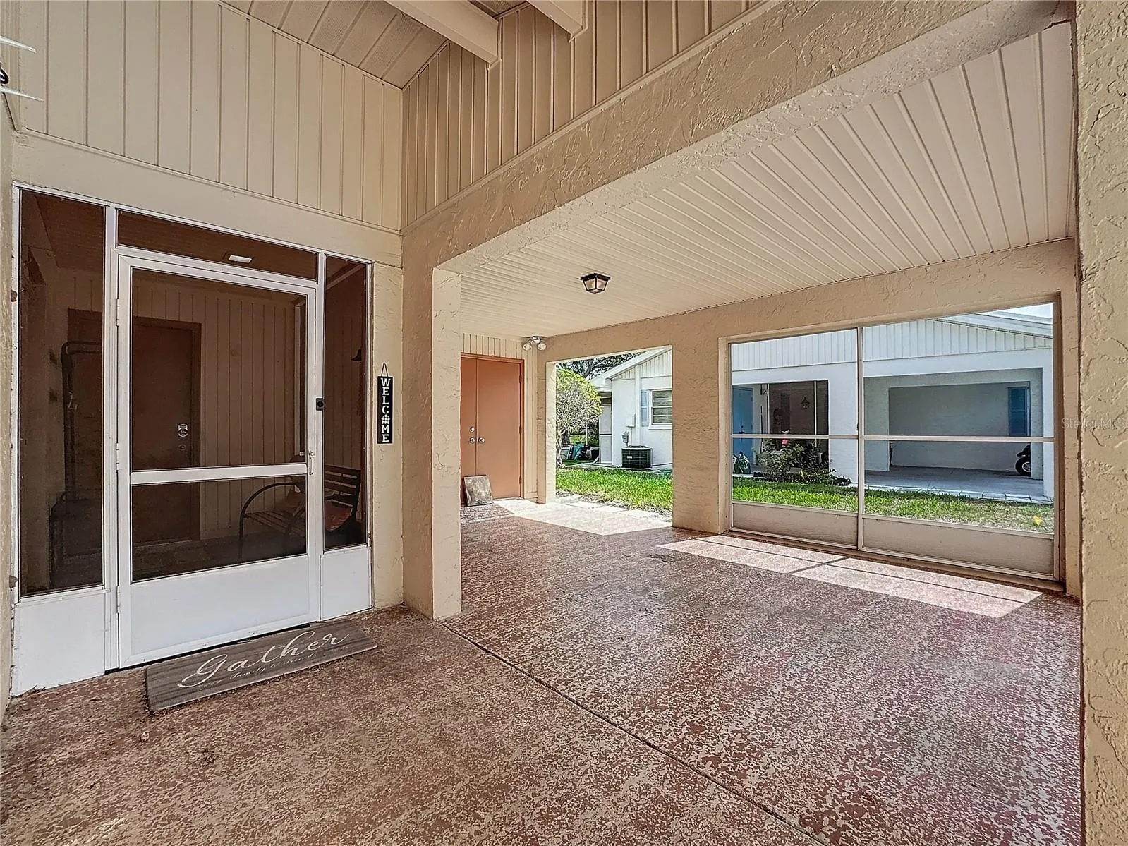 WATER VIEW! Kings Point expanded Hampton model FULLY FURNISHED with glass enclosed Florida room plus relaxing screened porch with peaceful POND VIEW. Condo has 2 Bedrooms, 2 Baths, attached carport, with storage room and laundry. Enter though the screened entry into the spacious Living/Dining room open to 20×8 Florida Room overlooking pond. This room has a wall of hurricane rated windows and newer sliding door leading to the private screened porch. You will love the view! Many recent upgrades and features including maple floors in main living area & bedrooms. Tile in Kitchen & Baths. Granite countertops, comfort height toilets, updated lights and ceiling fans, solar tubes, Plantation shutters in bedrooms. Stainless Steel GE Refrigerator, GE range with convection oven and air fryer, upgraded wood cabinets, pull-out shelves, soft close drawers. Breakfast Bar. CROWN MOLDING in main living area. AC and HW heater replaced in 2020, Air ducts cleaned 2022, Refrigerator, Range and Microwave 2022, Plantation shutters, ceiling fans & lights 2023, Leaf guards on gutters 2022. Kings Point is a fabulous Award Winning 55+ Resort style Community located between Tampa and Sarasota with Multiple Pools, 2 Clubhouses, Restaurant and Bar, Theater, Fitness Center, Golf course, Piickle ball and many clubs and activities. Named one of the top retirement communities in the country! And you can drive your golf cart around town!